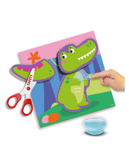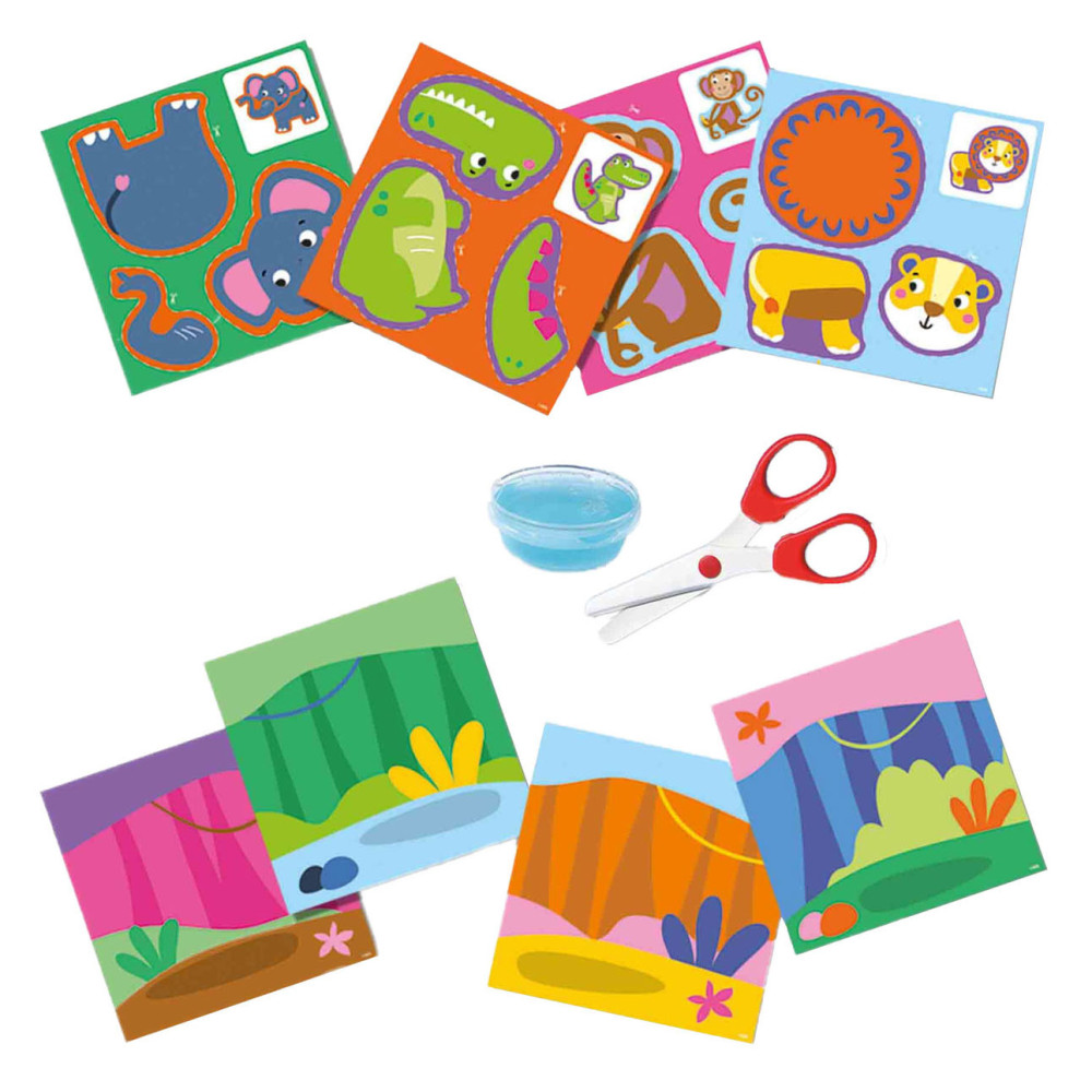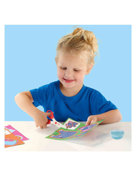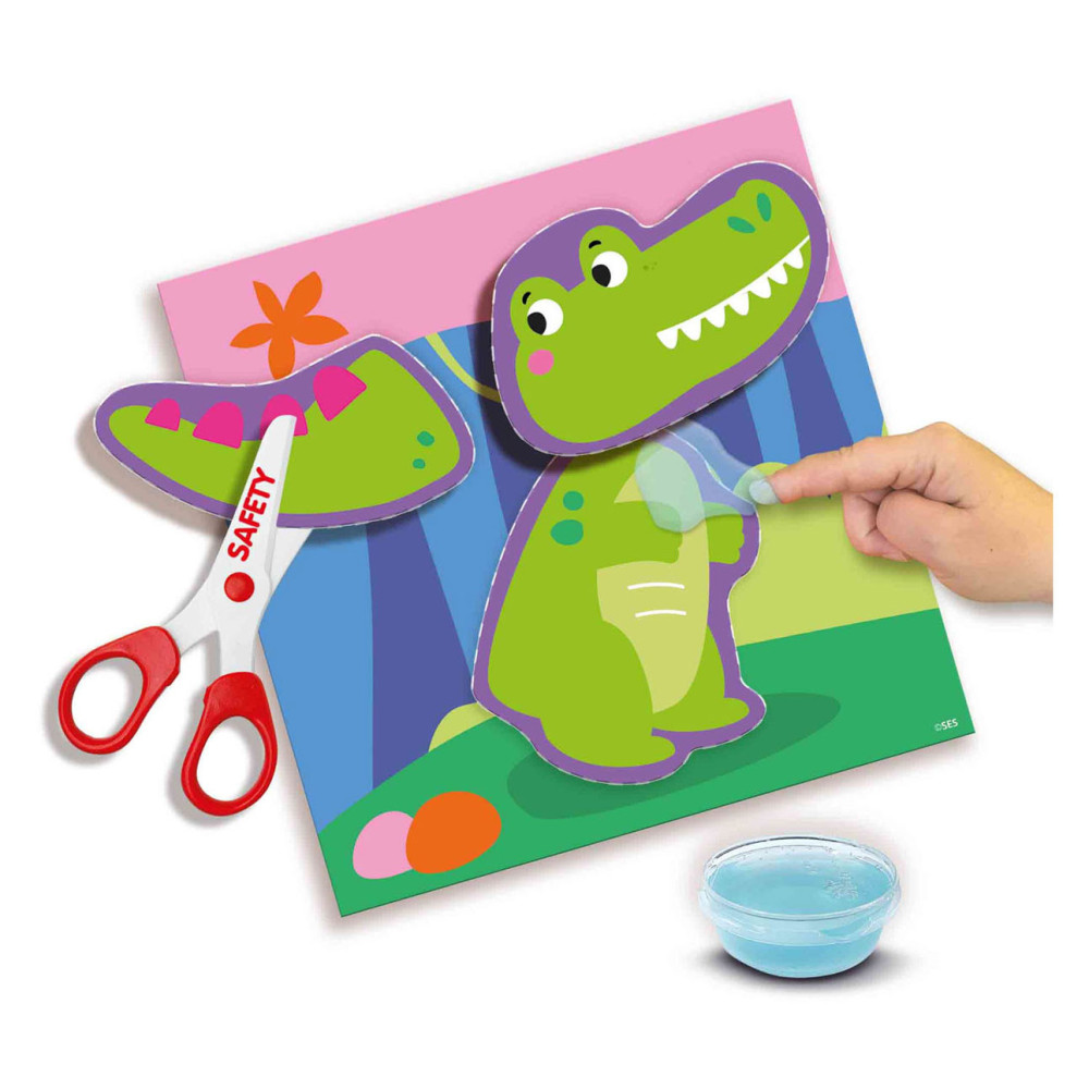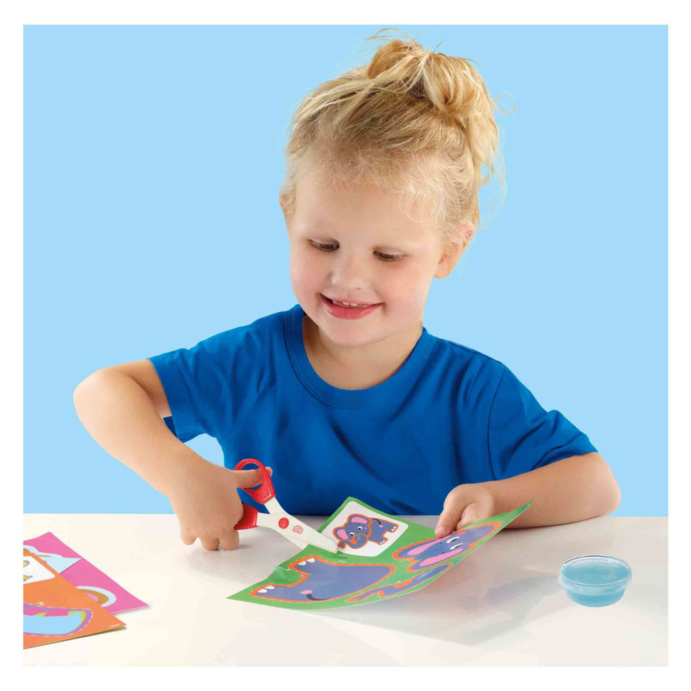 Knippen en plakken is voor kinderen eenvoudig te leren met deze set van SES Creative. De veilige kinderschaar knipt papier, maar is veilig voor haren, vingers en textiel! Zo kunnen jonge kinderen zelf aan de slag en de vormen een voor een uitknippen. De vormen zijn ruim opgezet, dus er is ruimte voor foutjes! Na het knippen puzzelen de kinderen de vormen op de juiste plek en worden ze met de vingerlijm eenvoudig op de kaarten geplakt. Tada! Helemaal zelf gemaakt!