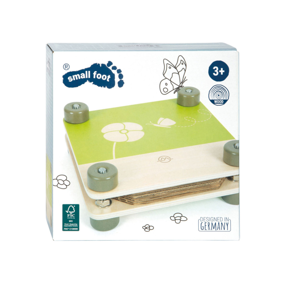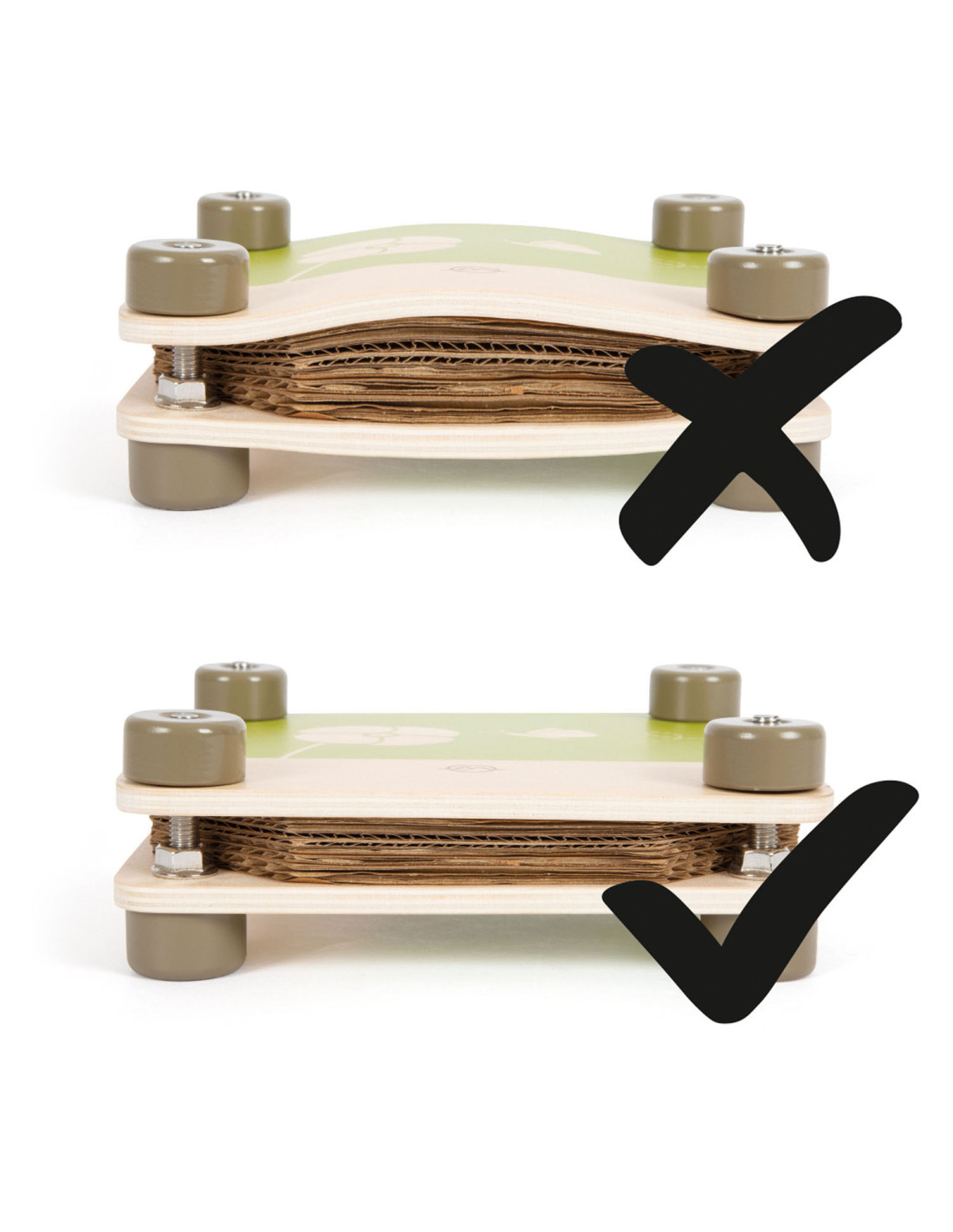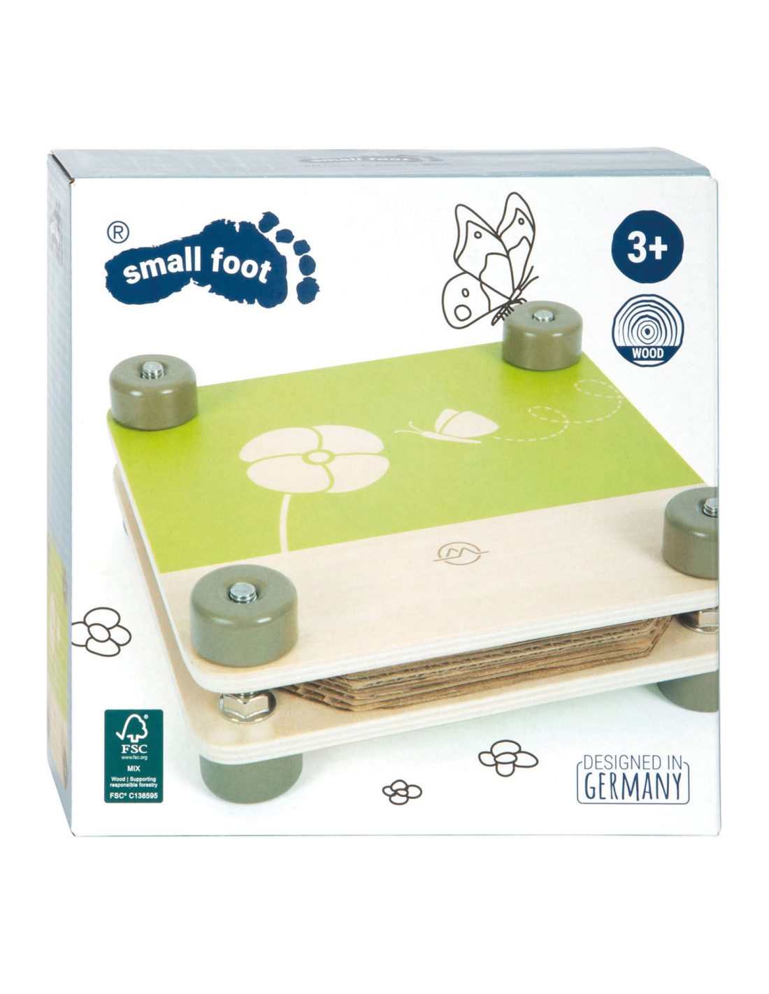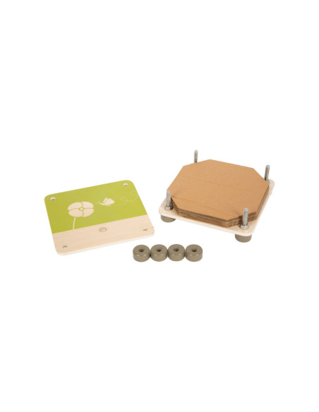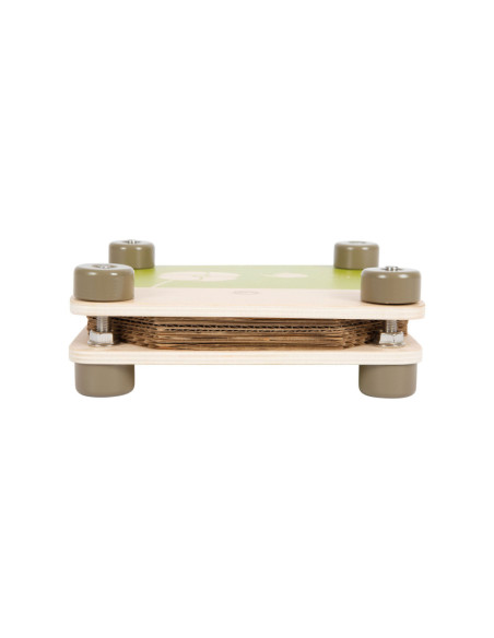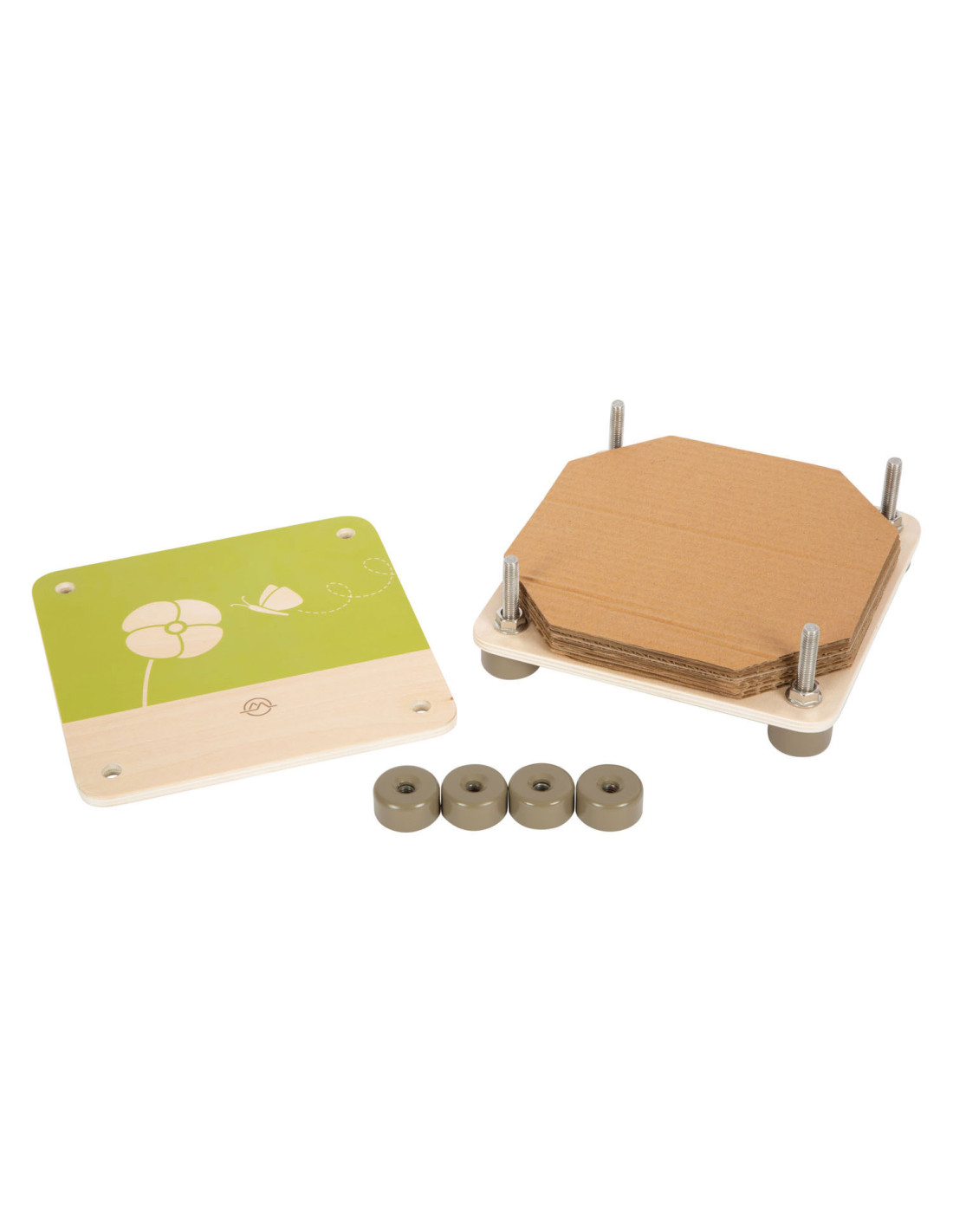 Bloemen in een handomdraai persen! Deze kindvriendelijke bloemenpers, gemaakt van stevig FSC®-gecertificeerd hout, is voorzien van vier poten en heeft 8 kartonnen vellen en 16 persvellen. Hiermee biedt het voldoende ruimte om bladeren, bloemblaadjes en bloemen te drogen en plat te maken. Door eenvoudigweg de verzamelde natuurlijke schatten tussen de lagen papier en karton te leggen, kunt u ze gemakkelijk bewaren. Vier metalen schroeven en moeren geplaatst binnen houten ringen maken het gemakkelijk voor kinderen om het te gebruiken, waardoor ze een stevige grip en voldoende kracht hebben om de twee houten panelen samen te drukken. Deze houten bloemenpers maakt ook een geweldige visuele indruk met zijn afgeronde randen, hoogwaardige productie en aantrekkelijk ontwerp met veel zichtbaar houtmateriaal gecombineerd met moderne groene kleuren.
