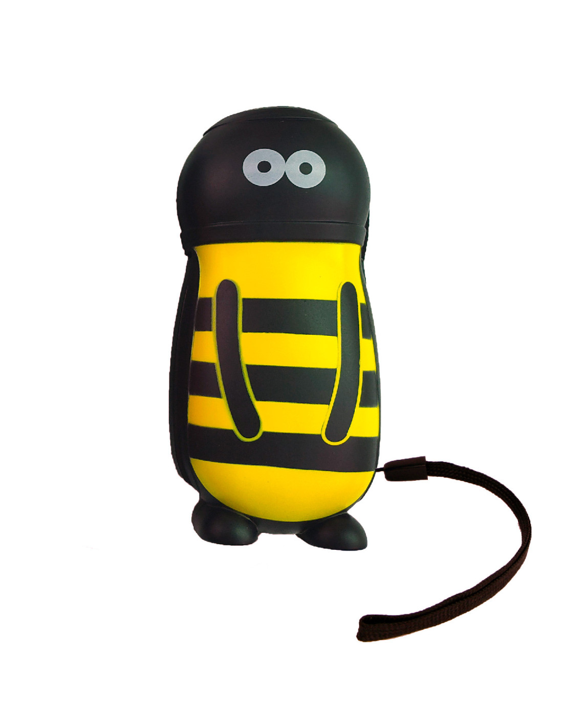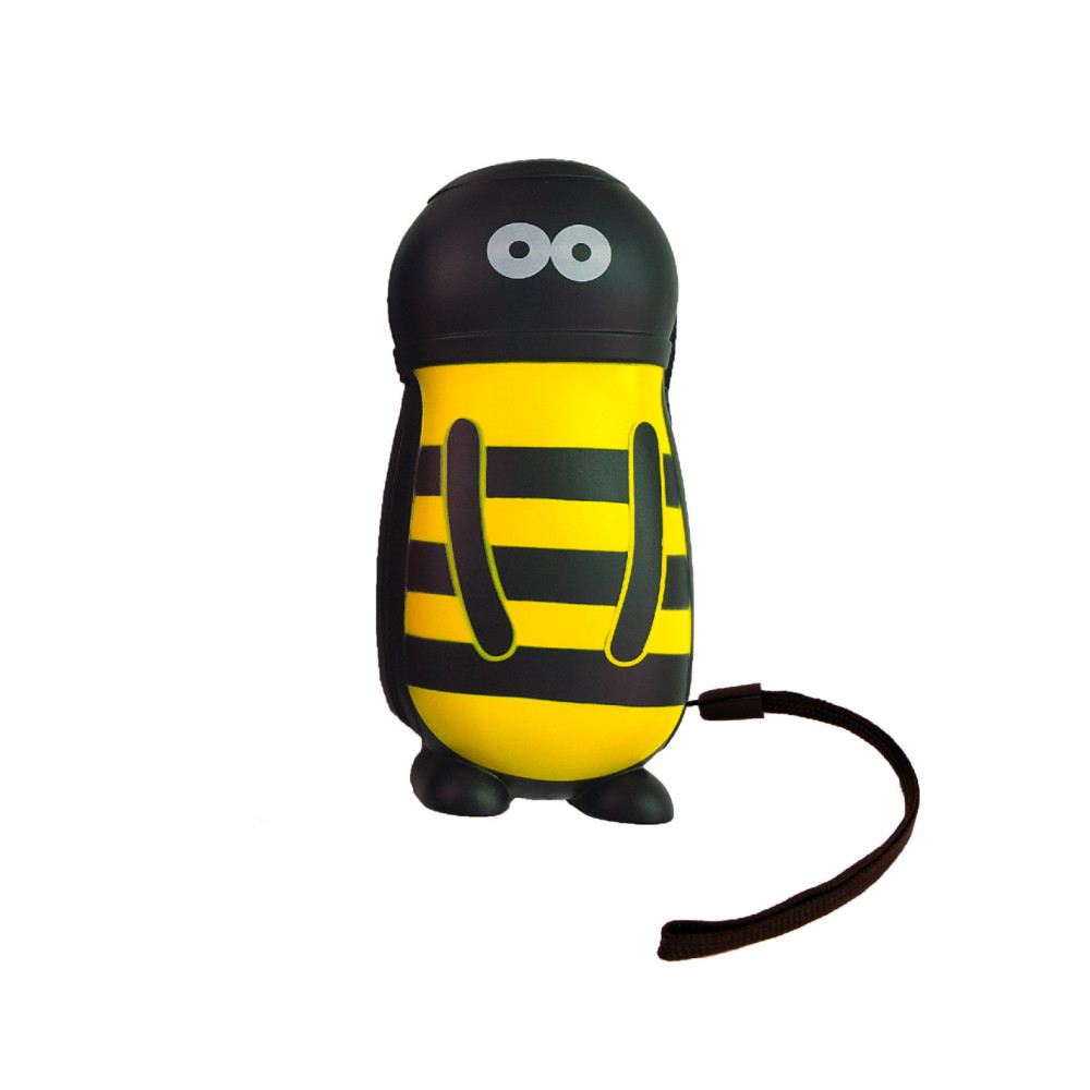 Knijpkat in de vorm van een bijtje. Knijp een paar keer in de zaklamp zodat hij licht geeft.