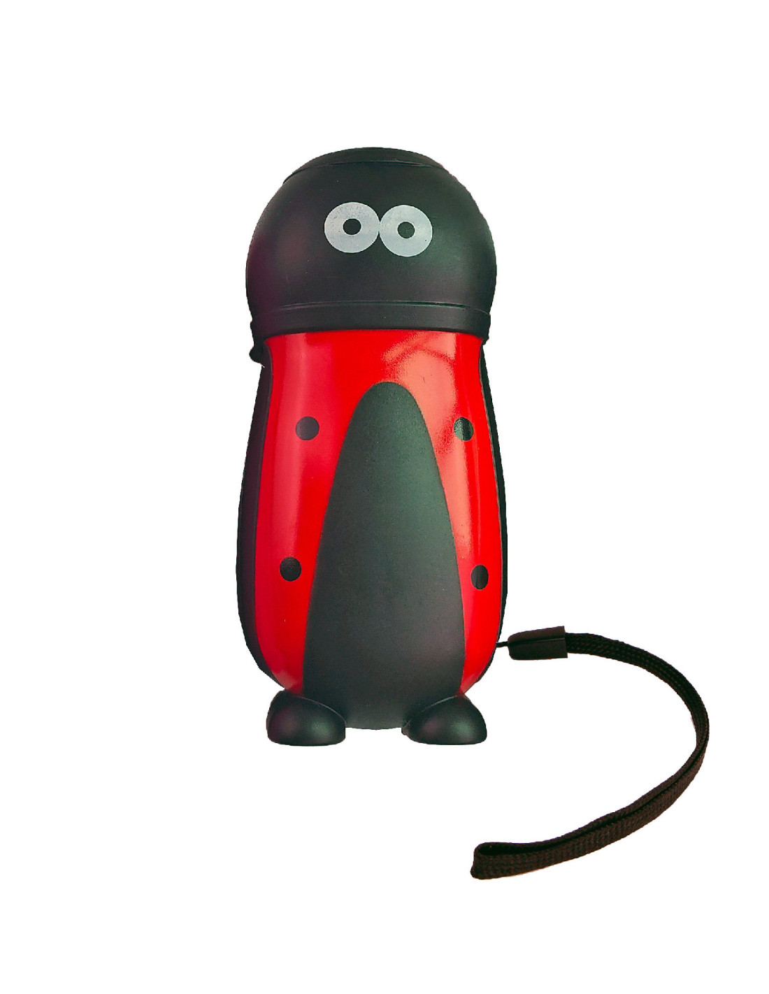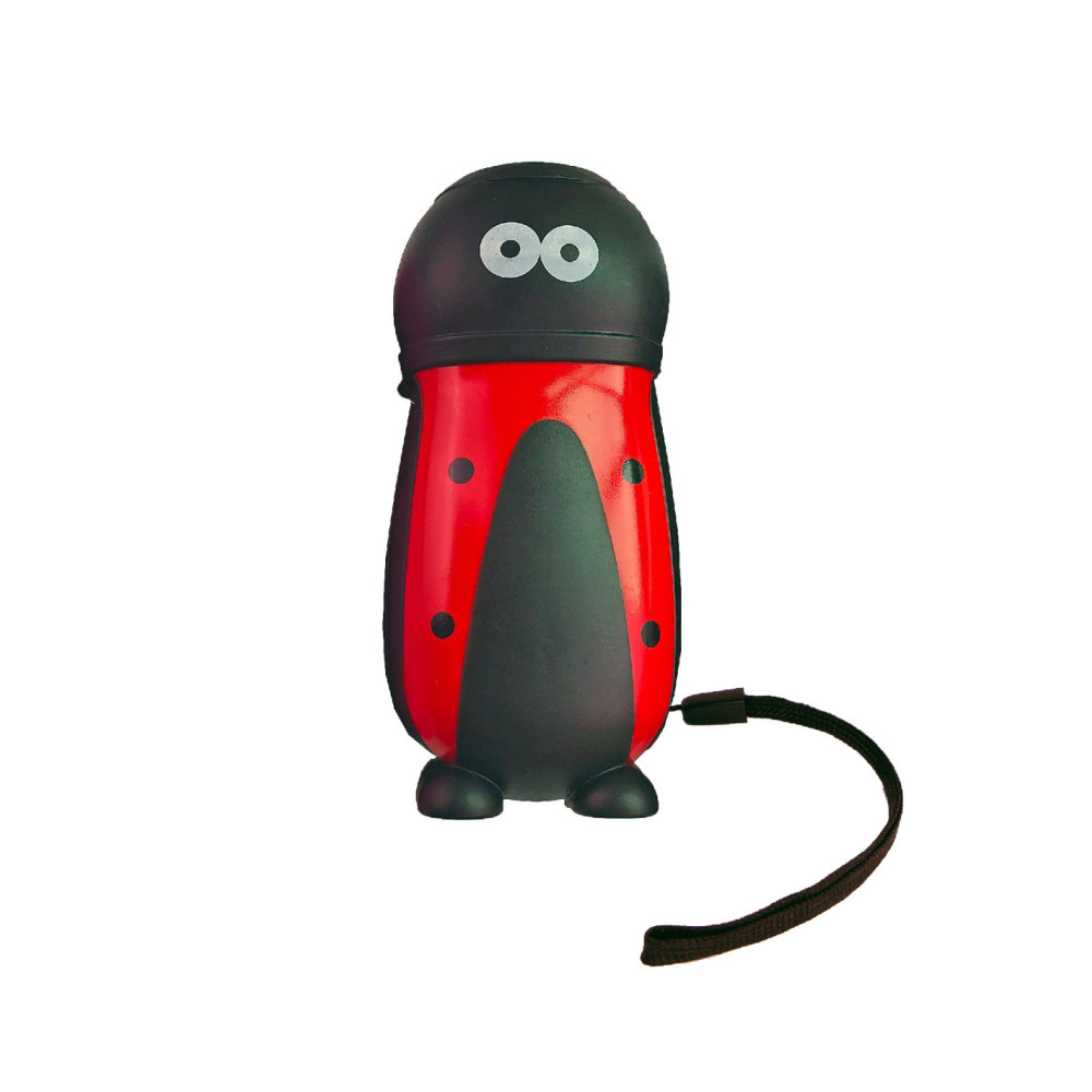 Knijpkat in de vorm van een lieveheersbeestje. Knijp een paar keer in de zaklamp zodat hij licht geeft.