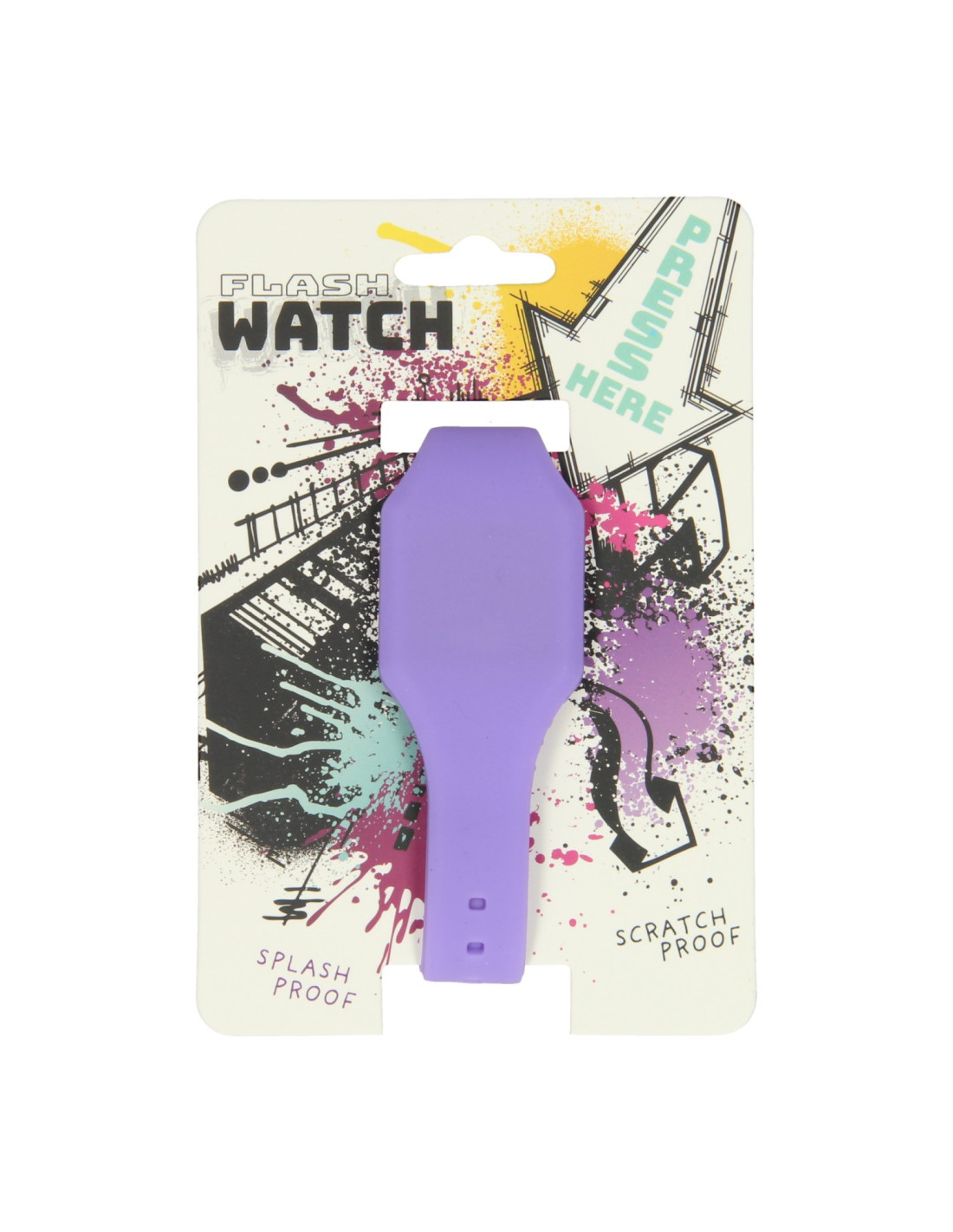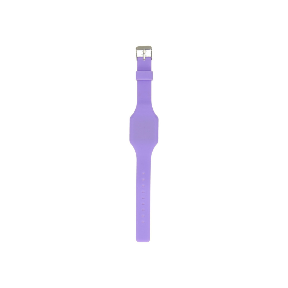 Siliconen kinderhorloge met digitale tijdsaanduiding. Kras- en spatwaterbestendig, werkt op batterijen (1x CR2016, inbegrepen). Kleur: paars. Geschikt vanaf 3 jaar.