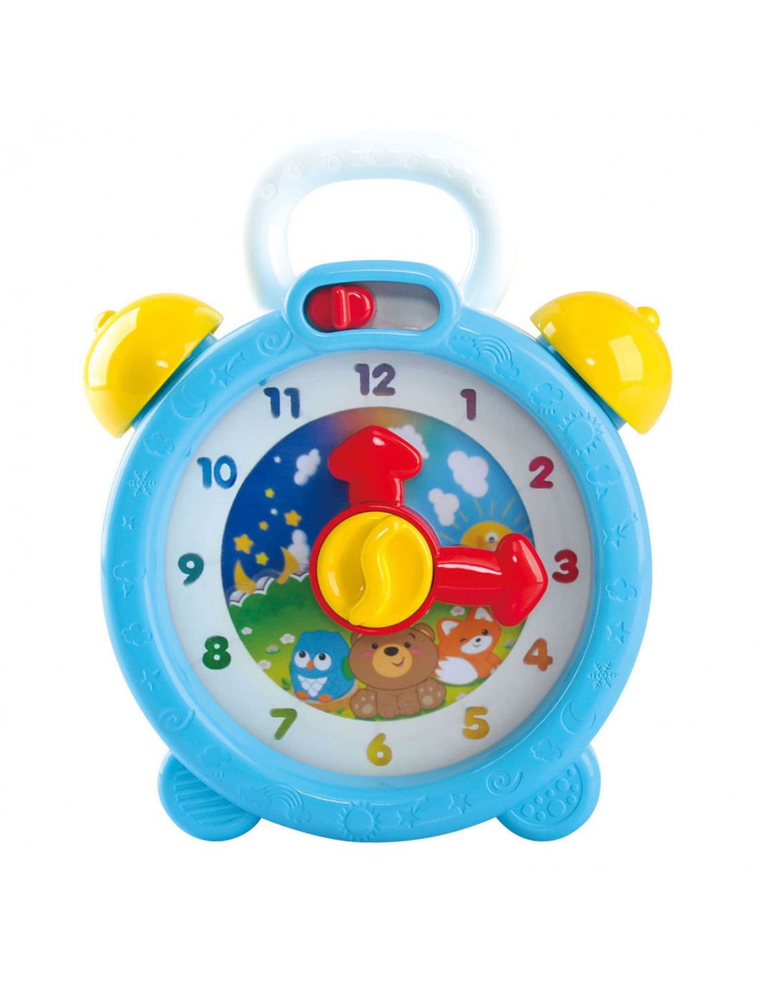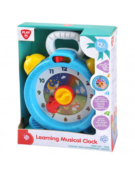 De leerklok kan je op de muzikale stand zetten om fijne muziek te horen en de bewegende achtergrond te bekijken.