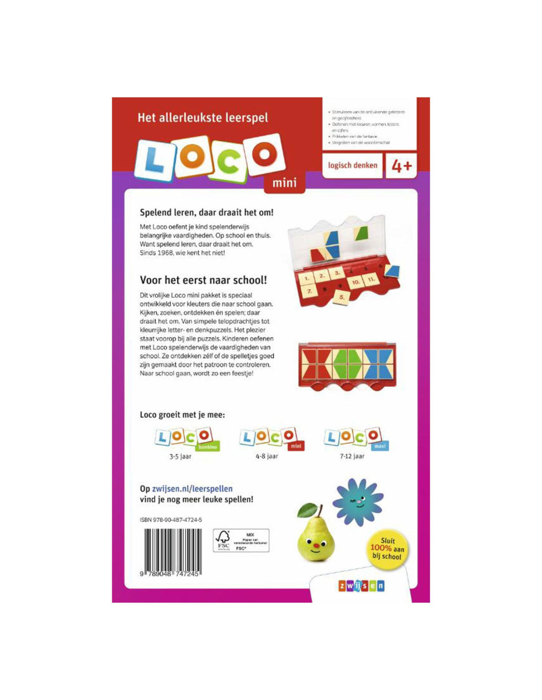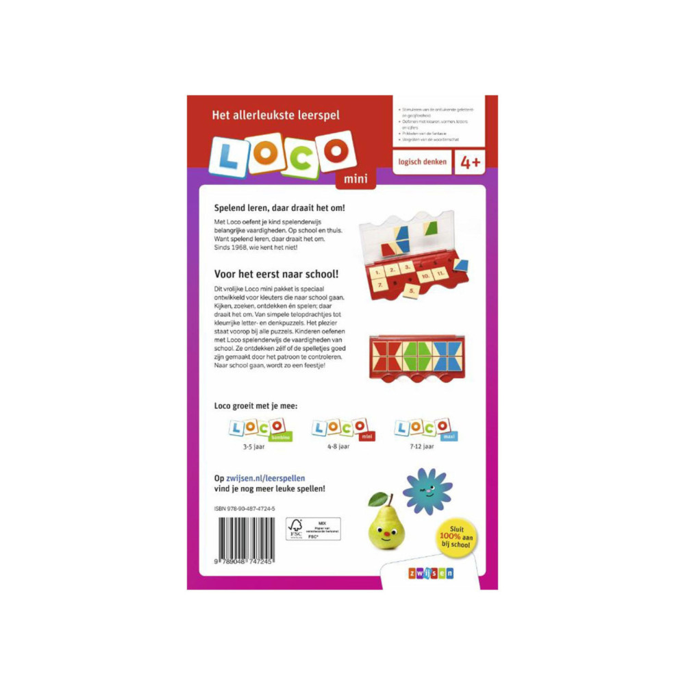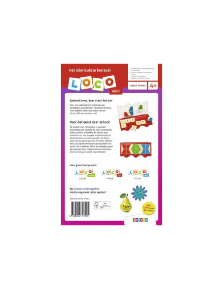 Dit vrolijke Loco mini pakket is speciaal ontwikkeld voor kleuters die naar school gaan. Kijken, zoeken, ontdekken én spelen; daar draait het om. Van simpele telopdrachtjes tot kleurrijke letter- en denkpuzzels. Het plezier staat voorop bij alle puzzels. Kinderen oefenen met Loco spelenderwijs de vaardigheden van school. Ze ontdekken zélf of de spelletjes goed zijn gemaakt door het patroon te controleren. Naar school gaan, wordt zo een feestje!