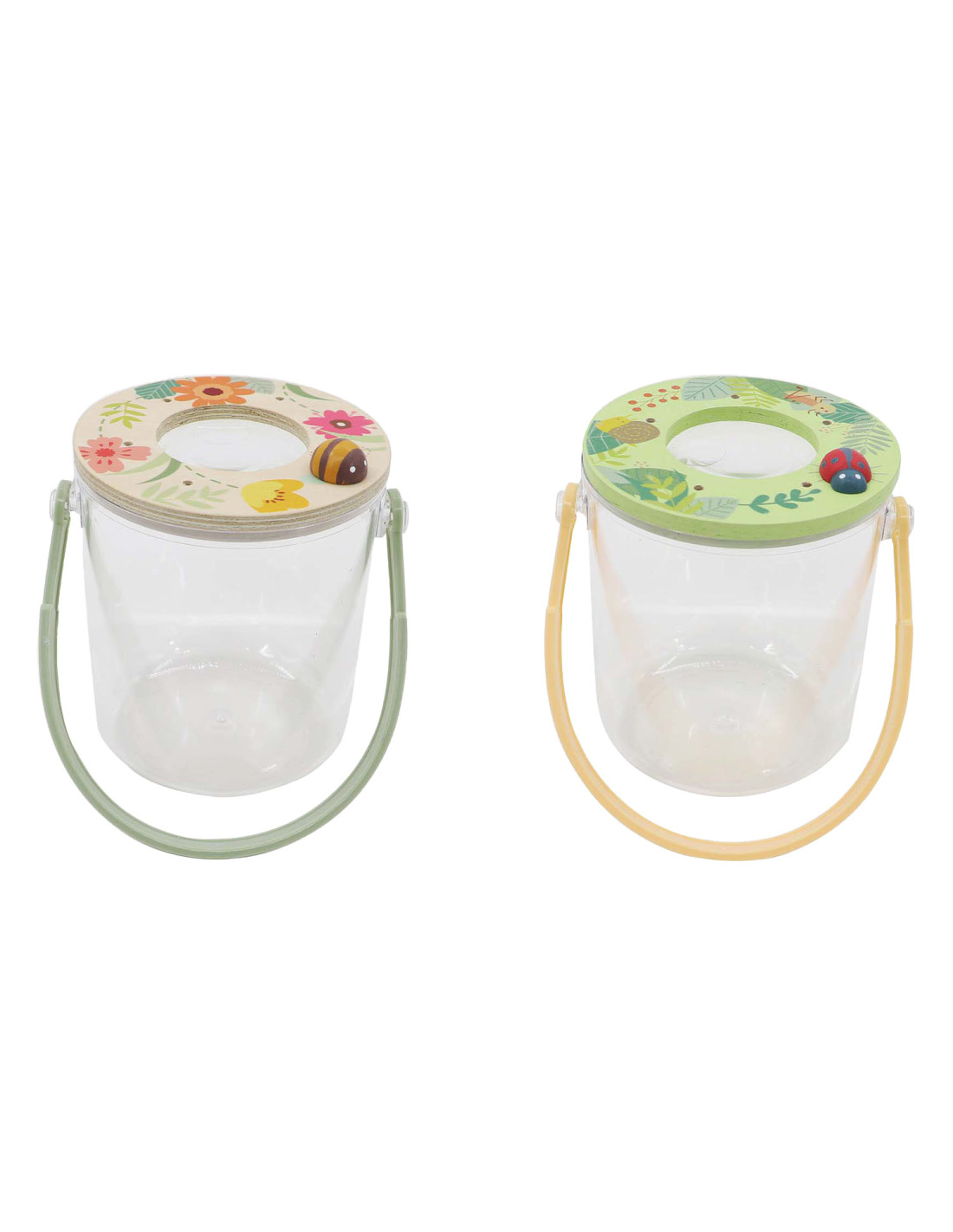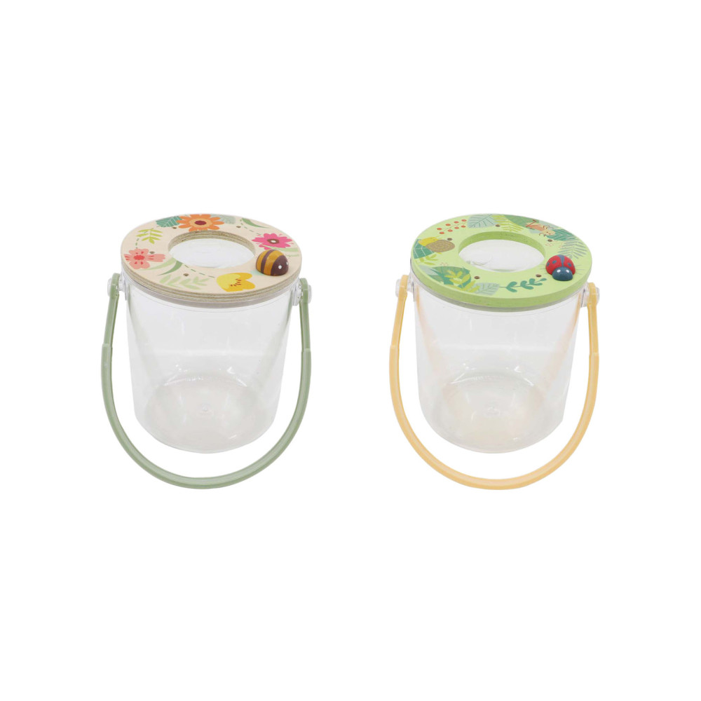 Insectenpotje met vergrootglas bovenin het deksel.