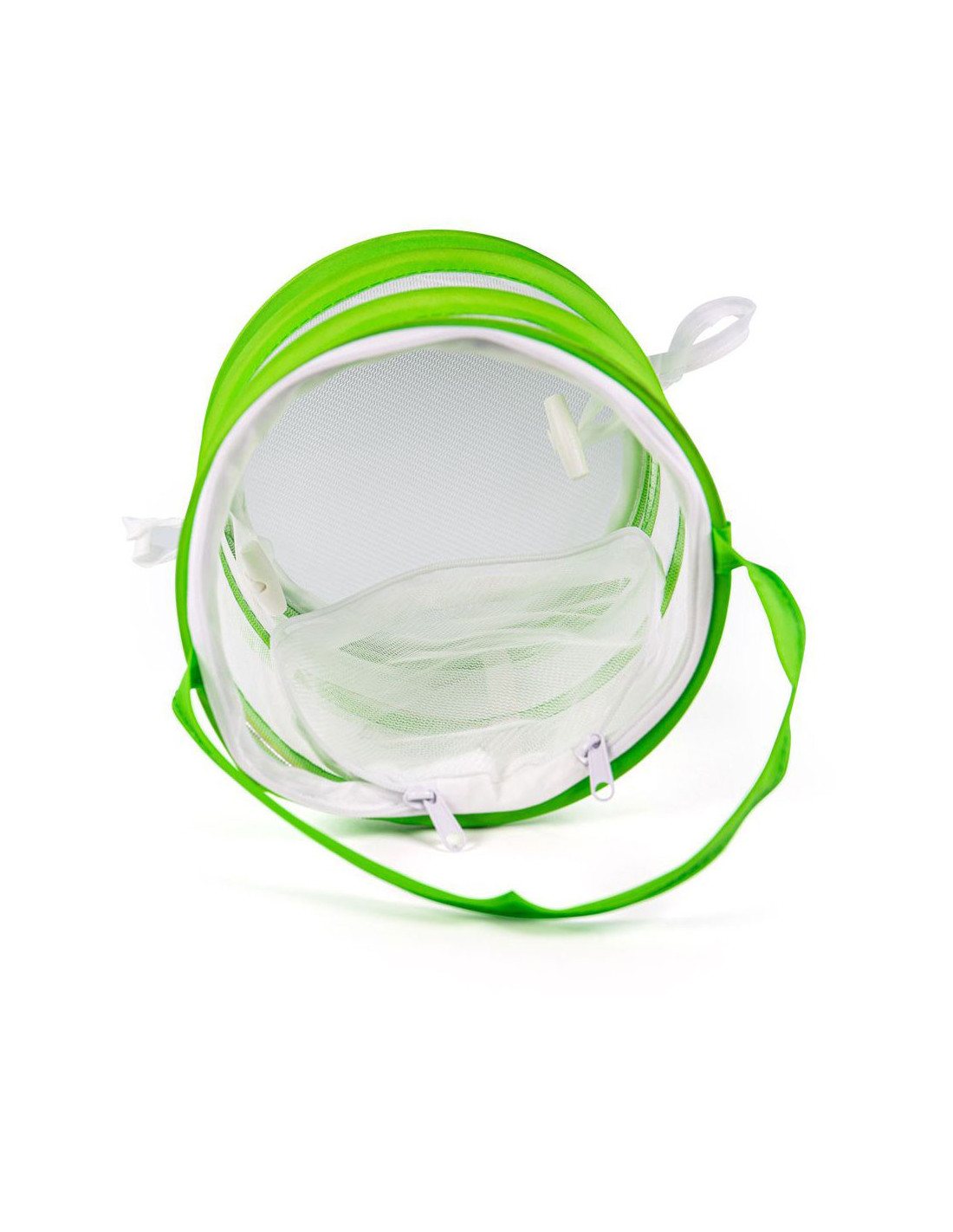 Ga je op insectenjacht? Als je je enge kruipers en bugmaatjes eenmaal hebt gevangen, bewaar ze dan veilig in het Pop Up Insectennet. Gebruik de ritssluiting om ze veilig op te bergen, zodat je ze van dichtbij kunt bekijken voordat je ze weer in het wild loslaat. Het zachte netmateriaal houdt zowel kleine vingers als kleine wezens veilig. Wanneer mini-ontdekkingsreizigers klaar zijn met het insectennet, kan het worden ingeklapt om eenvoudig op te bergen.