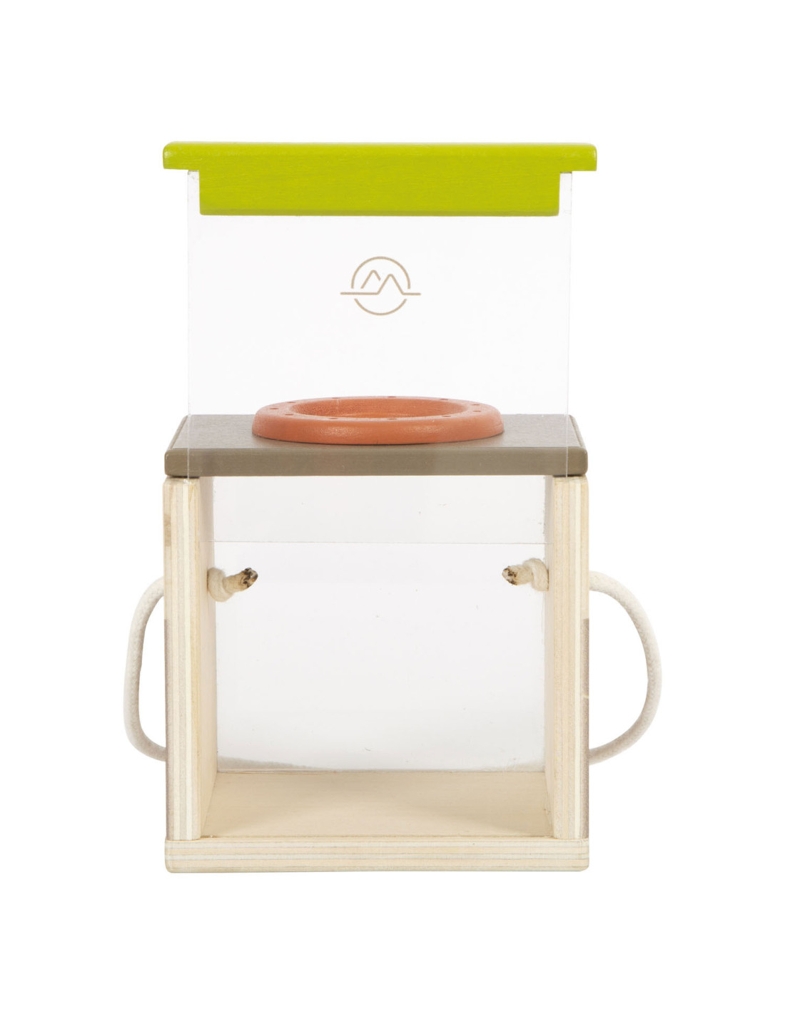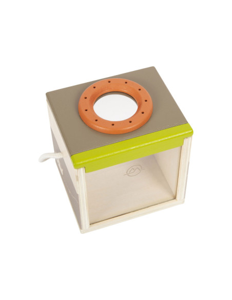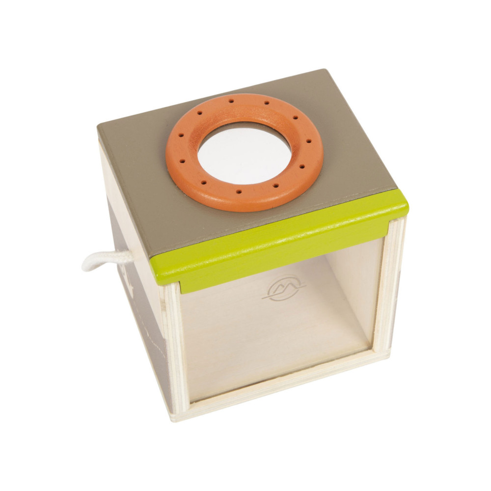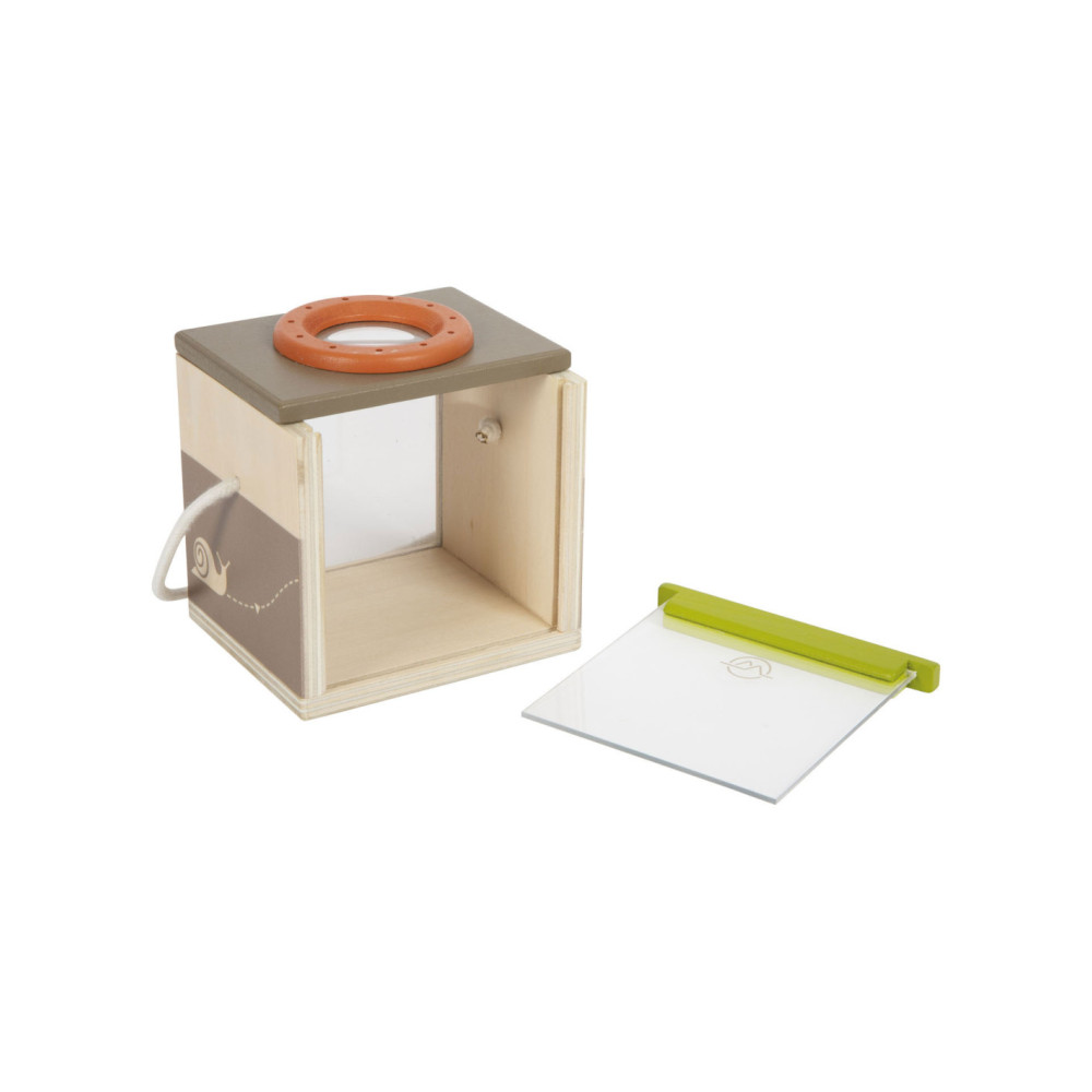 Een volledig overzicht van kevers, rupsen en meer! Kinderen ontdekken graag de natuur om hen heen. Deze insectenobservatiebox is het ideale speelgoed voor ontdekkingsreizigers om allerlei soorten insecten zorgvuldig te vangen en te inspecteren. De insectenkast is gemaakt van stevig, FSC® 100%-gecertificeerd hout en biedt met zijn twee plexiglas zijkanten en vergrootglas aan de bovenkant vanaf drie zijden prachtig zicht op gevangen kruipende beestjes. Hele twijgen en bladeren passen in de binnenkant van de observatiebox, zodat de gevangen insecten stressvrij en beschermd kunnen worden waargenomen. De insectenkast is voorzien van luchtgaten, een touwtje om hem met een hand te kunnen dragen en een beweegbaar plexiglas raampje dat naar boven kan worden geschoven. Inclusief vergrootglas met 5x vergroting aan de bovenzijde.