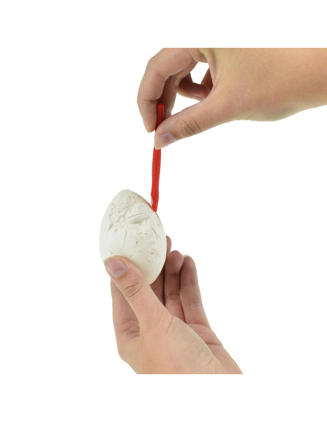 Welke dino zit er in dit fossiele ei verborgen? Als archeoloog leg jij uiterst voorzichtig, met de diverse beitels, de resten van een vleeseter, planteneter of misschien wel een jager bloot.