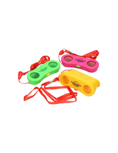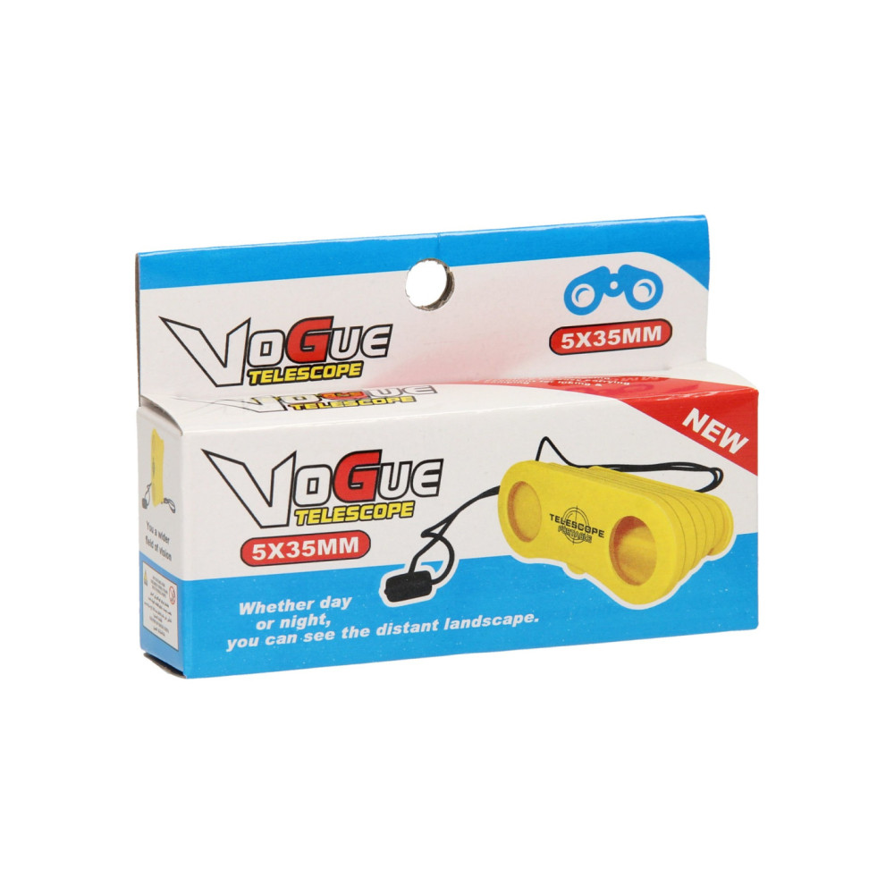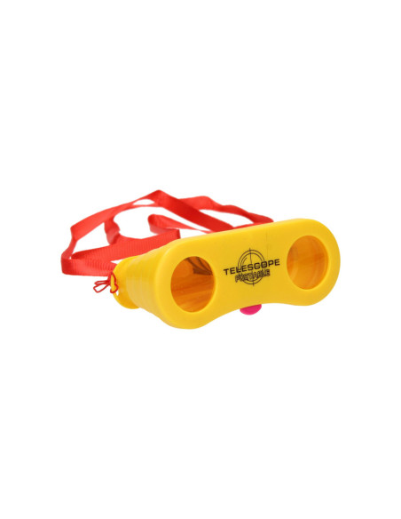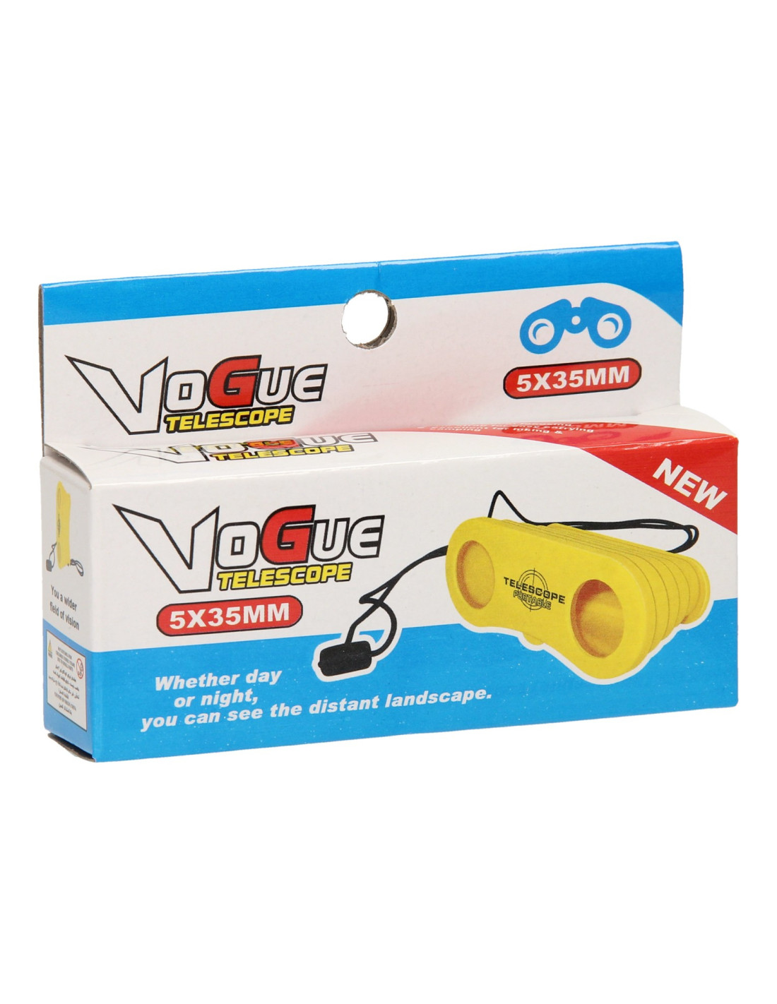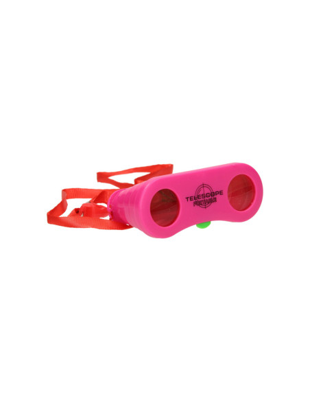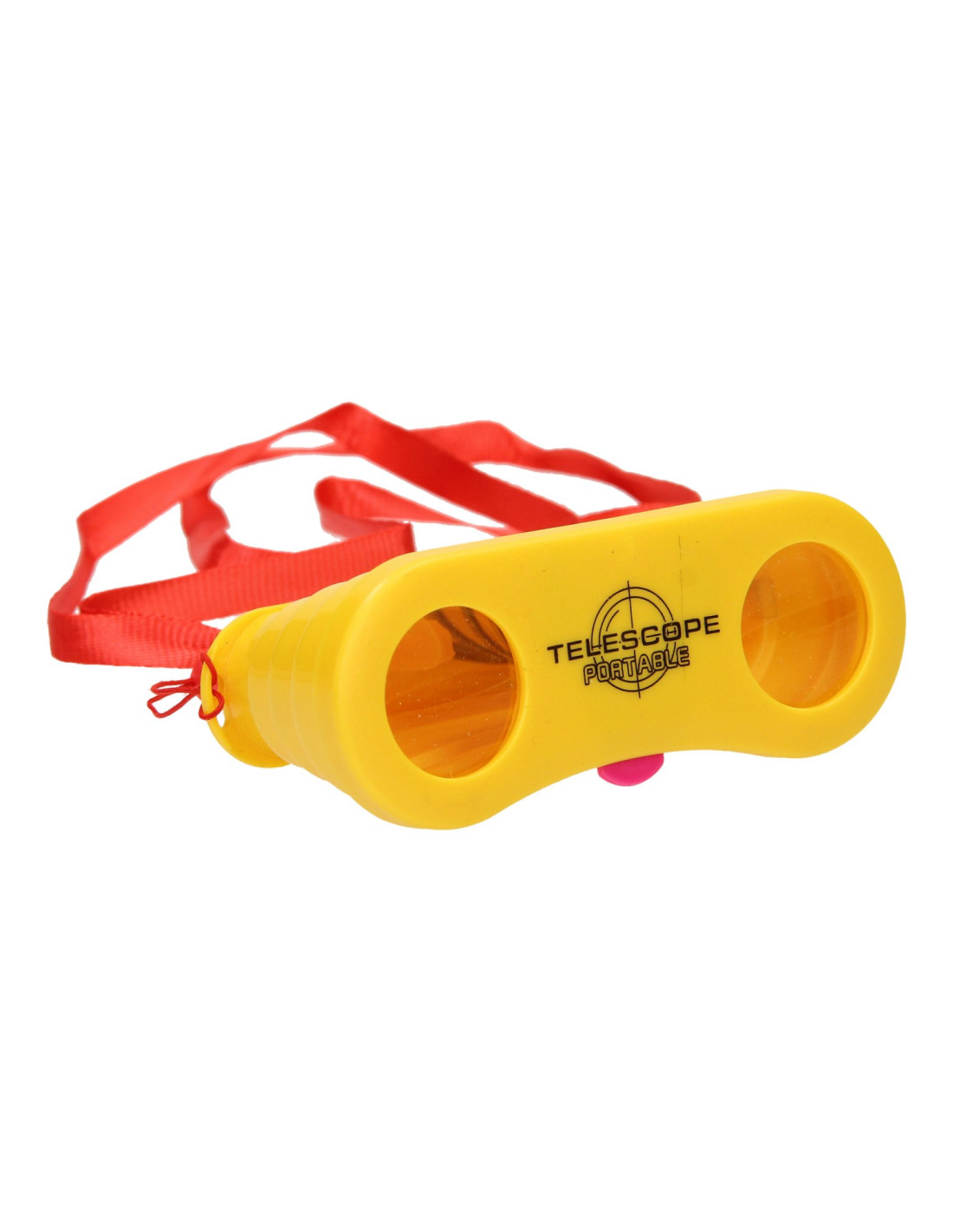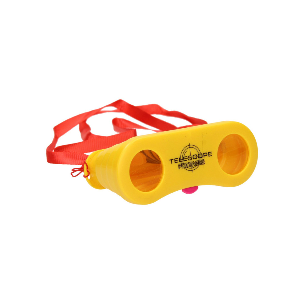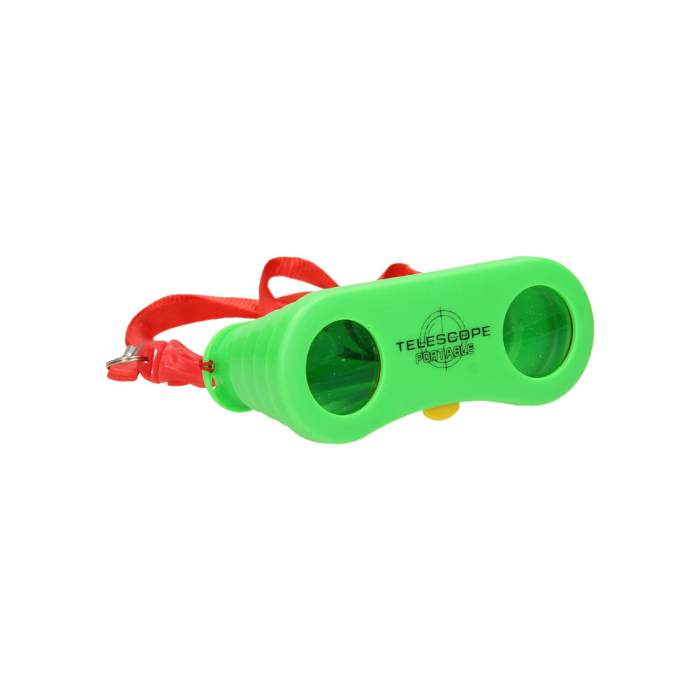 Druk op het knopje en zie hoe de verrekijker uitschuift! Klap hem weer in zodat hij minder ruimte inneemt en dus gemakkelijker mee te nemen is. Maak het koordje eraan, zodat je de verrekijker om je nek kan hangen. Gemaakt van kunststof. De verrekijker is 10 centimeter lang, 3 centimeter breed en 2 centimeter hoog.