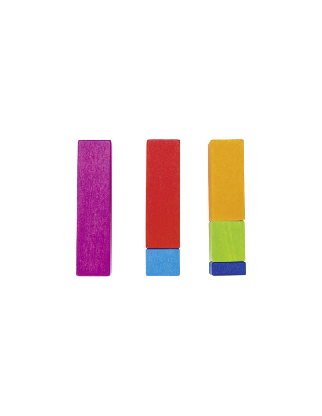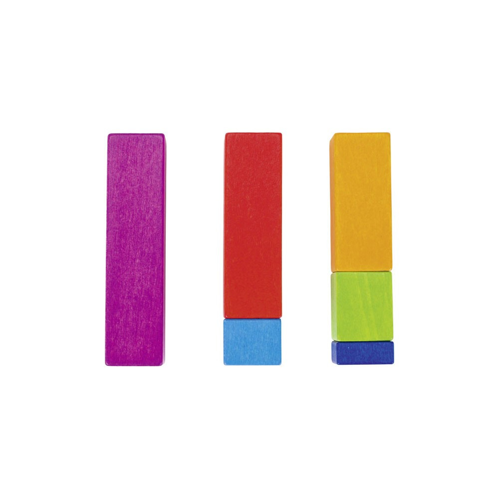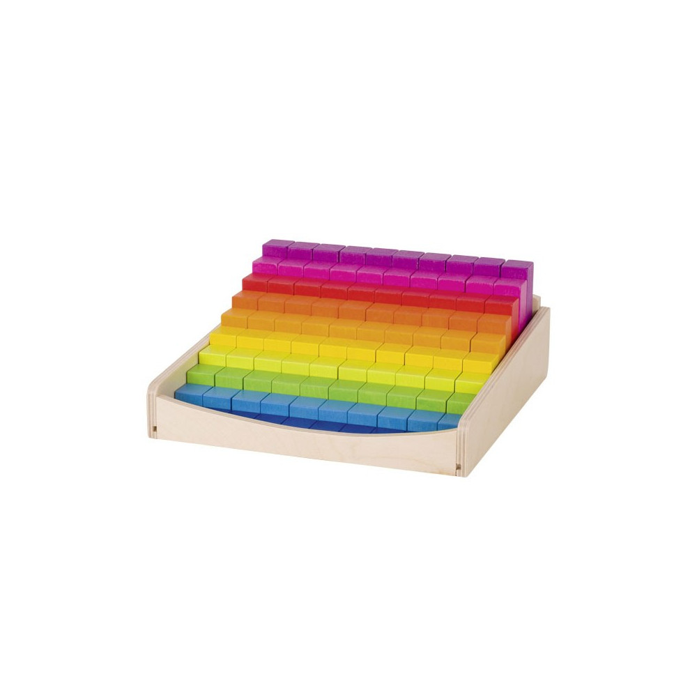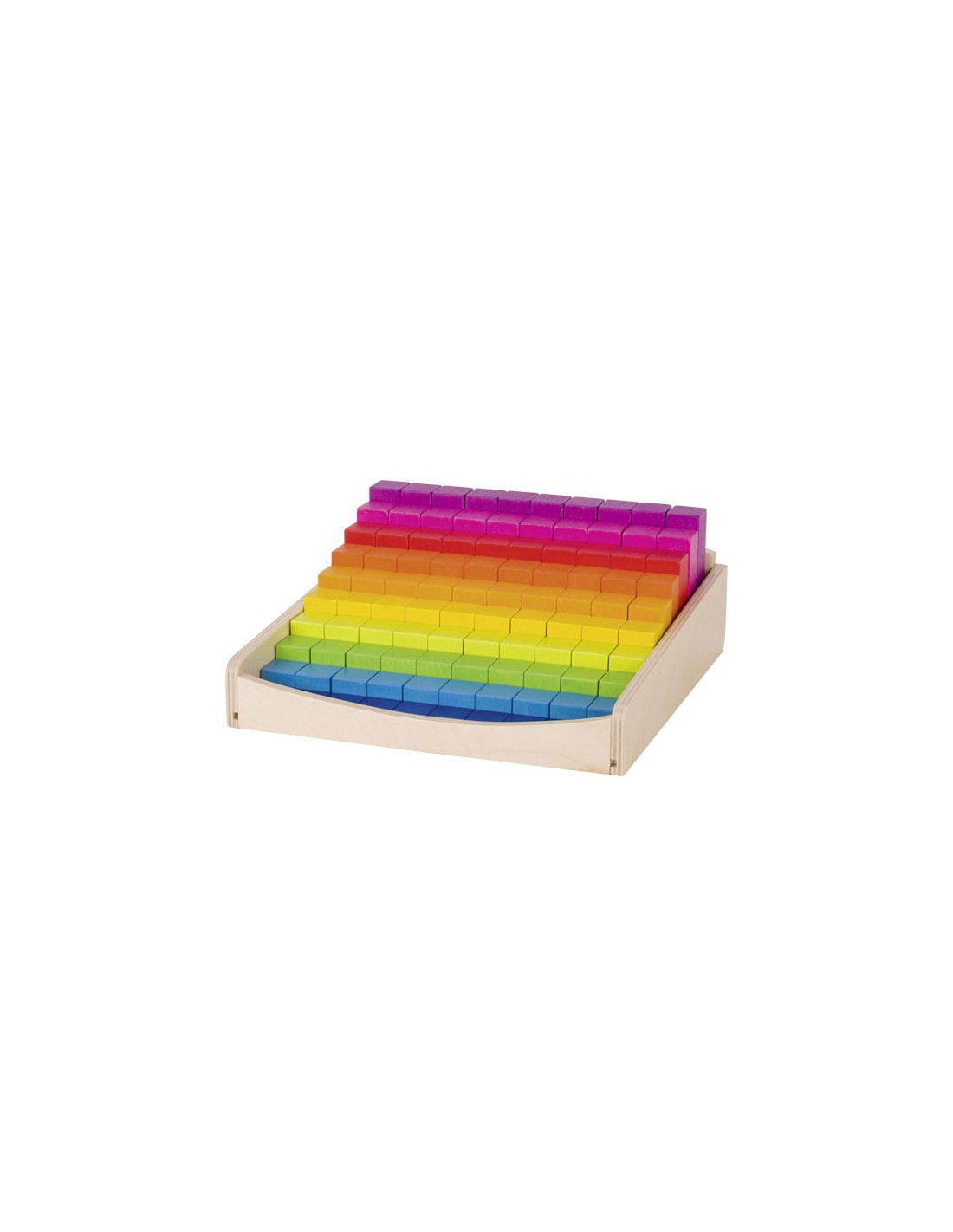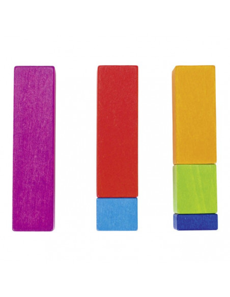Klassiek hulpmiddel voor het leren van de tafels van 1 tot 10. Deze staafjes hebben al vele generaties geholpen bij het visueel krijgen van rekensommen. Deze set bestaat uit 100 houten blokjes in 10 verschillende kleuren in een mooie houten opbergbak.