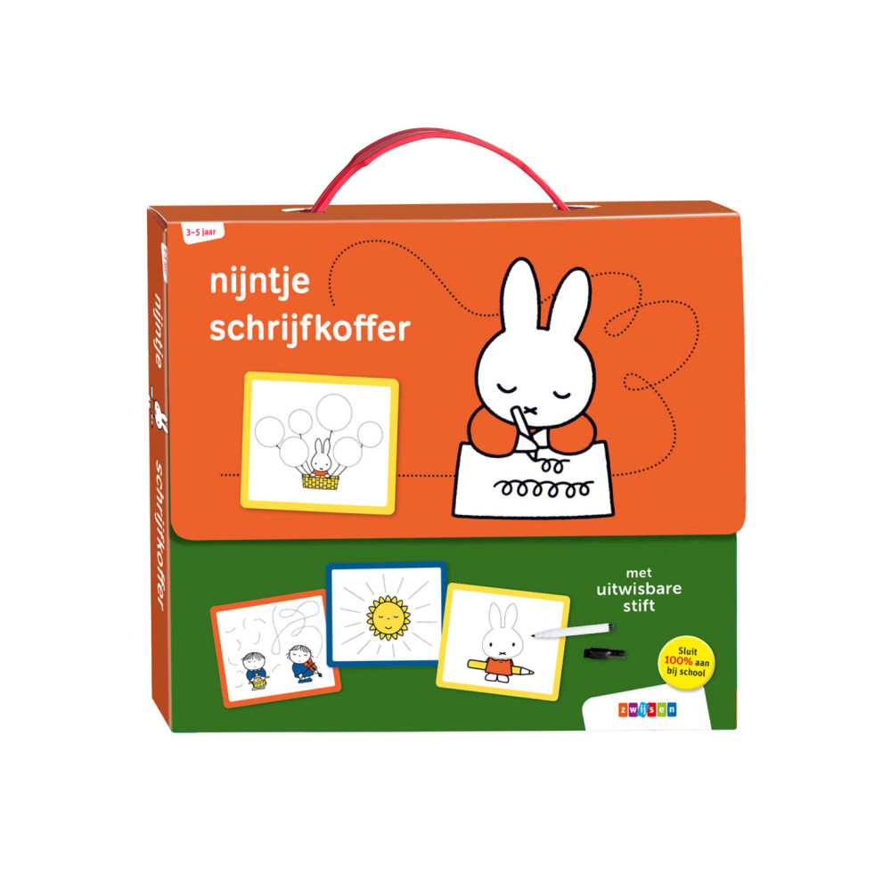 Met deze gezellige schrijfkoffer komen peuters en kleuters op een laagdrempelige manier in aanraking met schrijfbewegingen. Met de uitwisbare schrijfkaarten kunnen kinderen samen met nijntje eindeloos oefenen met het schrijven van rondjes, strepen en krullen. Deze schrijfbewegingen zijn gebaseerd op de vormen van letters. Een goede voorbereiding op het schrijven op school.
