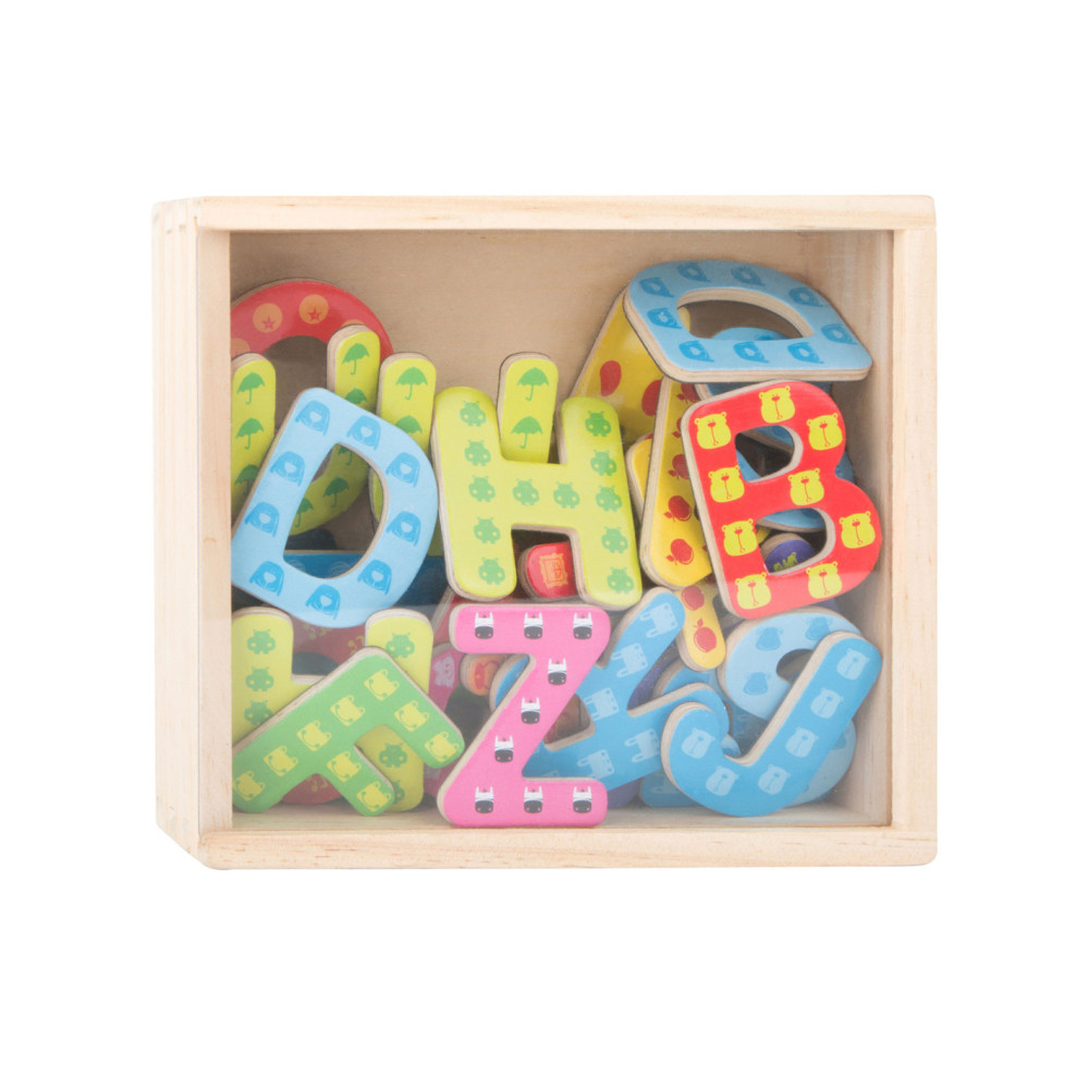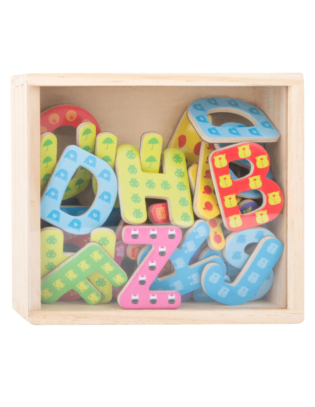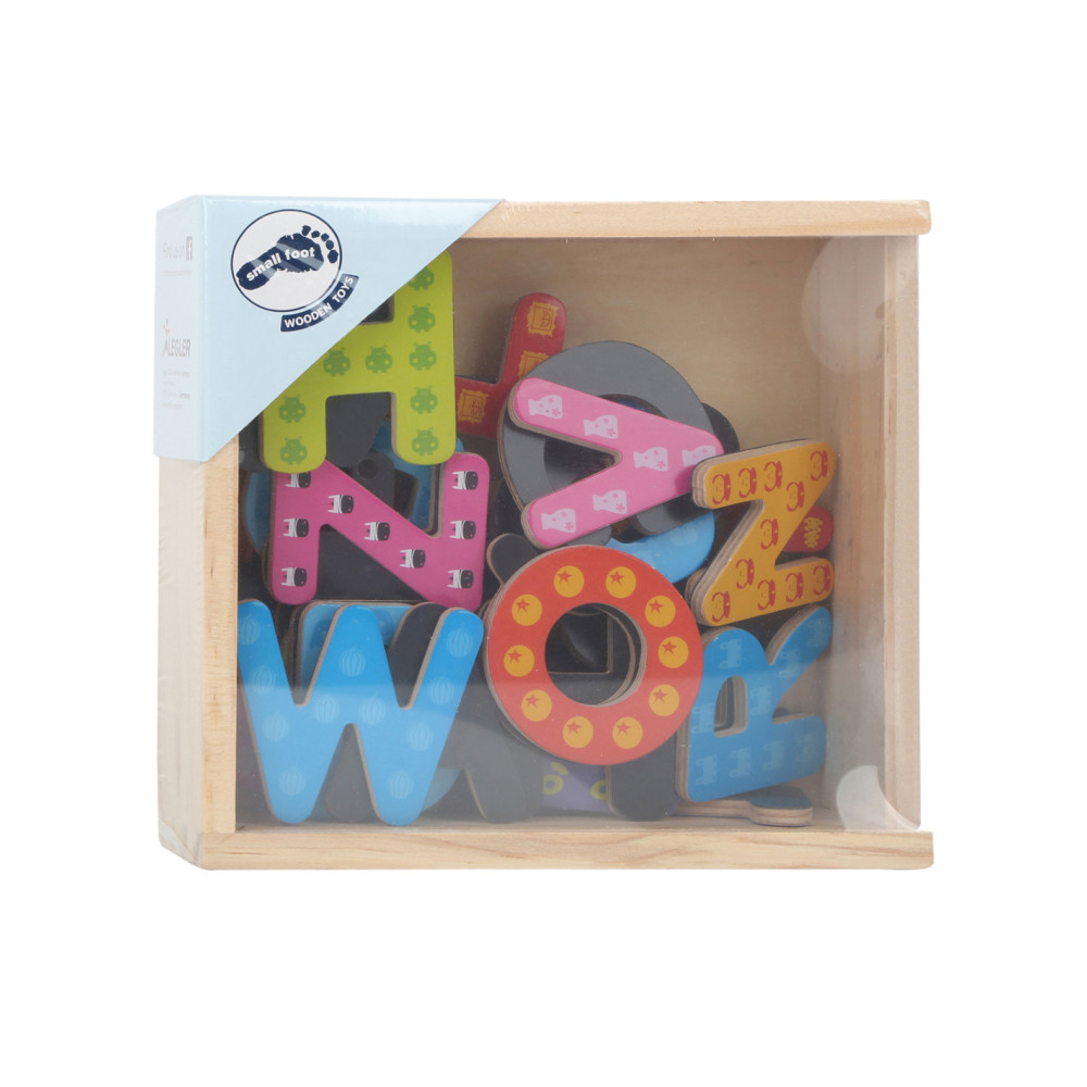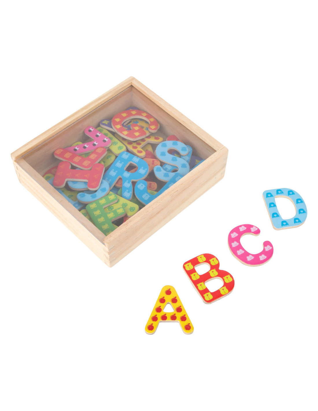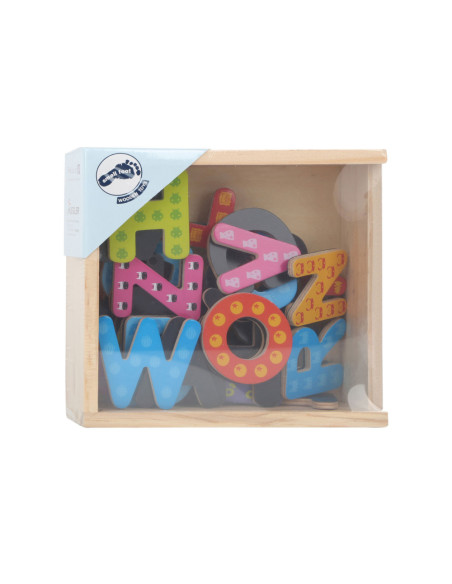 Kom op, we gaan ons ABC leren! De set bestaat uit 37 letters van gekleurd, magnetisch gecoat hout. Elke letter toont motieven met de bijbehorende en bijpassende beginletter. De letters kunnen op elk magnetisch oppervlak worden bevestigd, waardoor de koelkast of het whiteboard de perfecte plek is om de wereld van letters te ontdekken. De praktische houten kist is de ideale opbergruimte voor de 37 stuks in deze set. Kinderen zullen met deze magnetische letters hun eerste tochten door het alfabet maken!