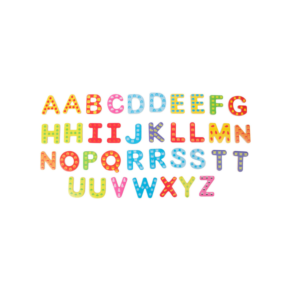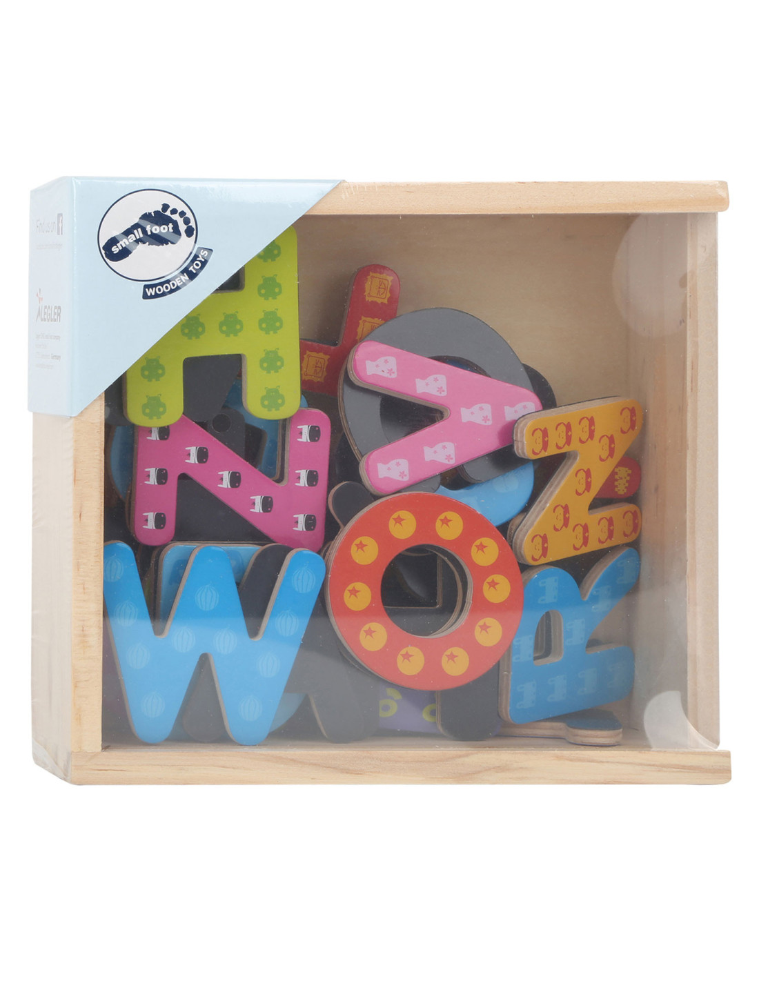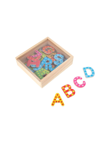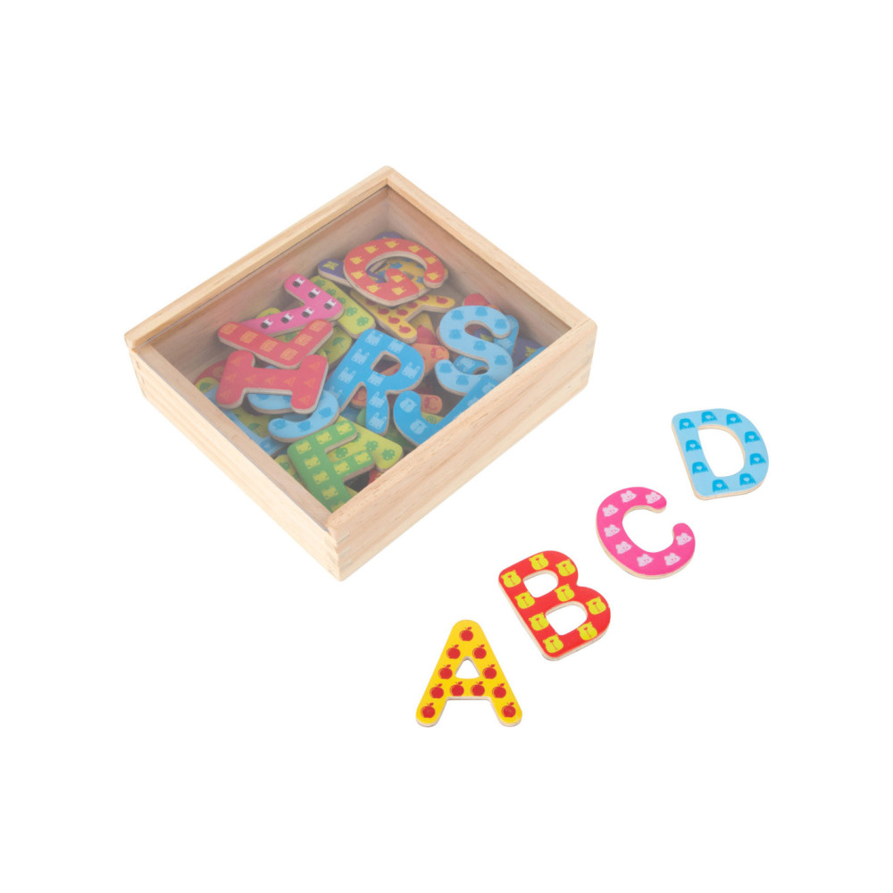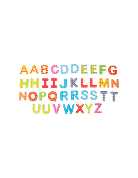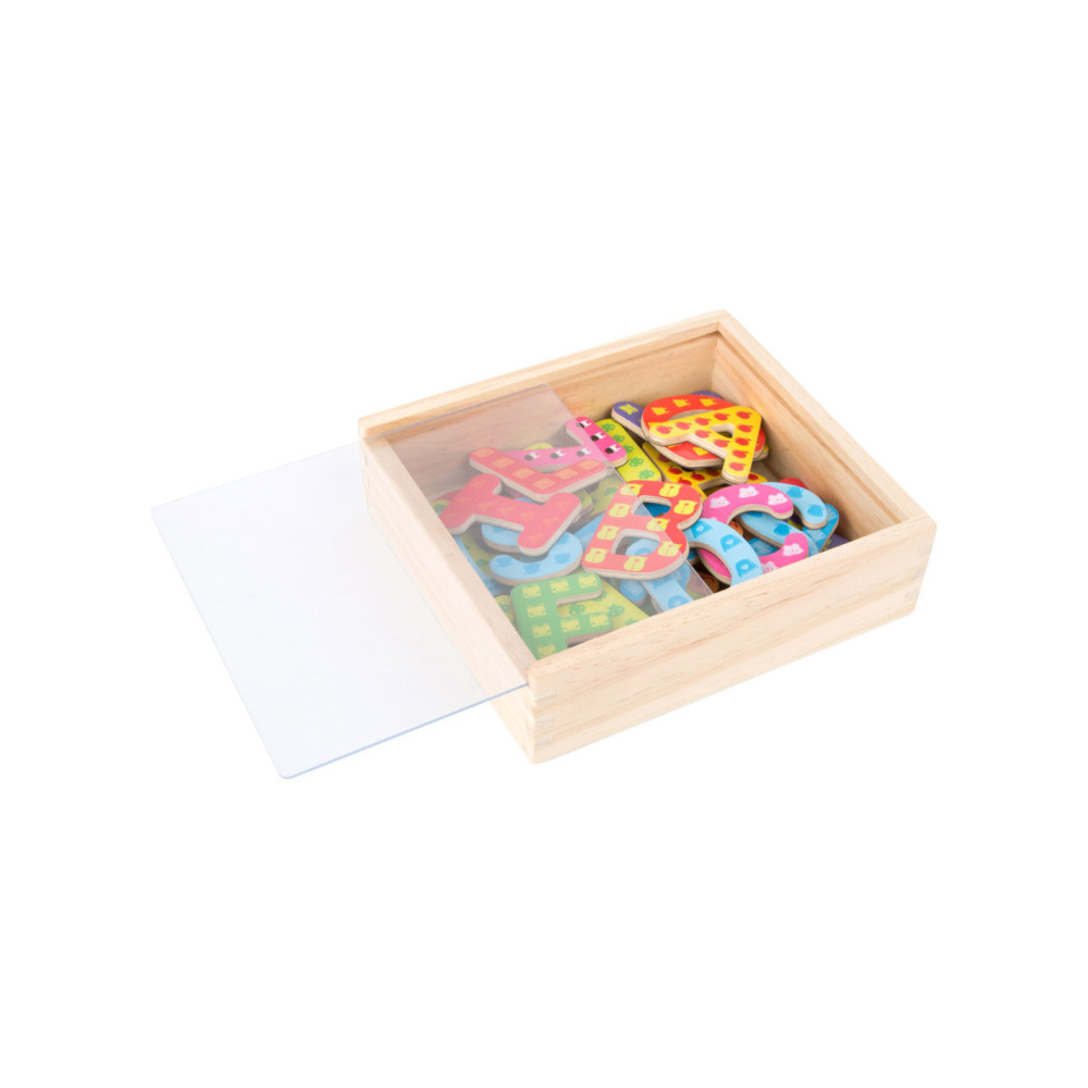 Kom op, we gaan ons ABC leren! De set bestaat uit 37 letters van gekleurd, magnetisch gecoat hout. Elke letter toont motieven met de bijbehorende en bijpassende beginletter. De letters kunnen op elk magnetisch oppervlak worden bevestigd, waardoor de koelkast of het whiteboard de perfecte plek is om de wereld van letters te ontdekken. De praktische houten kist is de ideale opbergruimte voor de 37 stuks in deze set. Kinderen zullen met deze magnetische letters hun eerste tochten door het alfabet maken!