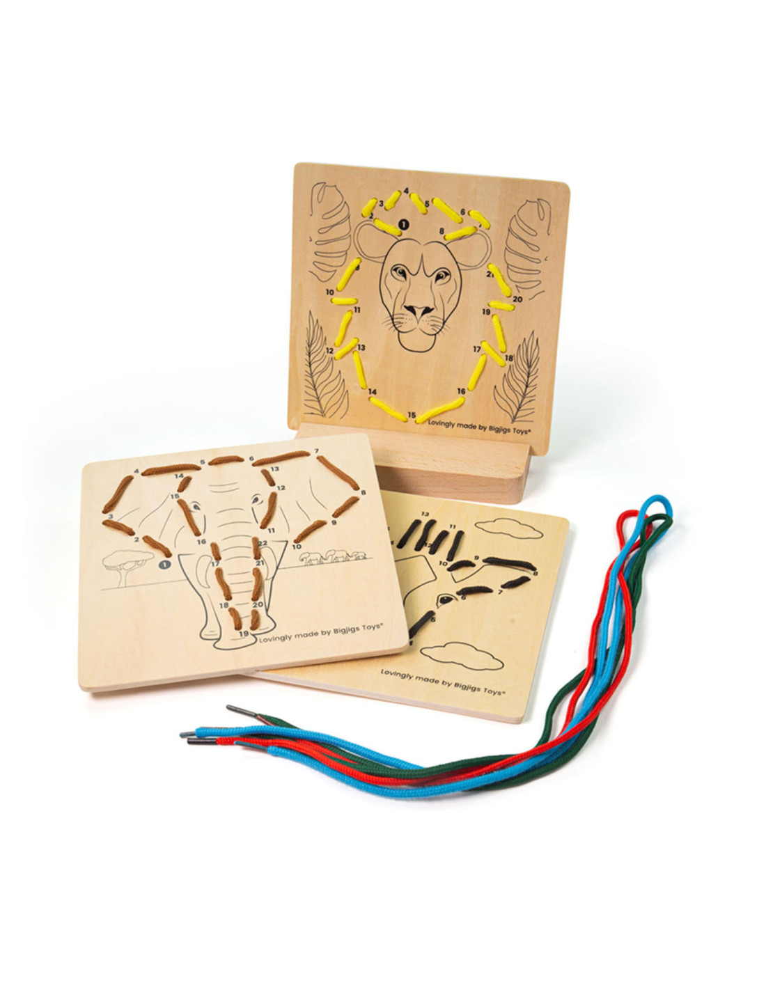 Inhoud veterrijgen speelset: 3x borden van jungledieren, 5x veters. Dit artikel helpt peuters ontwikkelen van tellen en fijne motoriek. Gemaakt van hoogwaardige, verantwoorde materialen. Geschikt voor kinderen vanaf 3 jaar.