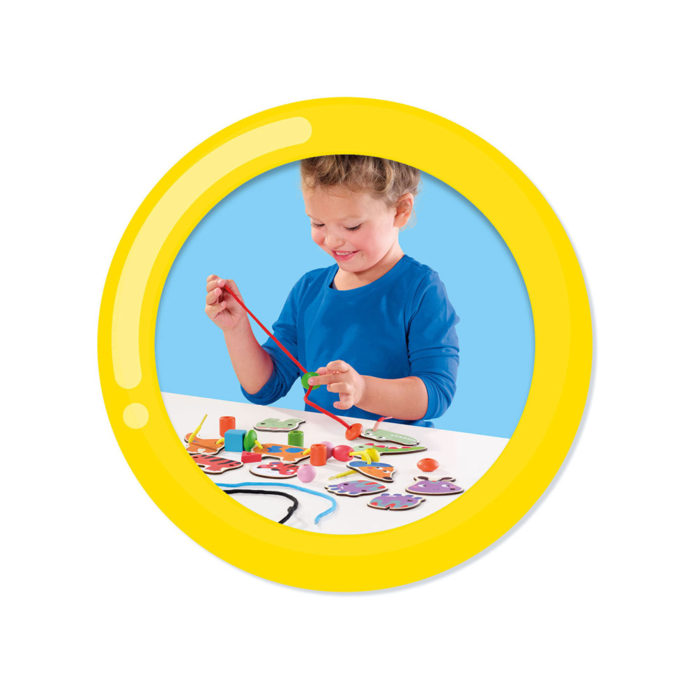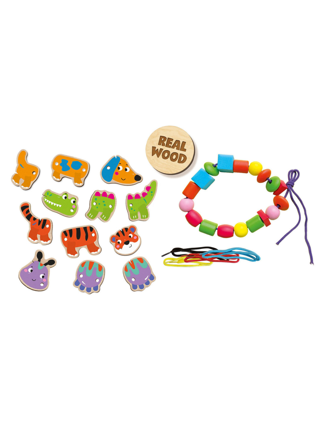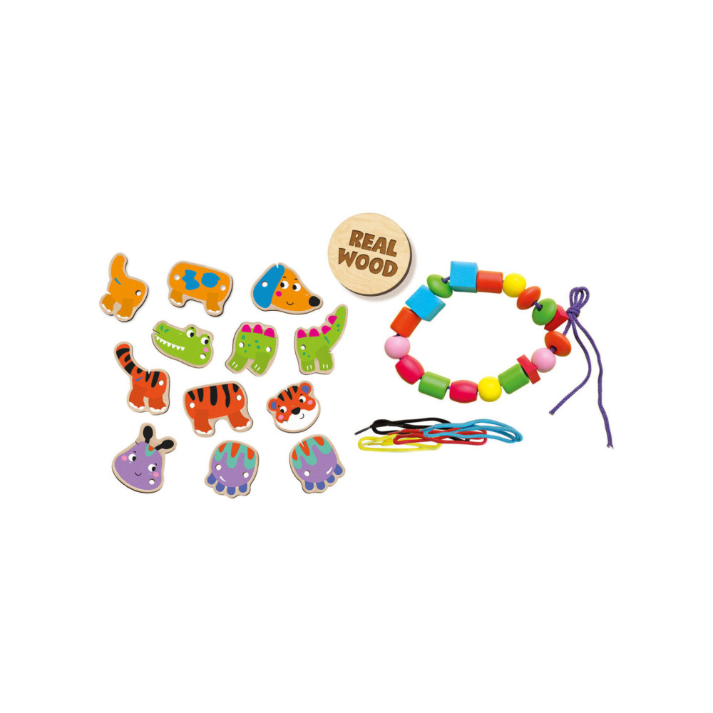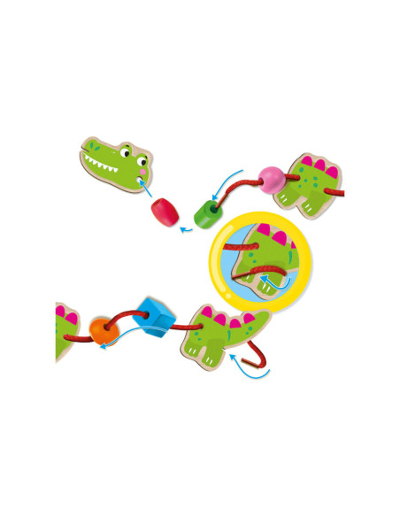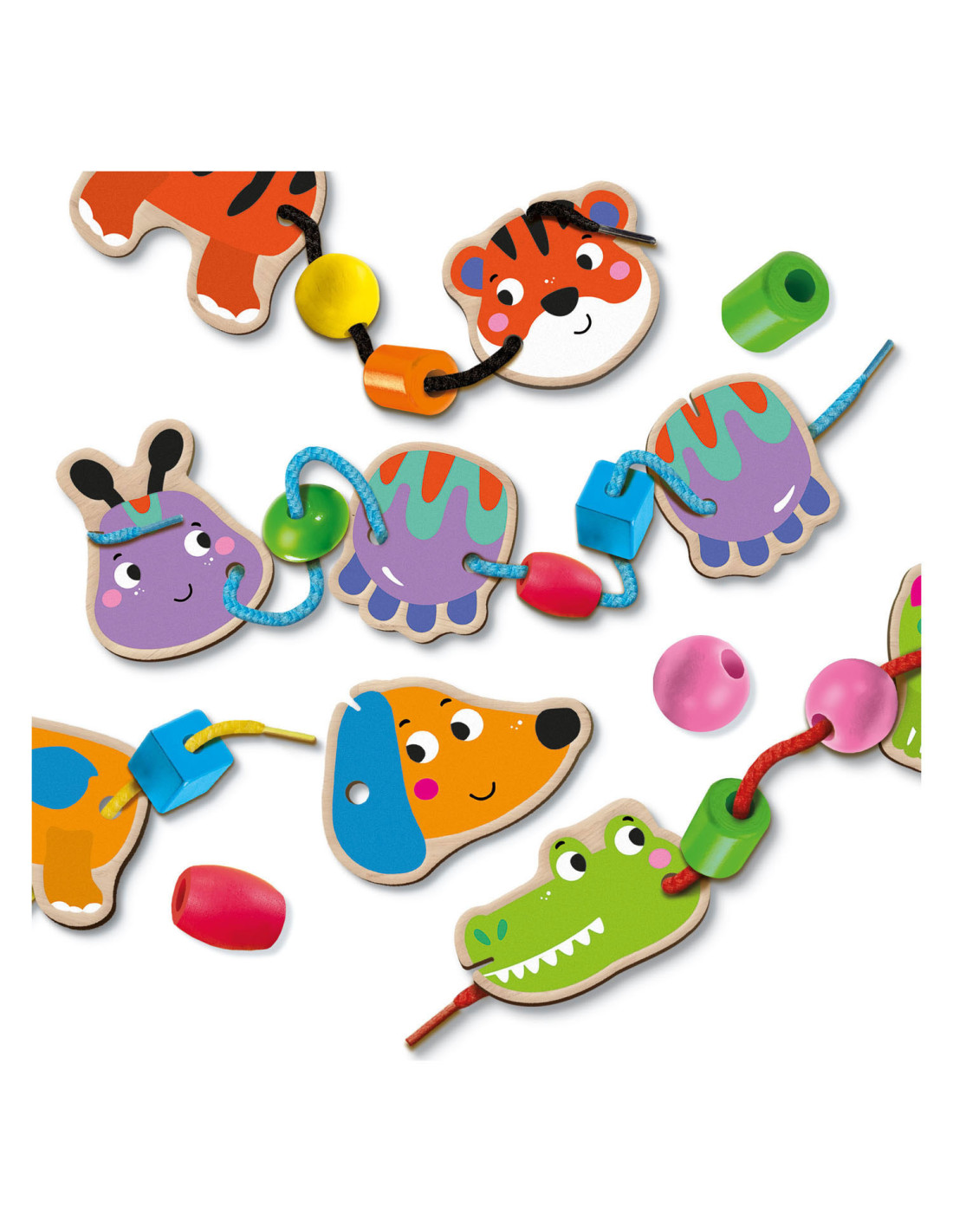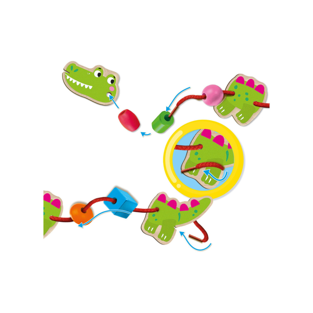 Kun jij zorgen dat de krokodil van kop tot staart weer compleet is? Deze dieren komen samen met kralen in de verpakking. Ze hebben hun lichaam weer nodig! En aan jou de taak om ze weer compleet aan elkaar te rijgen. Met de vrolijke kralen en verschillende kleuren veters rijg jij de diertjes zo weer aan elkaar.