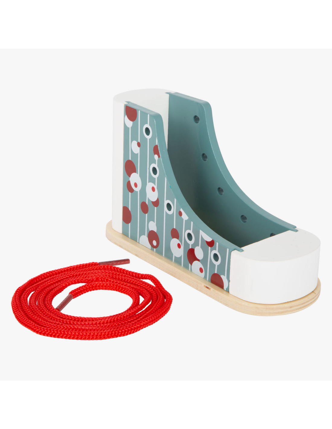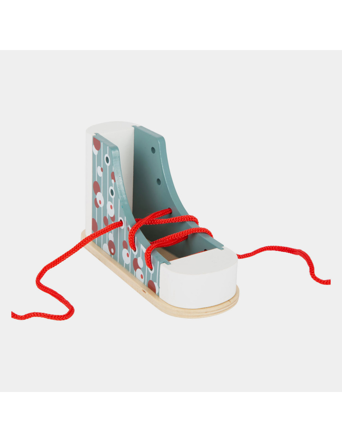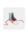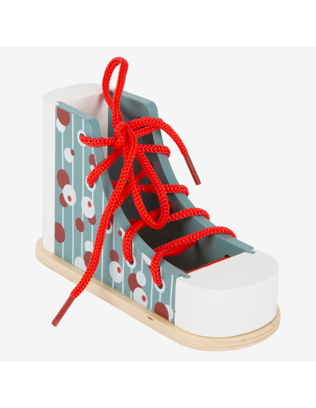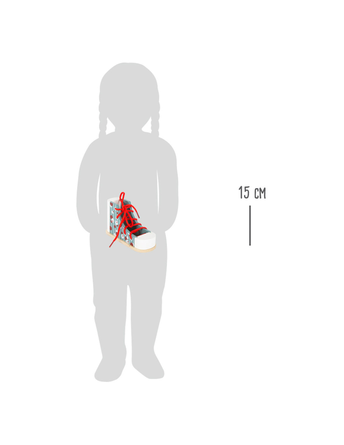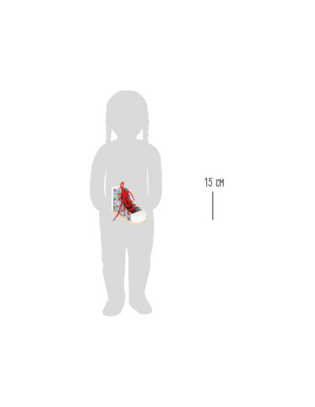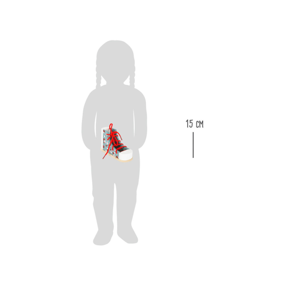 Dus zo knoop je je veters! Met deze praktische houten leerschoen in modern design leren kinderen spelenderwijs hoe ze hun veters strikken, veters door de oogjes halen en een strik strikken. Al die tijd zullen ze hun geduld en fijne motoriek trainen. Stabiel met een goed, solide gewicht, deze schoen is bestand tegen alle veterpogingen! Veters strikken kan voor veel kinderen een echte uitdaging zijn. Met deze schoenbindertrainer wordt het leren strikken een fluitje van een cent. Schoenen strikken gemakkelijk gemaakt! Ideaal voor kinderen in de kleuterklas!