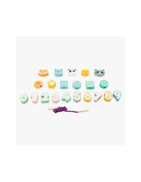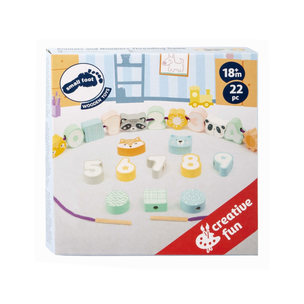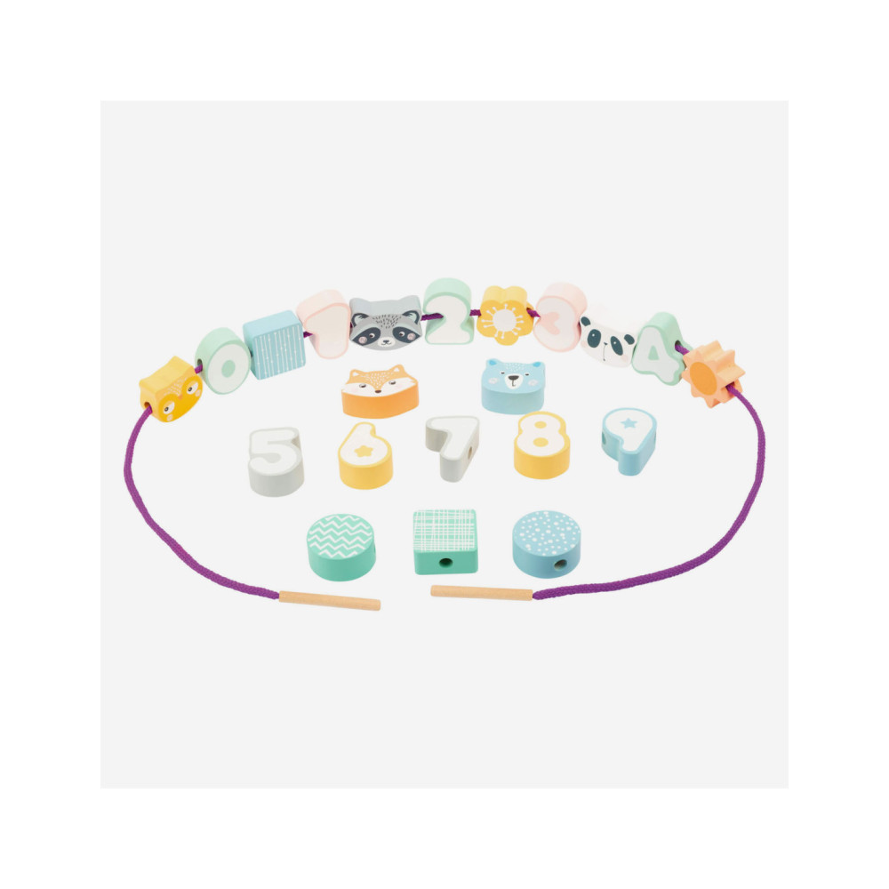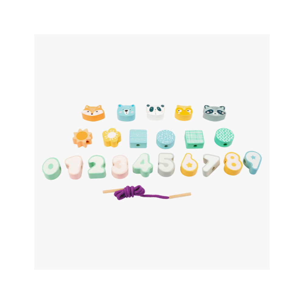 Een leuk rijgspel met dieren en cijfers! Het doel van dit houten rijgspel is om de cijfers 0-9 in de juiste volgorde aan elkaar te rijgen. Dit zal zeker concentratie en vaardigheid vergen van de jonge draadkunstenaars! Een geweldig concentratiespel in een moderne pastellook met gegarandeerd speelplezier.