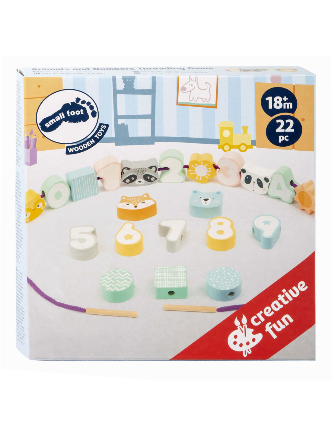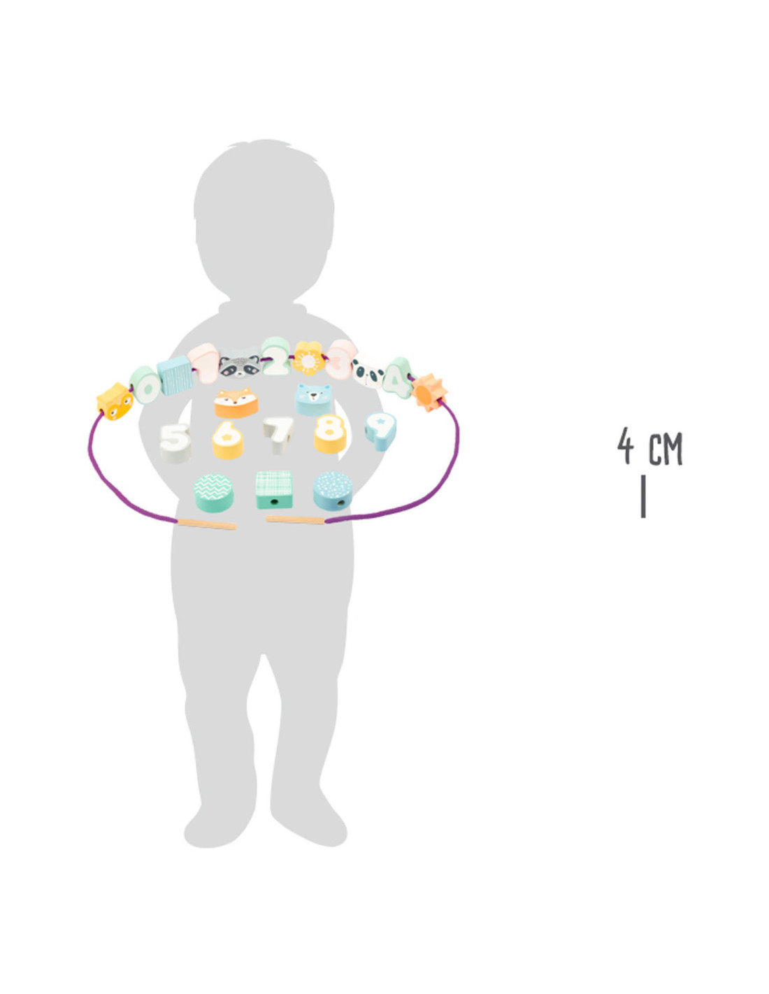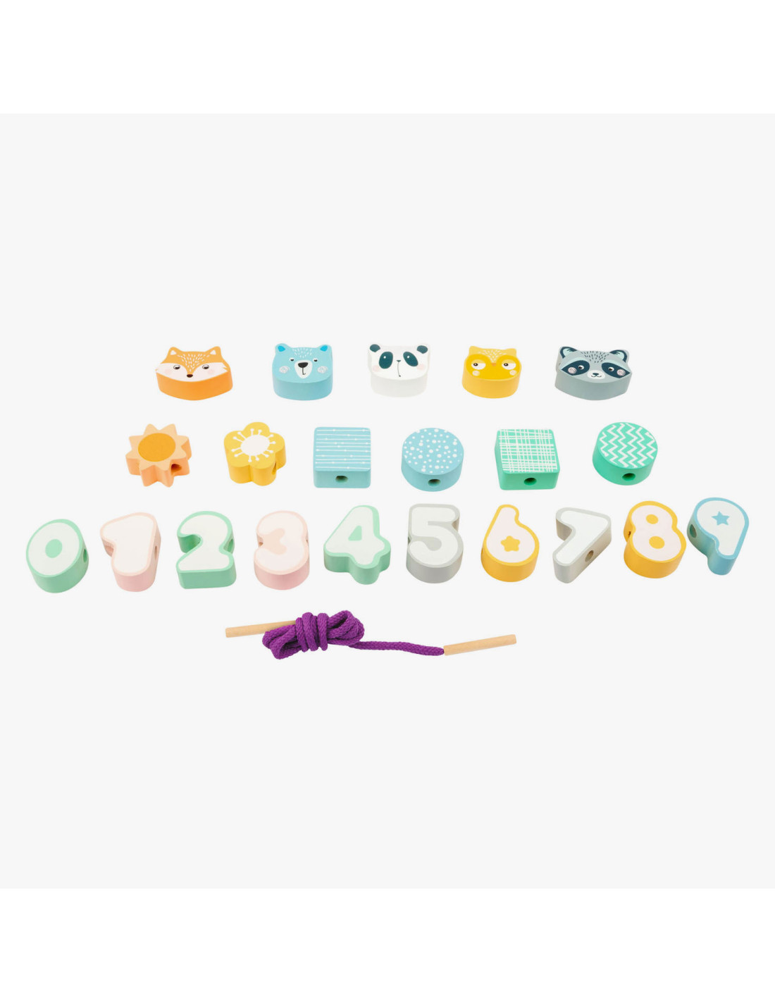 Een leuk rijgspel met dieren en cijfers! Het doel van dit houten rijgspel is om de cijfers 0-9 in de juiste volgorde aan elkaar te rijgen. Dit zal zeker concentratie en vaardigheid vergen van de jonge draadkunstenaars! Een geweldig concentratiespel in een moderne pastellook met gegarandeerd speelplezier.