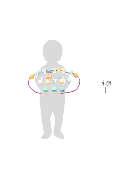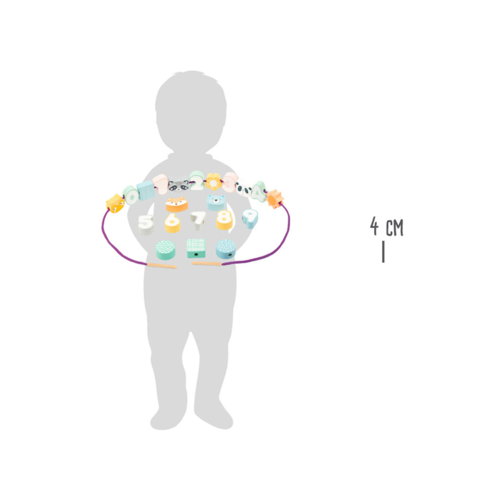 Gemaakt van hout. Afmetingen kralen: ca. 4 x 4 x 2 cm. Geschikt voor kinderen vanaf 24 maanden oud.