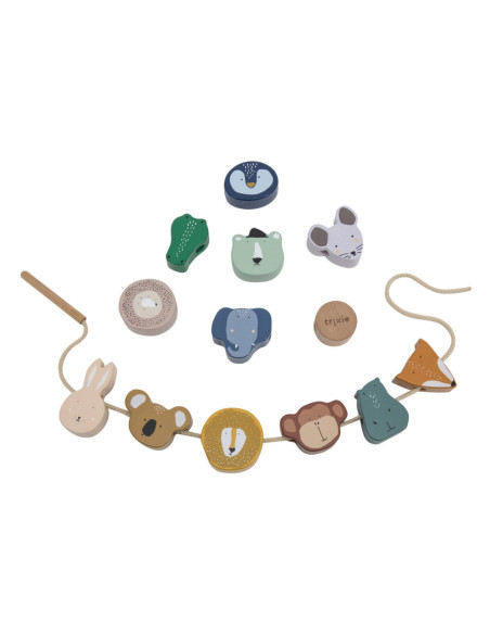 De perfecte manier om de kleine vingertjes van kinderen te trainen! Rijg alle dieren aan het touwtje met behulp van de houten naald. Kinderen leren hierdoor al spelend complexe en precieze bewegingen uit te voeren met hun handjes. De dierenkralen zijn gemaakt van 100% FSC © gecertificeerd hout. Alle verven zijn op waterbasis en veilig voor baby's.