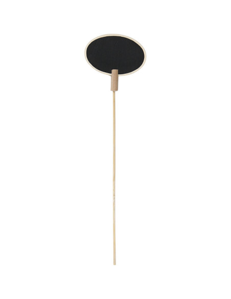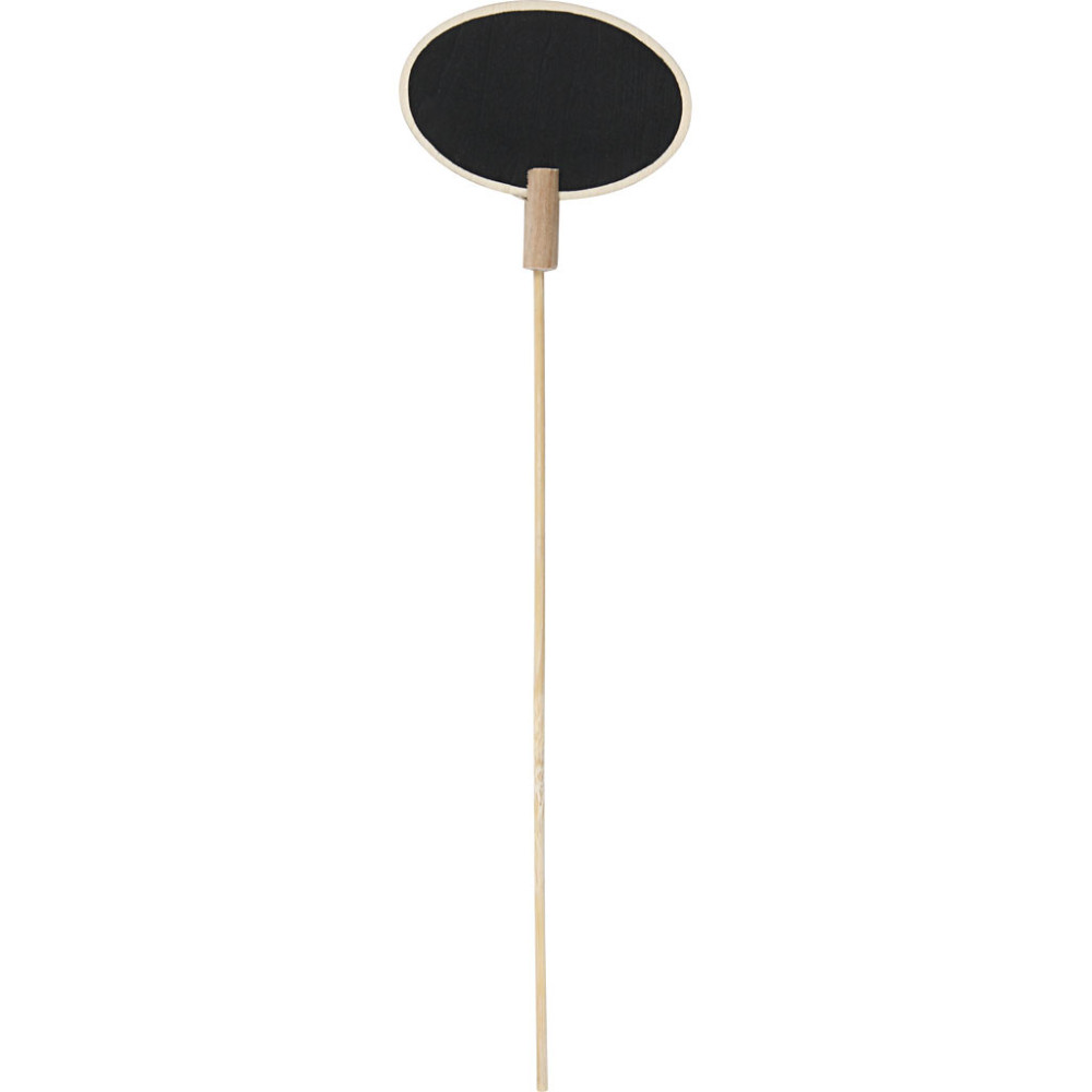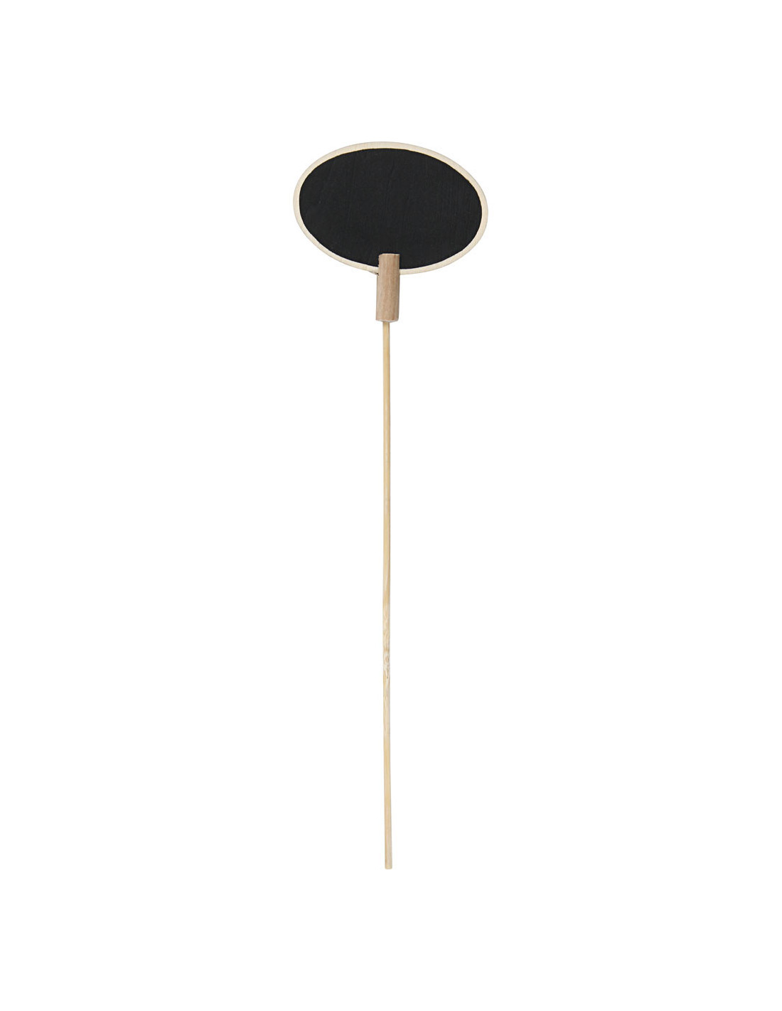 Een klein schoolbordje op een stok is een handig en stijlvol hulpmiddel voor het aangeven van welke planten u in uw tuin heeft staan. Dit bordje is gemaakt van hout en heeft een kleine schoolbord-achtige oppervlakte waarop u de naam van de plant kunt schrijven met een whiteboard marker. De stok waarop het bordje bevestigd is, maakt het gemakkelijk om het bordje in de grond te steken en zo de plant te identificeren.