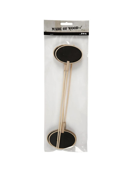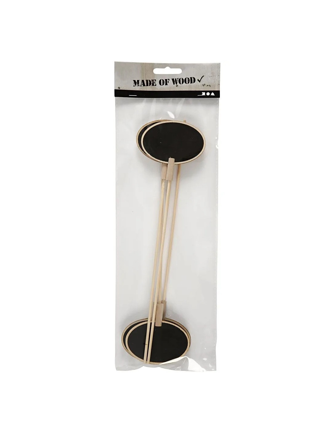 De afmetingen zijn: 5 Stuk, Bordje:7,3x5cm, diameter stokje:3mm