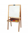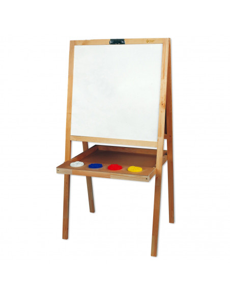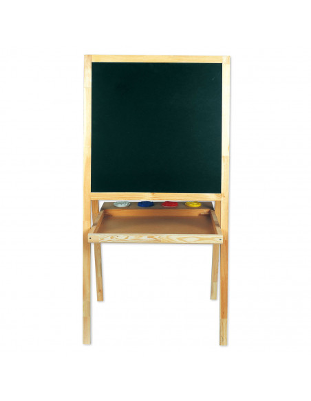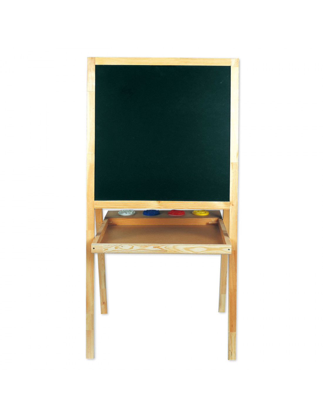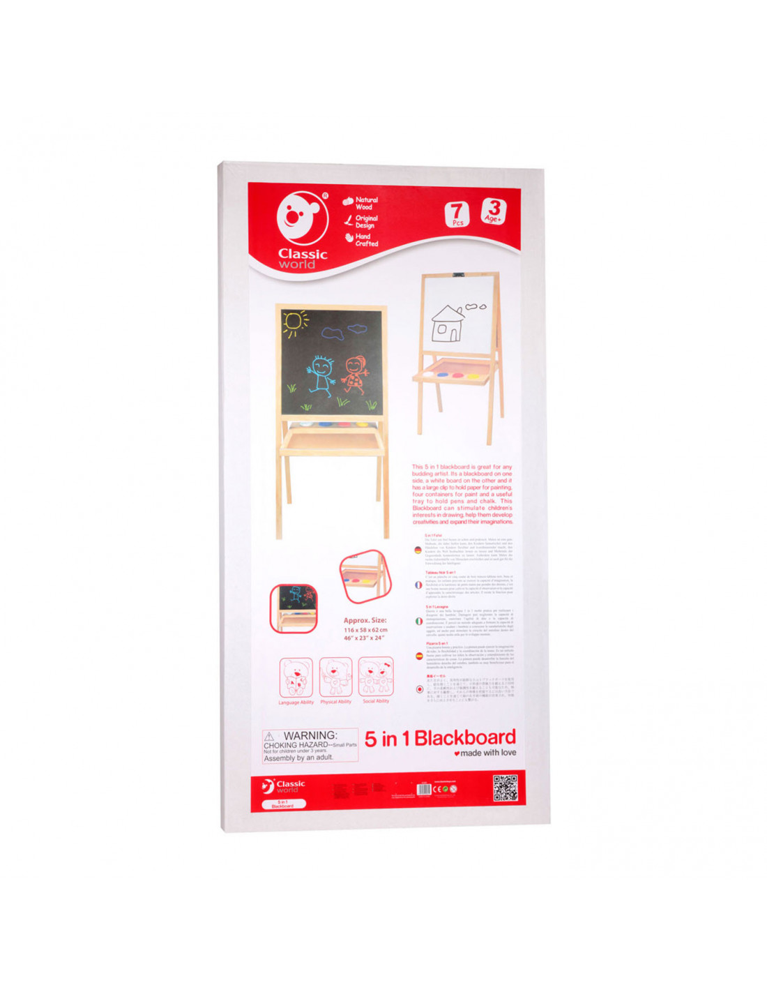 Maak de mooiste kunstwerken op dit houten school- en whiteboard van Classic World. Klap het houten bord uit en er verschijnt een whiteboard aan de ene zijde en een krijtbord aan de andere zijde. Op het tafelblad onderop kun je al je krijtjes, stiften of bijgeleverde verfpotjes. Door de handige klem aan de bovenkant kan je hier gemakkelijk papier aan vastklemmen om bijvoorbeeld te verven. Inclusief 10 krijtjes.
