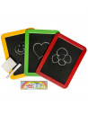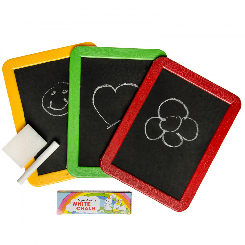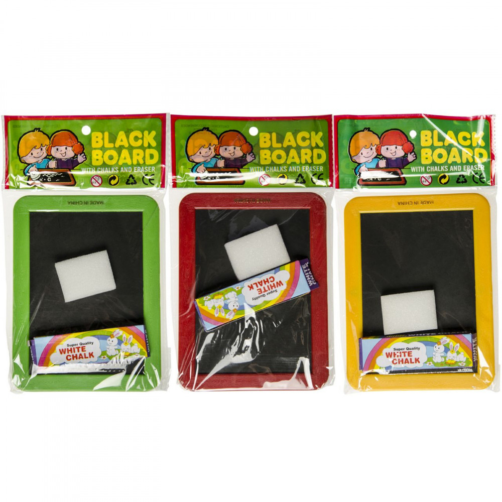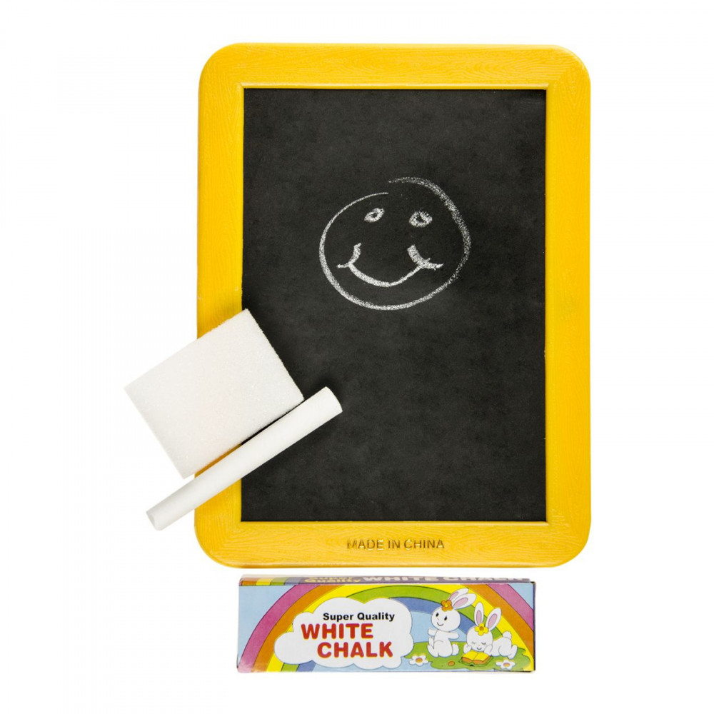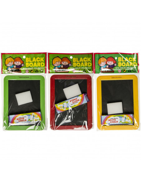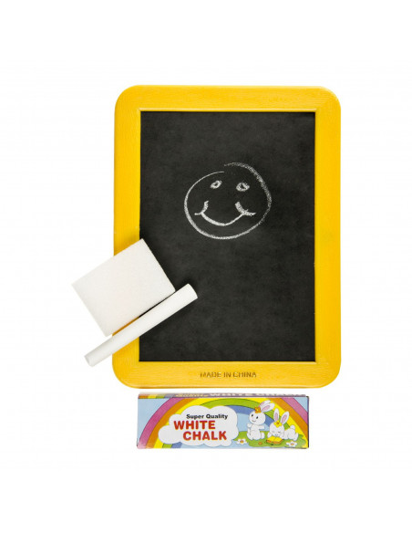 Dit vrolijke krijtbord met gekleurde lijst is perfect voor kleine boodschappen, creatieve tekeningen of spelenderwijs leren schrijven. Met een compact formaat van 18 bij 13,5 centimeter past het gemakkelijk op een bureau, plank of in een kinderkamer. De lijst is verkrijgbaar in verschillende kleuren en maakt elk krijtbord uniek. De uitvoeringen worden door elkaar geleverd, wat zorgt voor een leuke verrassing bij ontvangst.