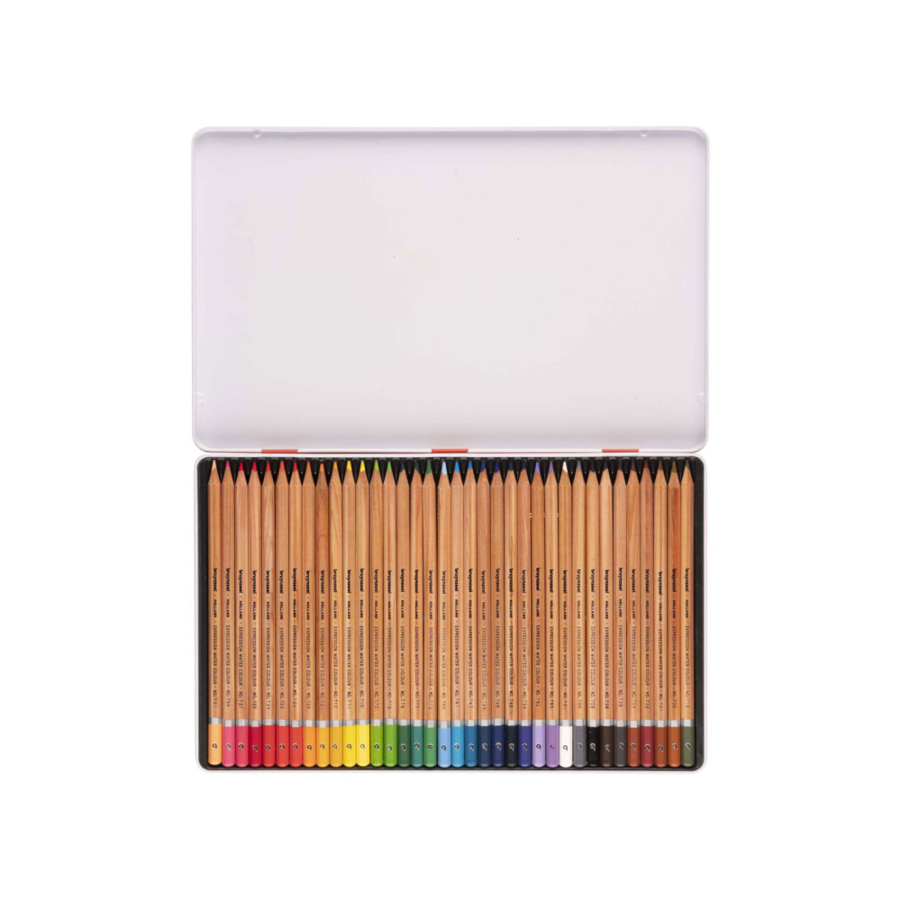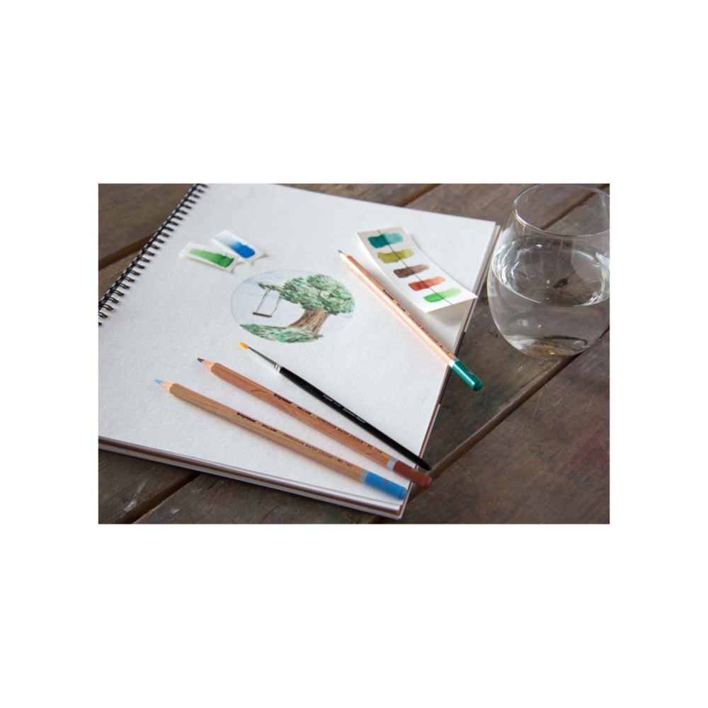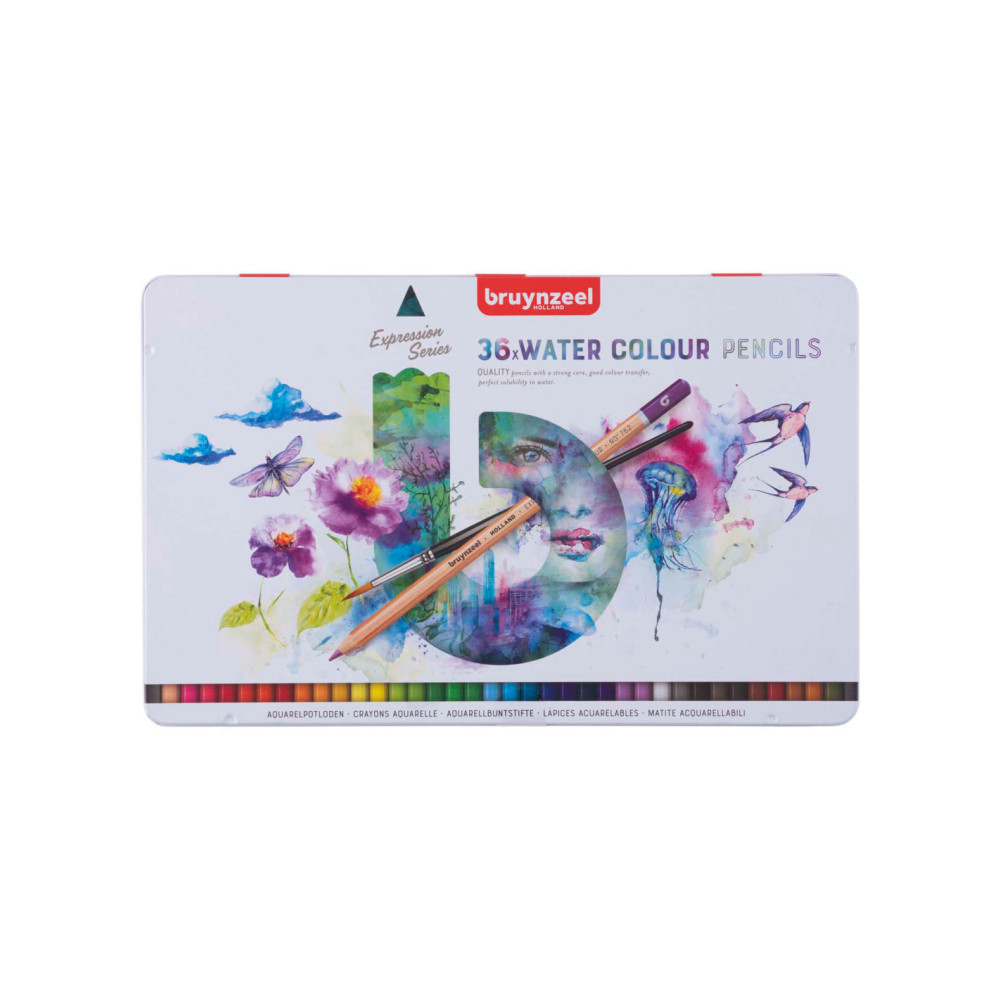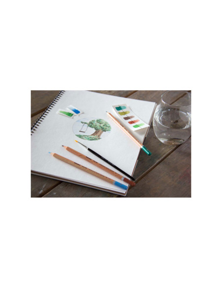 36 aquarelpotloden van hoge kwaliteit met sterke, dikke stift van 2,9 mm met hoogwaardige pigmenten voor een extra goede kleurafgifte en volledige oplosbaarheid met water. Zowel droog als nat op te brengen. Inclusief penseel.