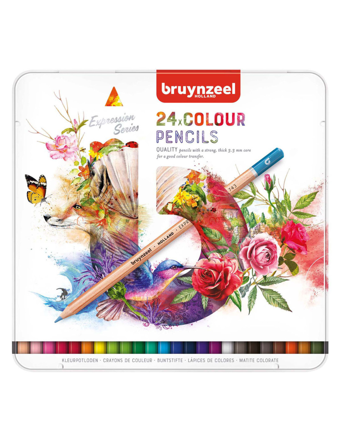 24 kleurpotloden van hoge kwaliteit met een sterke, dikke stift van 3,3 mm met hoogwaardige pigmenten voor een extra goede kleurafgifte.
