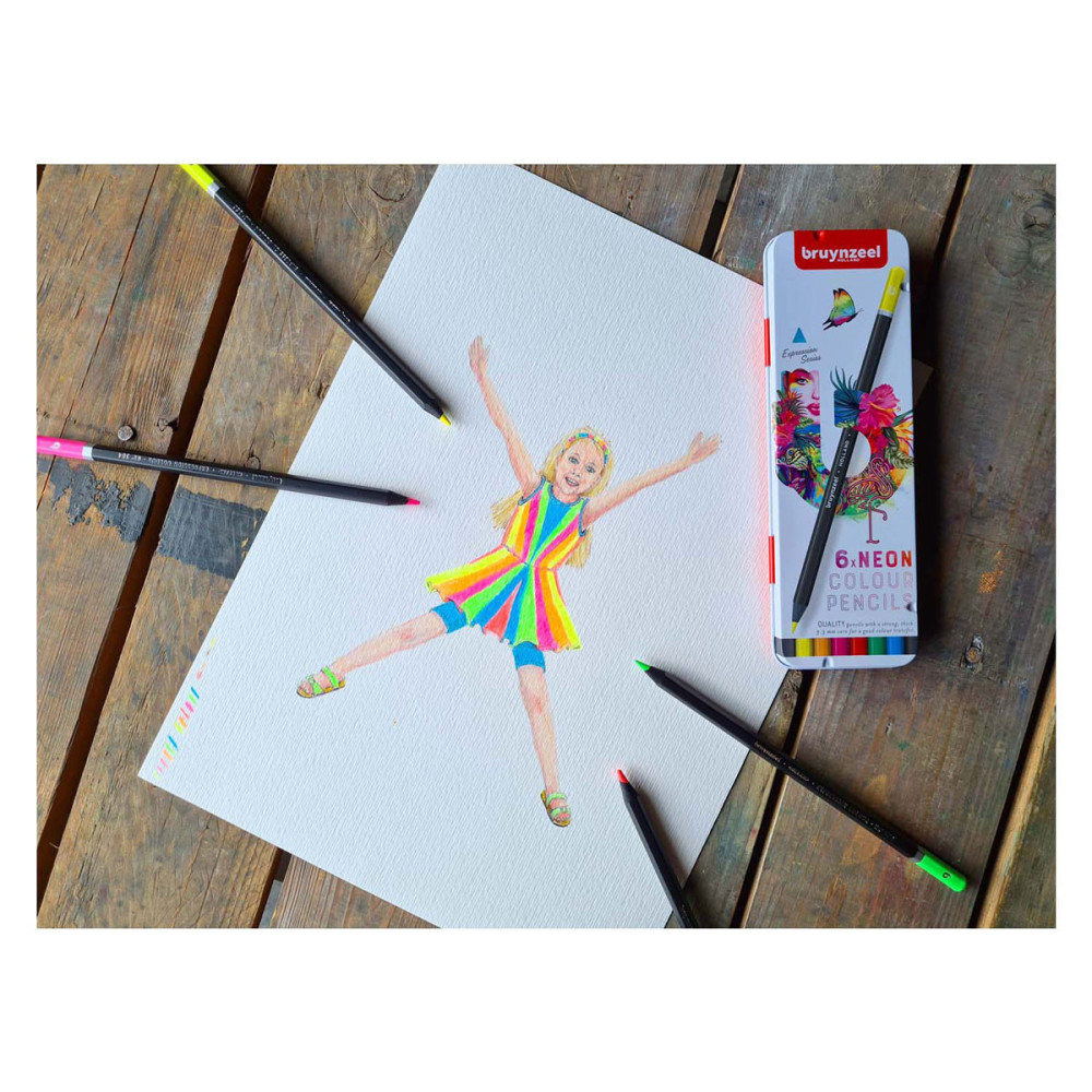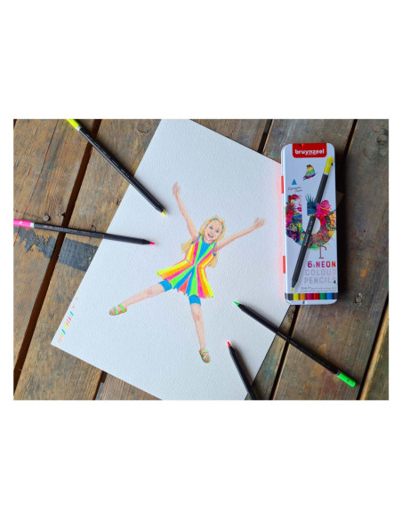 6 kleurpotloden van hoge kwaliteit in gave neontinten. De potloden hebben een sterke, dikke stift van 3,3 mm met hoogwaardige pigmenten voor een extra goede kleurafgifte.