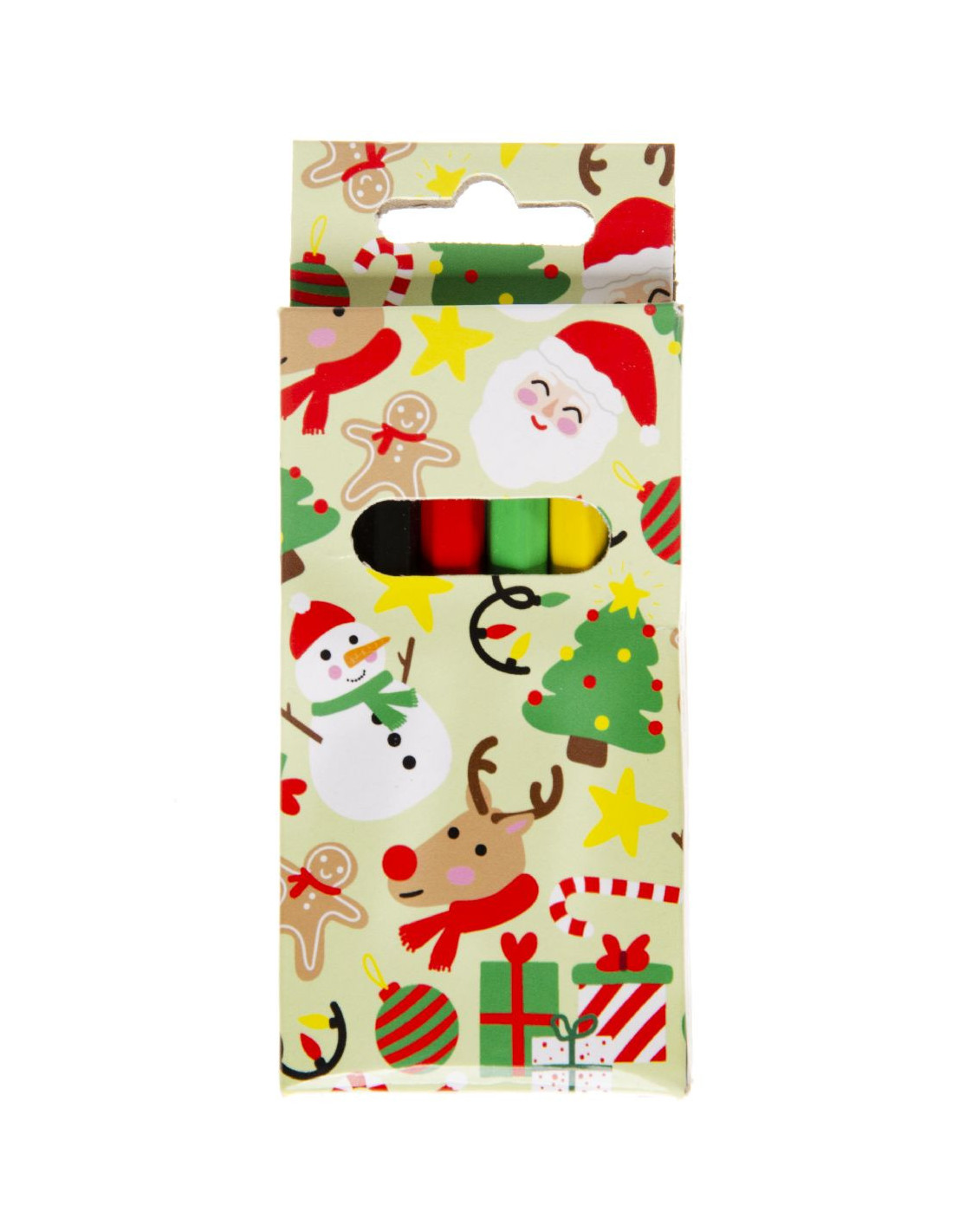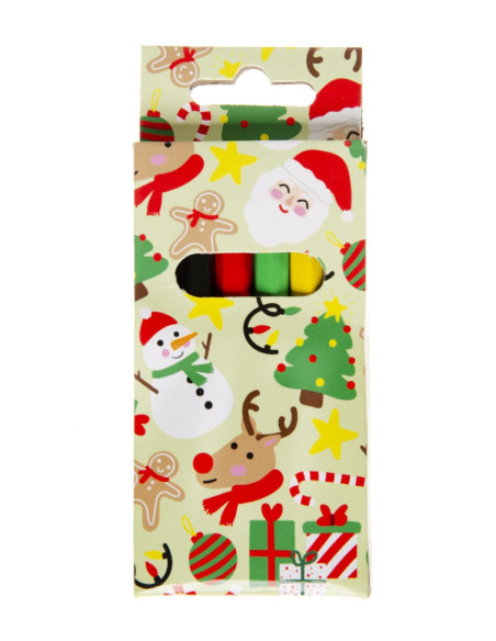 Doosje met 6 kleine kleurpotloden in Kerstthema. Het doosje is 9 x 4,5 x 1 cm.