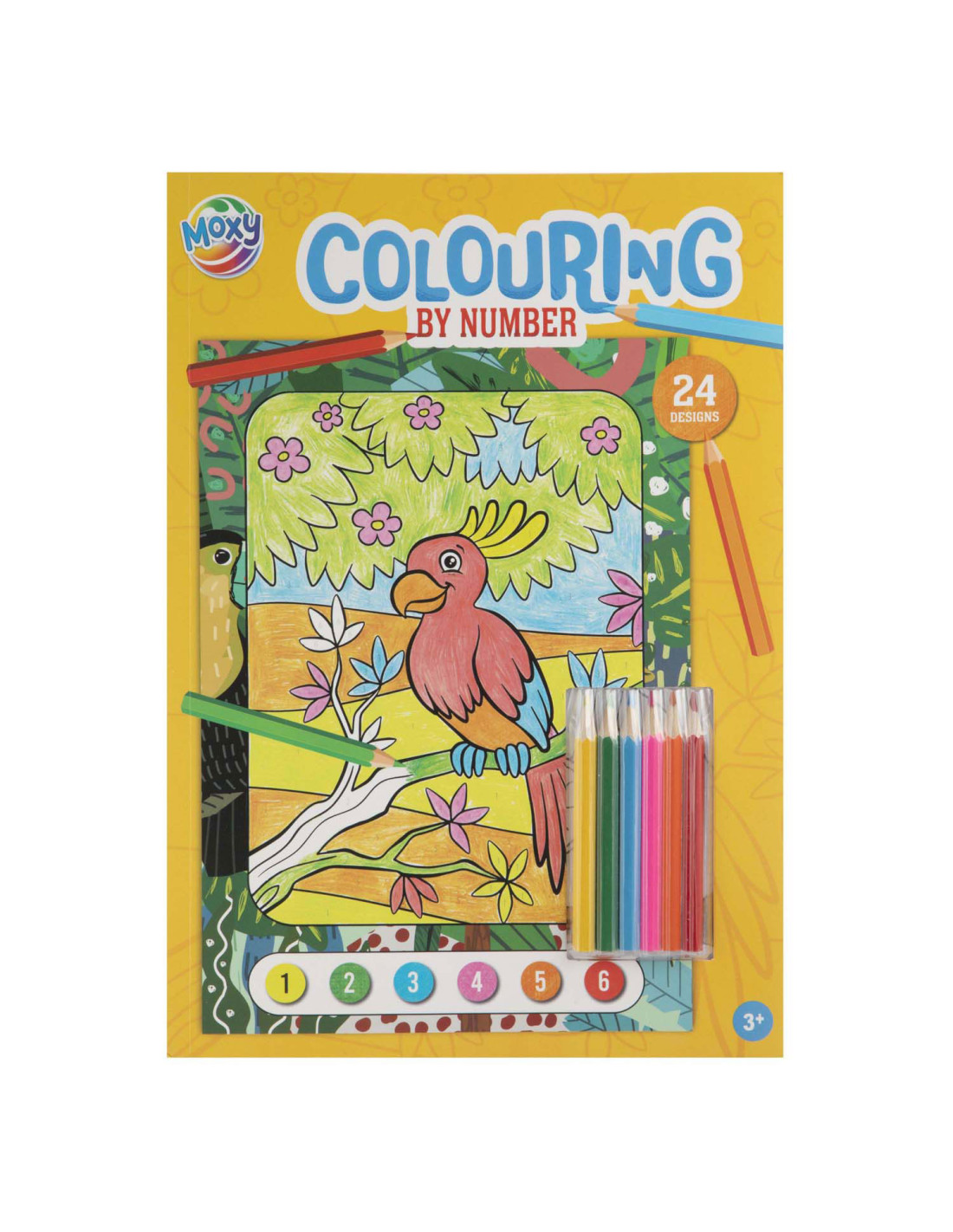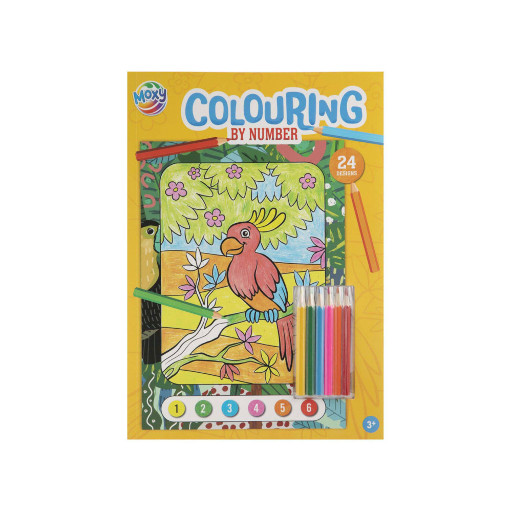 Kleuren op nummer met 6 kleurpotloden en 24 kleurplaten. Geschikt voor kinderen vanaf 3 jaar.