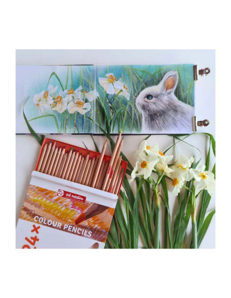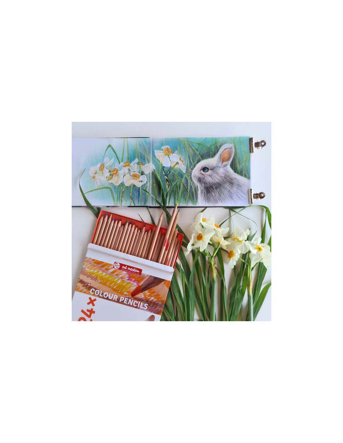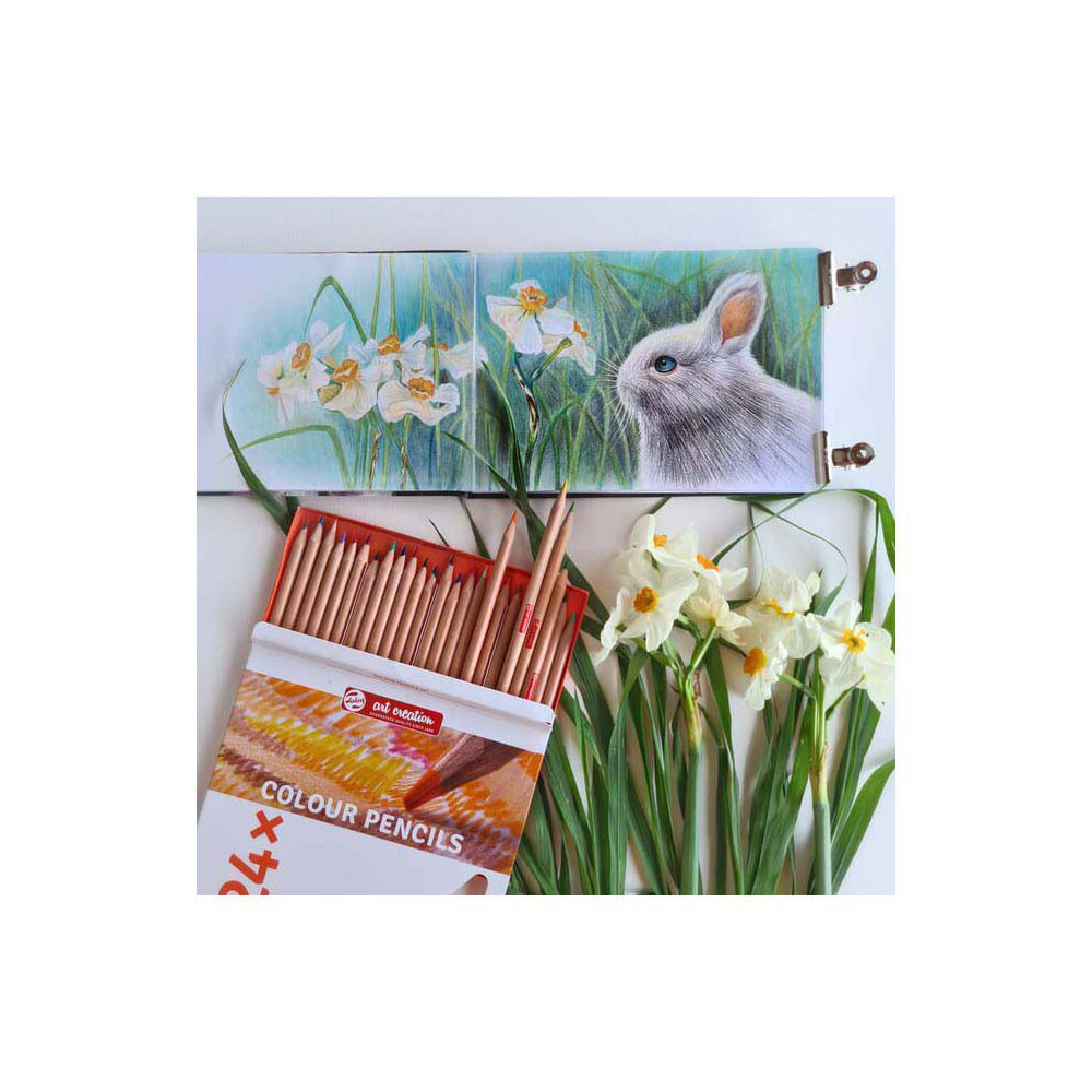 Deze set met 24 kleurpotloden biedt je een goed basispalet aan kleuren om verschillende tekeneningen mee te maken. Talens Art Creation biedt ook een set van 12 kleurpotloden en twee sets van grafietpotloden in verschillende hardheden.