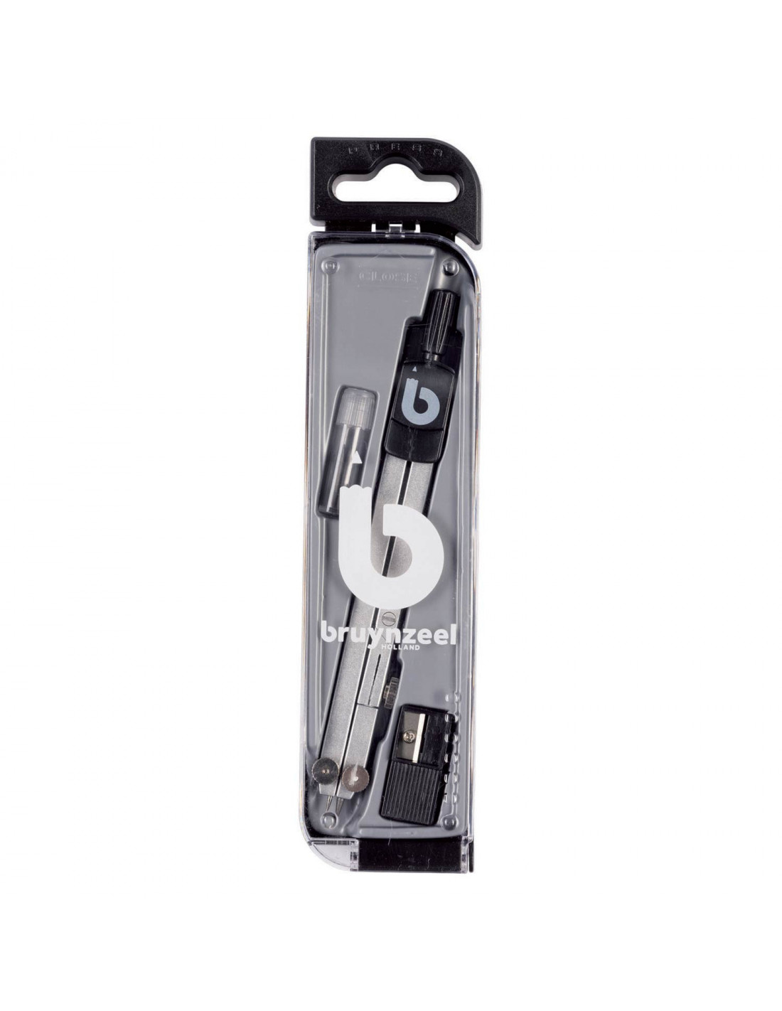 Wees goed voorbereid voor elke les waarin je cirkels moet tekenen met deze 5-delige Bruynzeel Passerset. De passer heeft een robuust metalen design en wordt geleverd in een handige kunststoffen bewaardoos. De verpakking bevat een passer, een puntenslijper, een navulling en handige opzetstukjes waardoor je cirkels kunt tekenen met je eigen pen of stift.