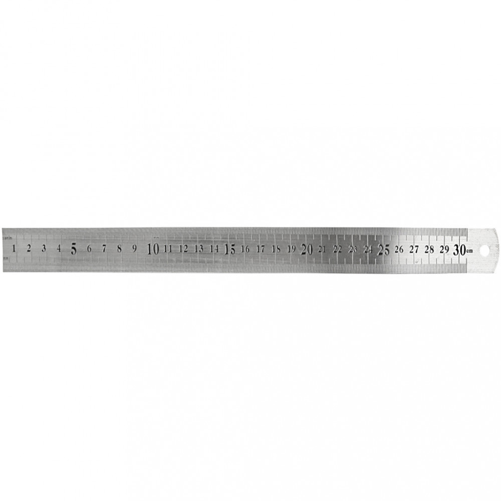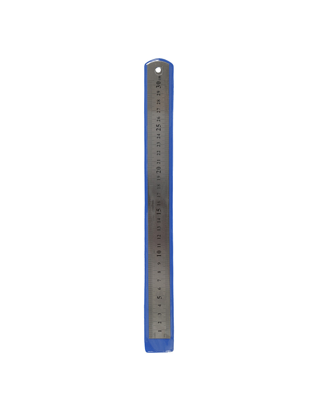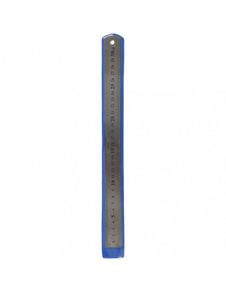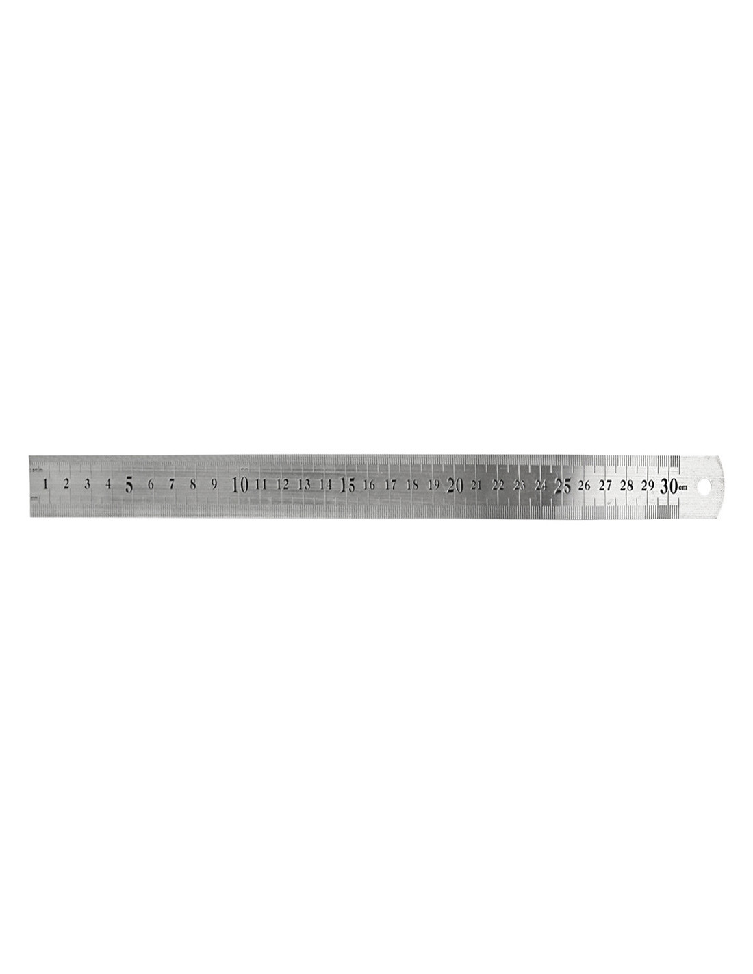 Metalen liniaal met centimeter verdeling aan beide kanten. Afmeting: 30 centimeter.