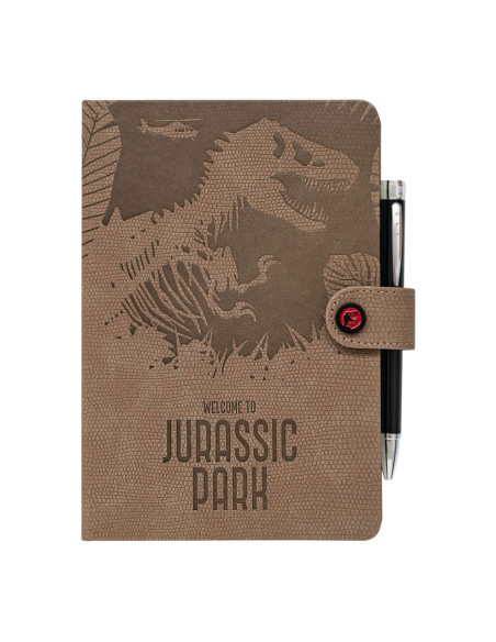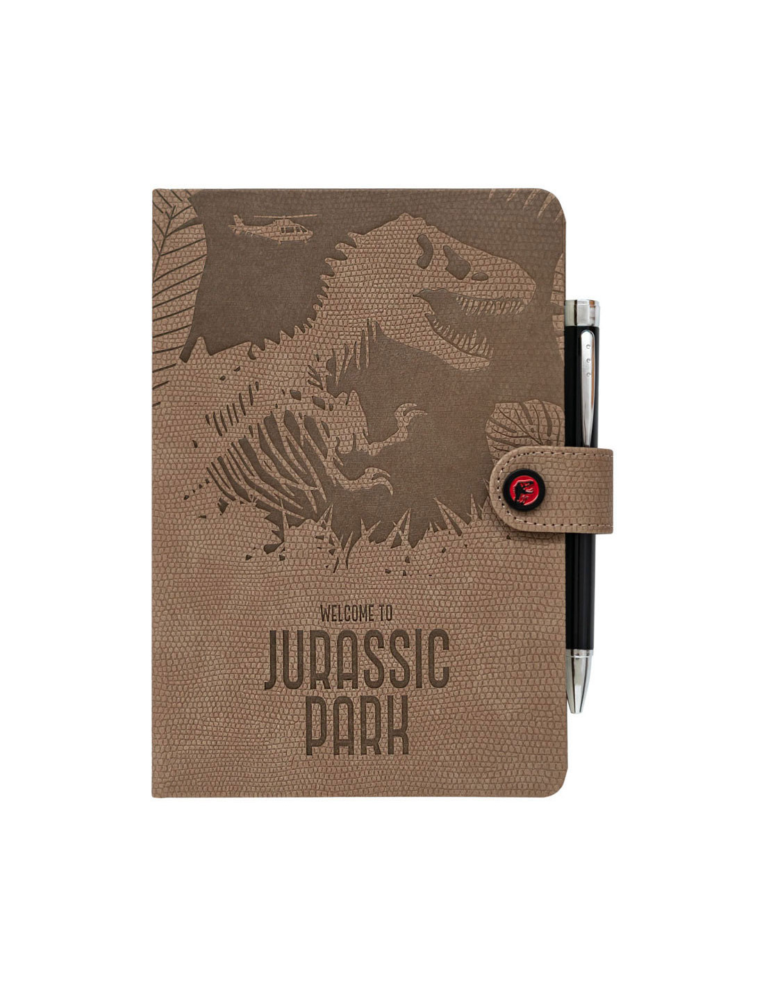 Notitieboek van A5-formaat met premium Jurassic Park cover en print. De bladzijden zijn ongelinieerd. Het notitieboek heeft een magneetsluiting en wordt geleverd met een bijpassende Jurassic Park-pen met projectorfunctie. Geschikt voor kinderen van 3 jaar en ouder.
