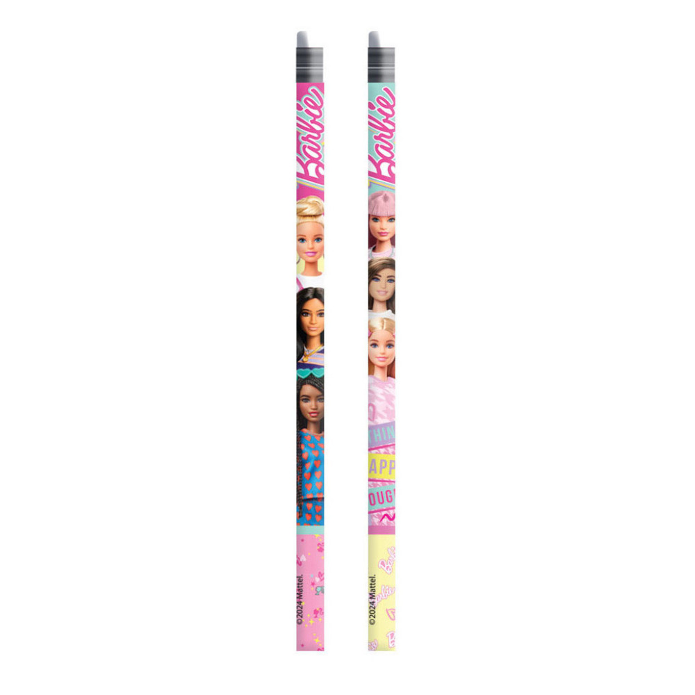 Grijsschrijvend potlood met vrolijke Barbie-print en een gum aan het uiteinde. Geschikt vanaf 3 jaar.