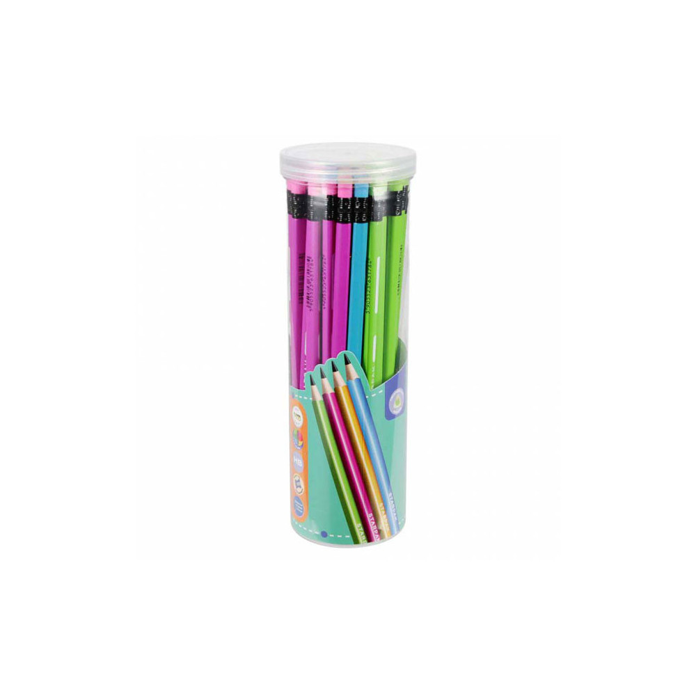 • Potloden in geel, groen, blauw en roze