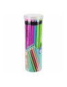 Set van 48 driehoekige potloden in verschillende kleuren, grijs schrijvend.
