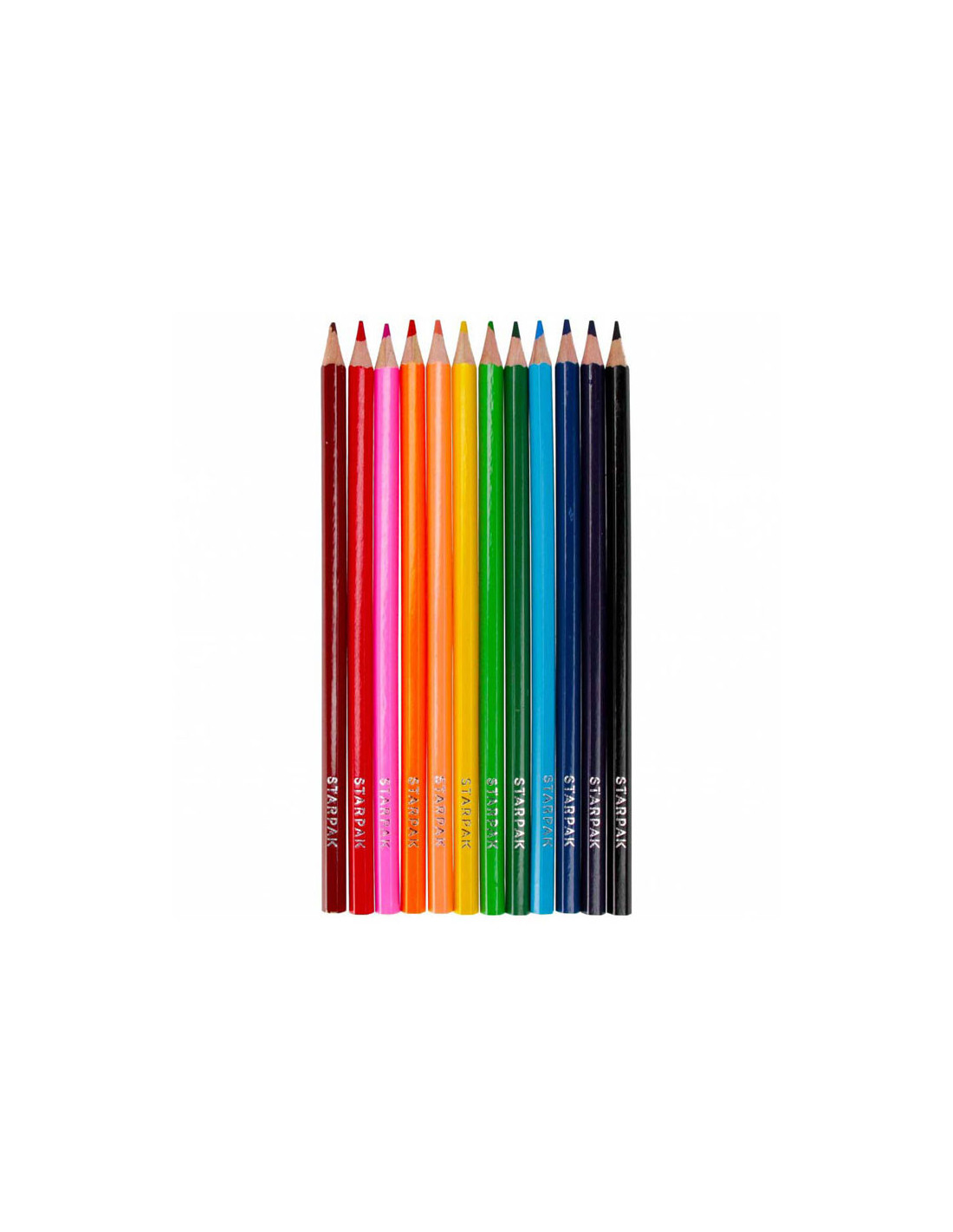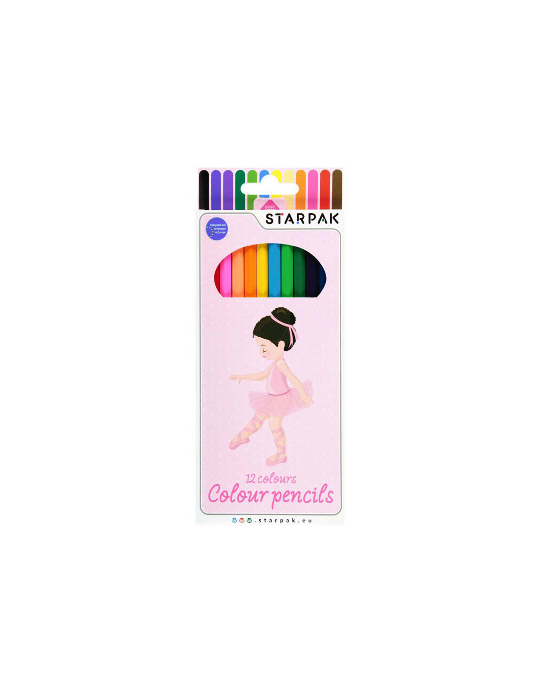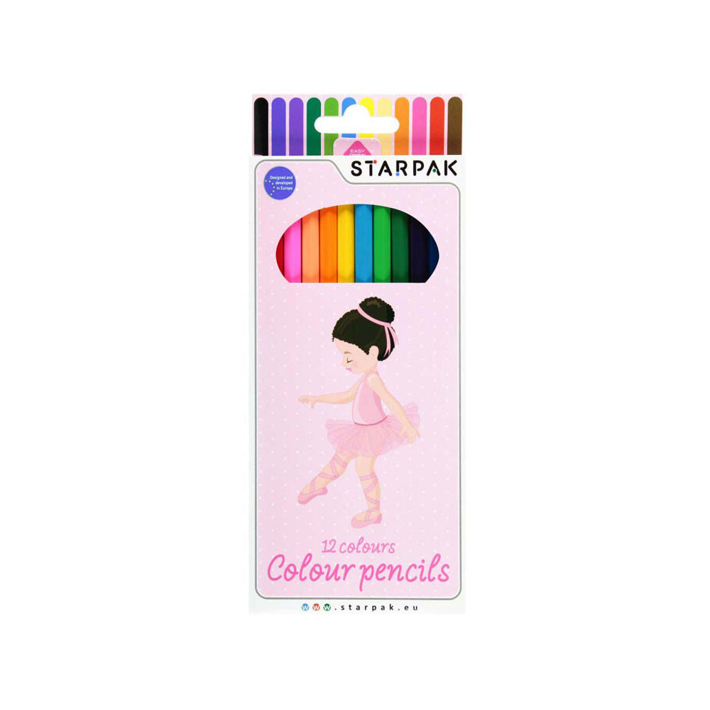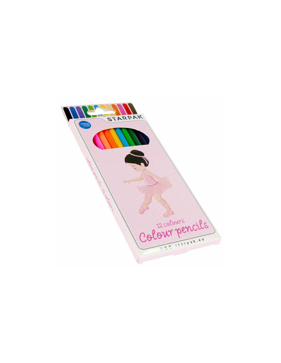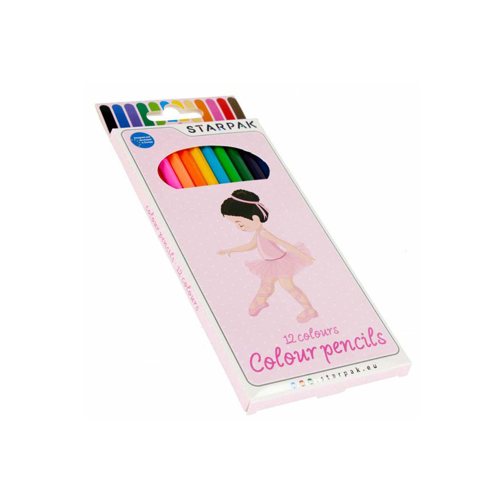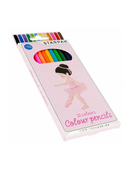 Een set van 12 STARPAK-kleurpotloden in een kartonnen doos versierd met afbeeldingen met Ballerina. Kleurpotloden zijn de meest elementaire kunstbenodigdheden. Gebruikt tijdens het spelen en leren thuis, op de kleuterschool en op school. De kleurpotloden hebben levendige kleuren, waardoor de gemaakte werken zullen opvallen door de intensiteit en verzadiging van kleuren. STARPAK-kleurpotloden zijn gemakkelijk te snijden en breken niet, wat erg belangrijk is, vooral voor jongere kinderen.