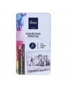 De houtskoolpotloden worden geleverd in een stevig en handig opbergblik, zodat je ze veilig kunt bewaren en gemakkelijk kunt meenemen naar je volgende kunstproject. Het opbergblik biedt ook een geweldige manier om je houtskoolpotloden georganiseerd te houden, zodat je altijd de juiste potlood bij de hand hebt.