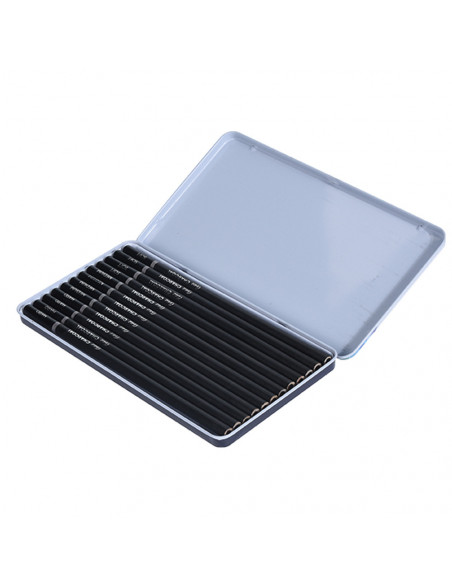 Ben je op zoek naar hoogwaardige houtskoolpotloden om je kunstwerken naar een hoger niveau te tillen? Dan is deze set van 12 houtskoolpotloden inclusief opbergblik de perfecte keuze voor jou!