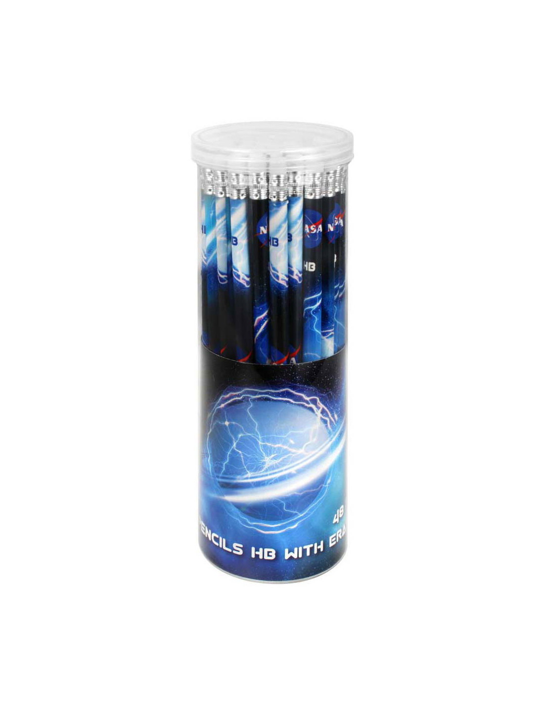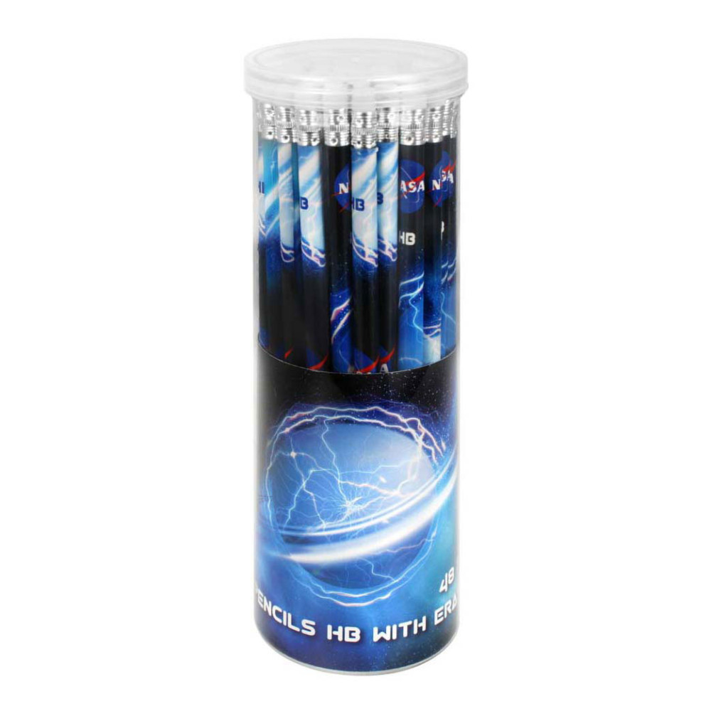 48 HB potloden met NASA opdruk, in doorzichtige koker. Elk potlood heeft een gum. Geschikt voor kinderen vanaf 3 jaar.