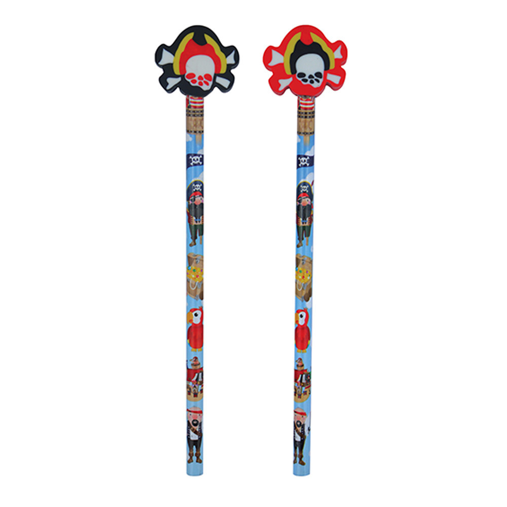 Ben jij fan van piraten? Dan is dit potlood echt iets voor jou! Aan de bovenkant van het potlood zit een gummetje waardoor je foutjes makkelijk uit kunt gummen.