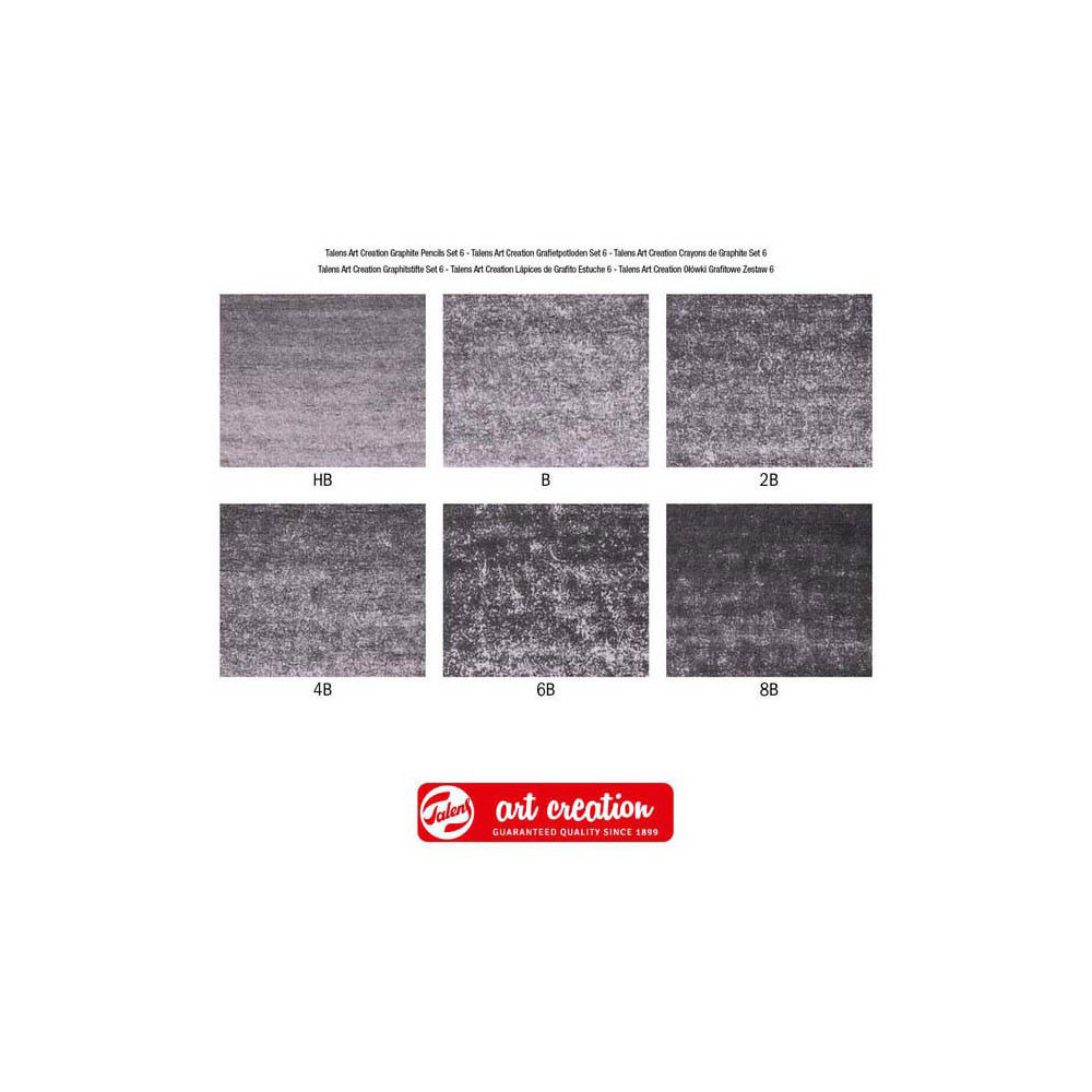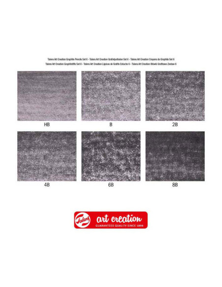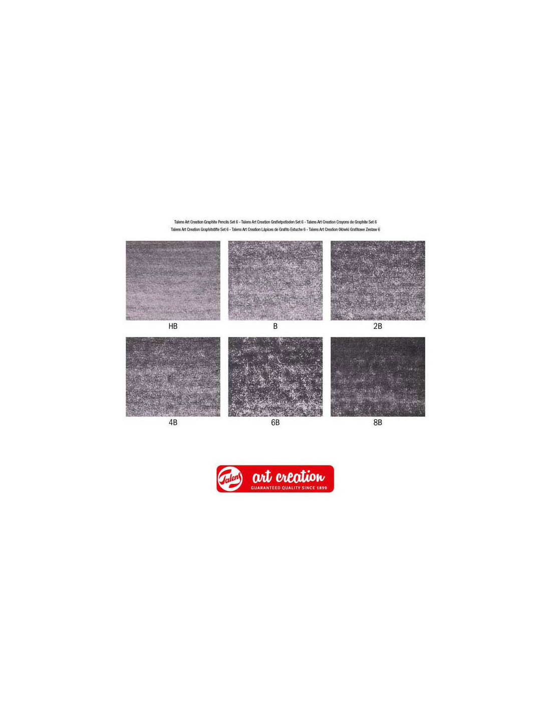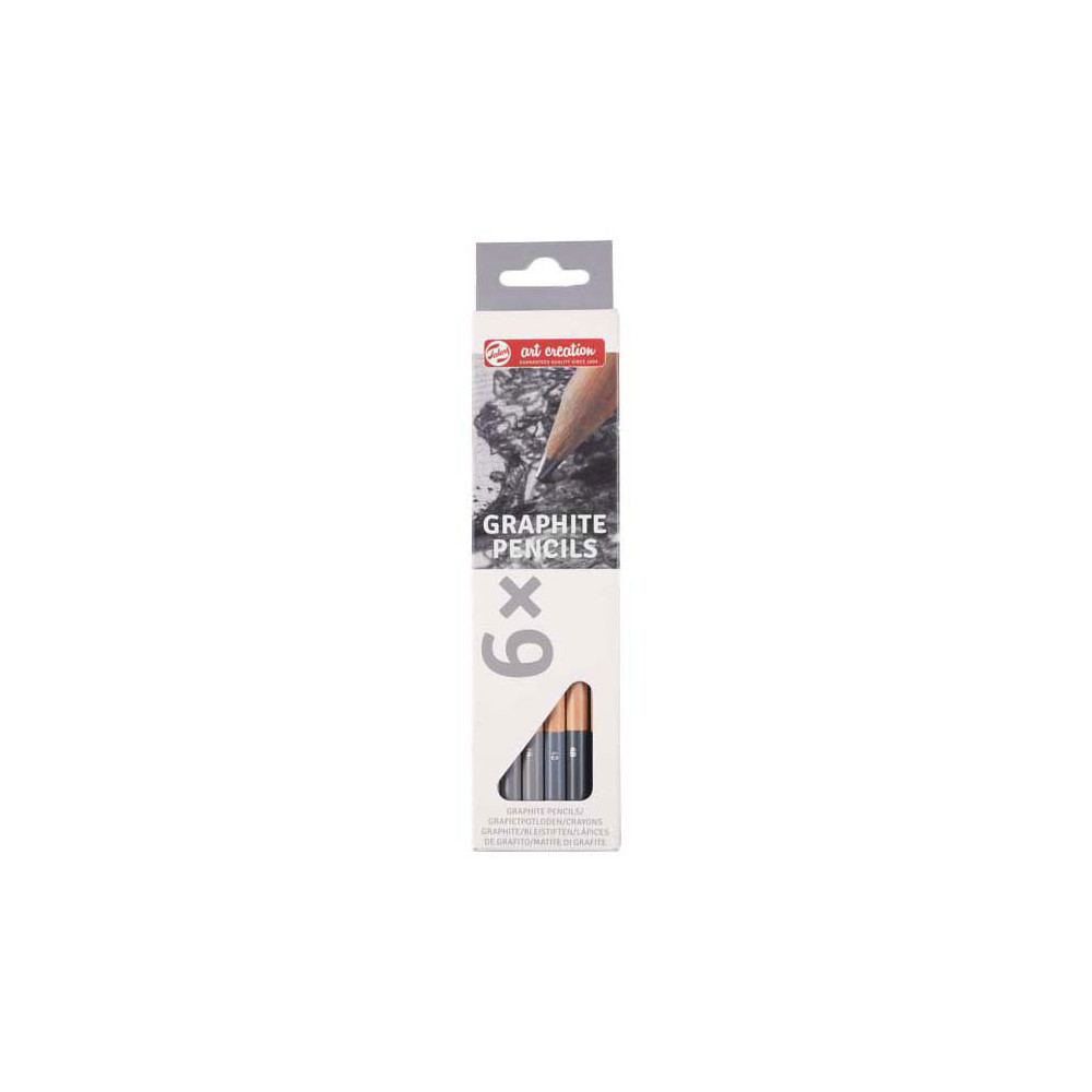 Deze set met 6 grafietpotloden is een goede basisset om aan je potlodencollectie toe te voegen. De verschillende hardheden helpen je makkelijk strakke en zachte lijnen te creëren in je tekeningen en schetsen. Talens Art Creation biedt ook grafietpotloden in een set van 12 en kleurpotloden in sets van 12 en 24.