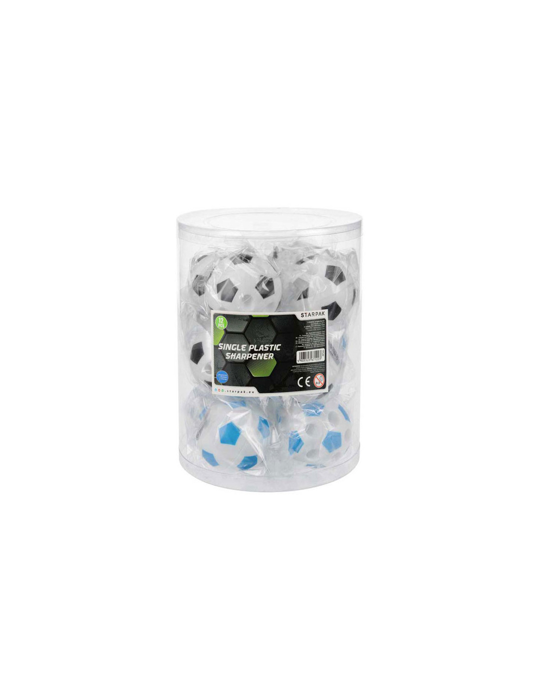 Plastic puntenslijper in de vorm van een voetbal. Niet geschikt voor kinderen jonger dan 3 jaar.