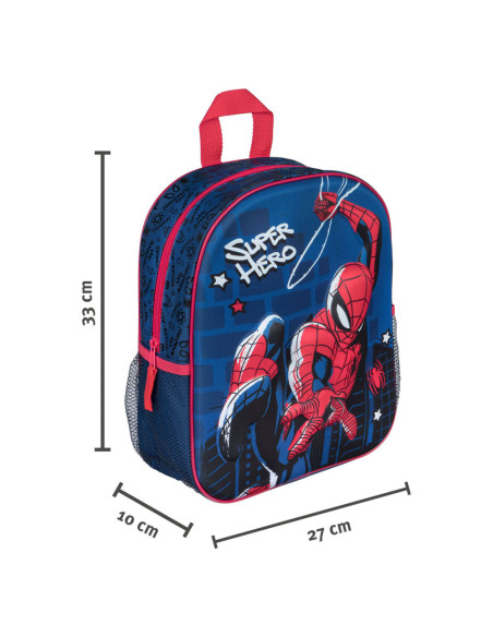 Deze Spiderman rugzak is perfect voor mee naar de opvang, naar school of mee op uitstapjes. Deze duurzame rugzak heeft een groot hoofdvak met ritssluiting om je spullen veilig in op te bergen. Aan de zijkant zitten mesh zijvakken, waar je nog meer in kunt opbergen. De gewatteerde schouderbandjes zijn verstelbaar en kunnen zo aangepast worden dat de rugzak altijd comfortabel draagt. Met een draaglus aan de bovenkant is de tas ook makkelijk in de hand te dragen en op te hangen op school. In blauwe uitvoering, met 3D-look afbeelding van jouw vriend Spider-Man op de voorkant.