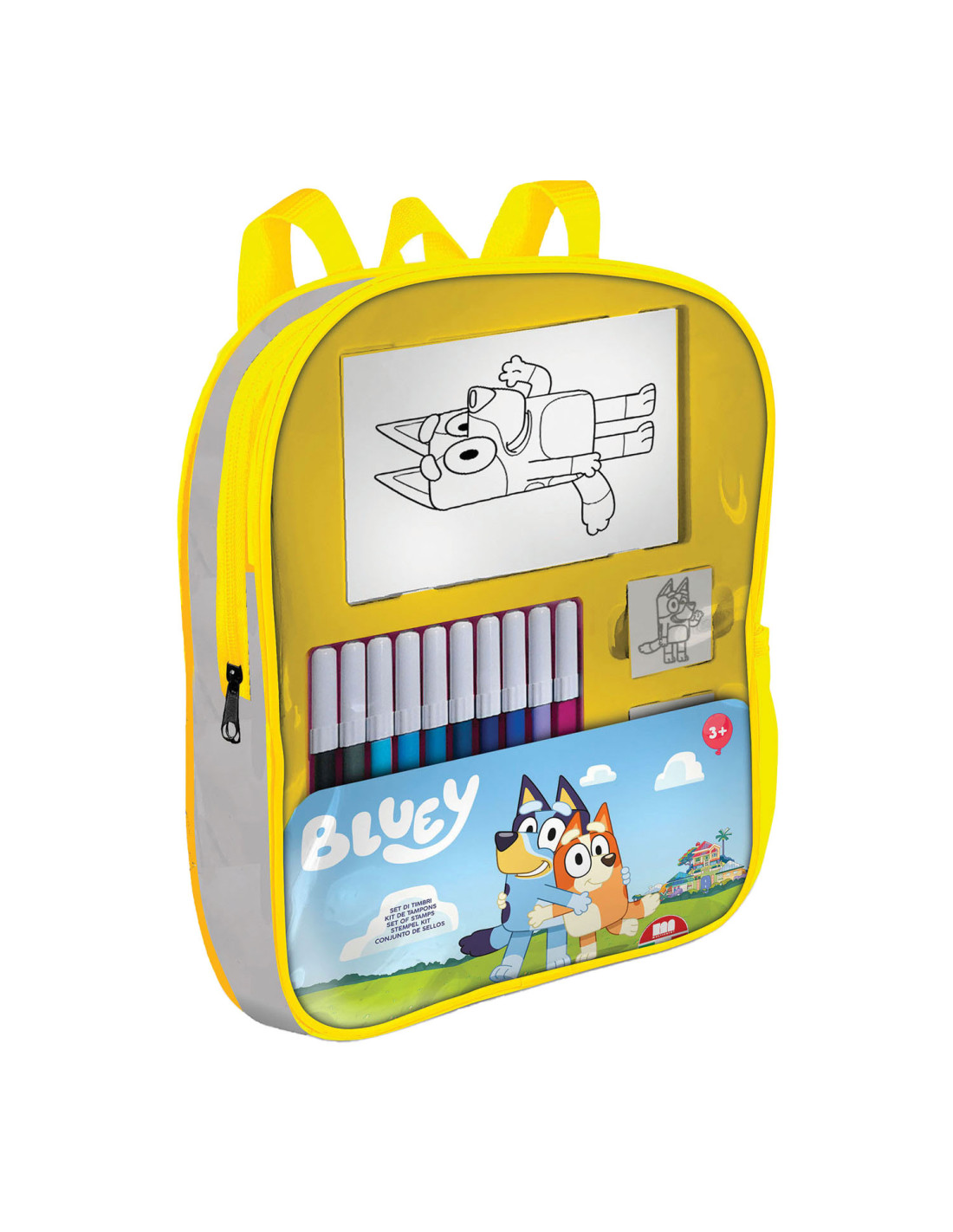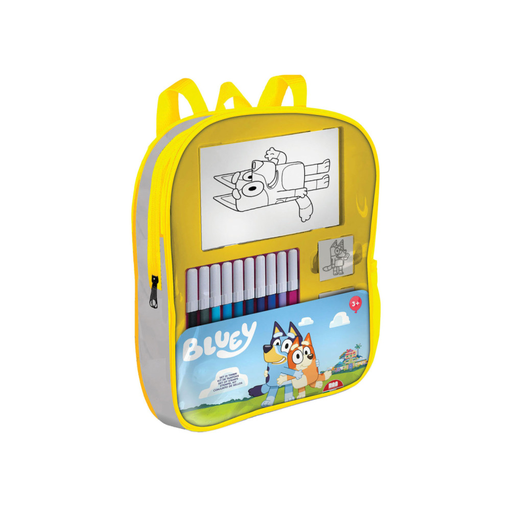 Maak je klaar voor een reis vol kleur en plezier met Bluey’s Stempelkit Rugzak! Deze set is gemaakt van de beste materialen en bevat 10 gekleurde stiften, 4 stempels, 1 activiteitenboek, 1 inktpad en 30 stickers.