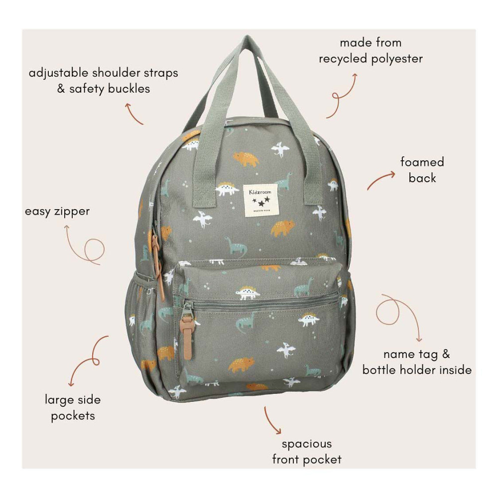 Als dit geen leuke rugzak is? Die wil je kindje vast overal mee naartoe nemen. Deze rugtas uit de Small Talk collectie is bedrukt met leuke all-over printjes. De rugzak heeft een handig voorvak met een rits met ruimte voor de kleinere spulletjes die mee moeten. Het grote hoofdvak heeft een handige dubbele rits en biedt ruimte voor bijvoorbeeld een broodtrommel of extra setje kleding. Handig als je kindje de rugtas mee naar school neemt. De rugzak is te dragen aan de lus aan de bovenkant of op de rug met de verstelbare schouderbanden. Dit rugzakje is voorzien van lining voor een betere kwaliteit en een langere levensduur. De rugzakken uit de Small Talk collectie worden in Europa gemaakt. Dit zorgt voor hoogwaardige producten met de beste kwaliteit.