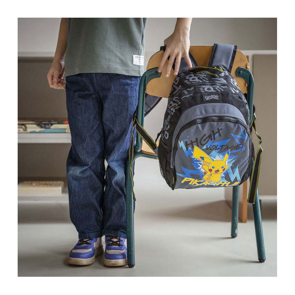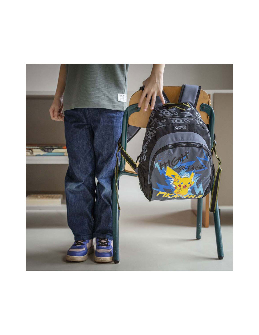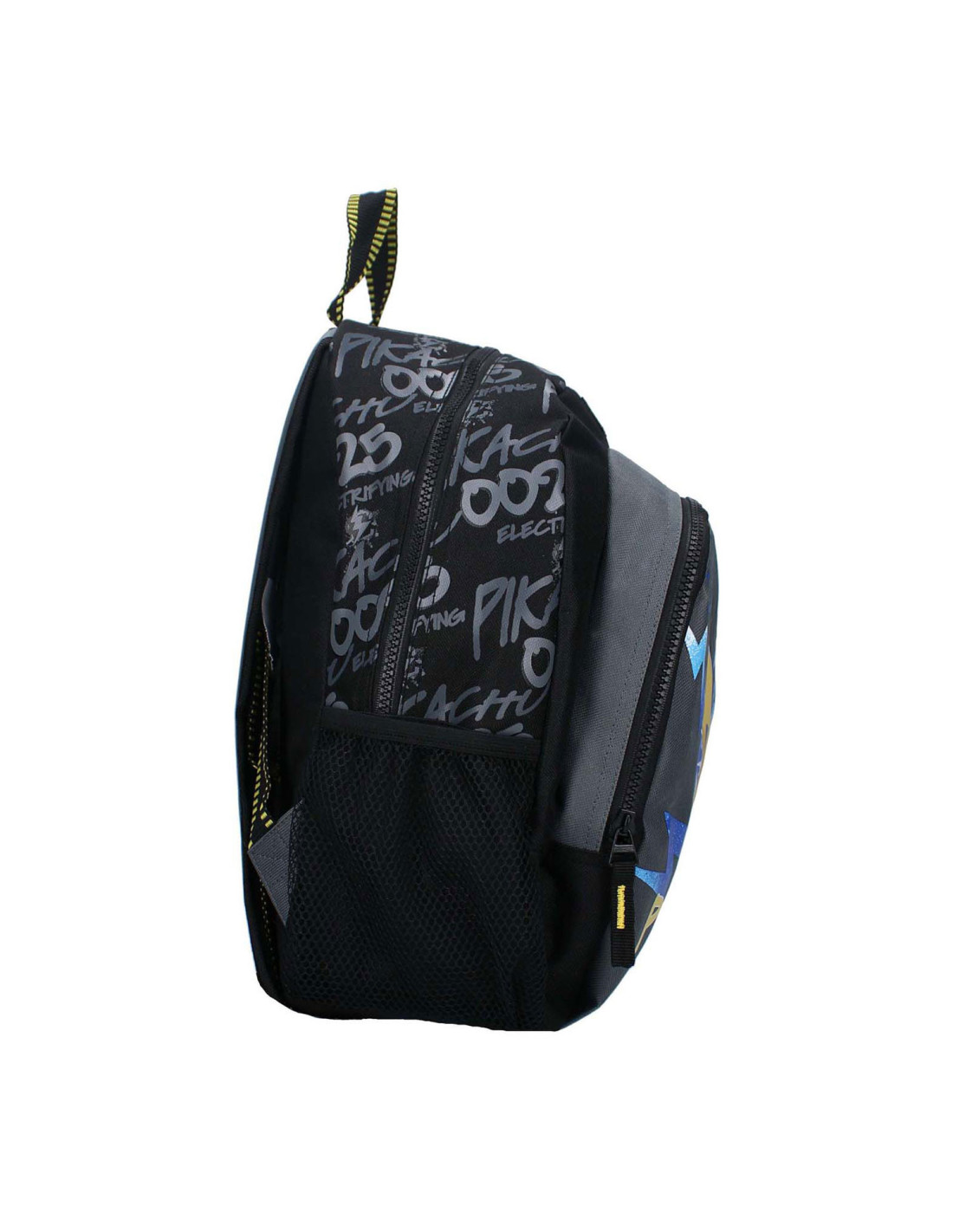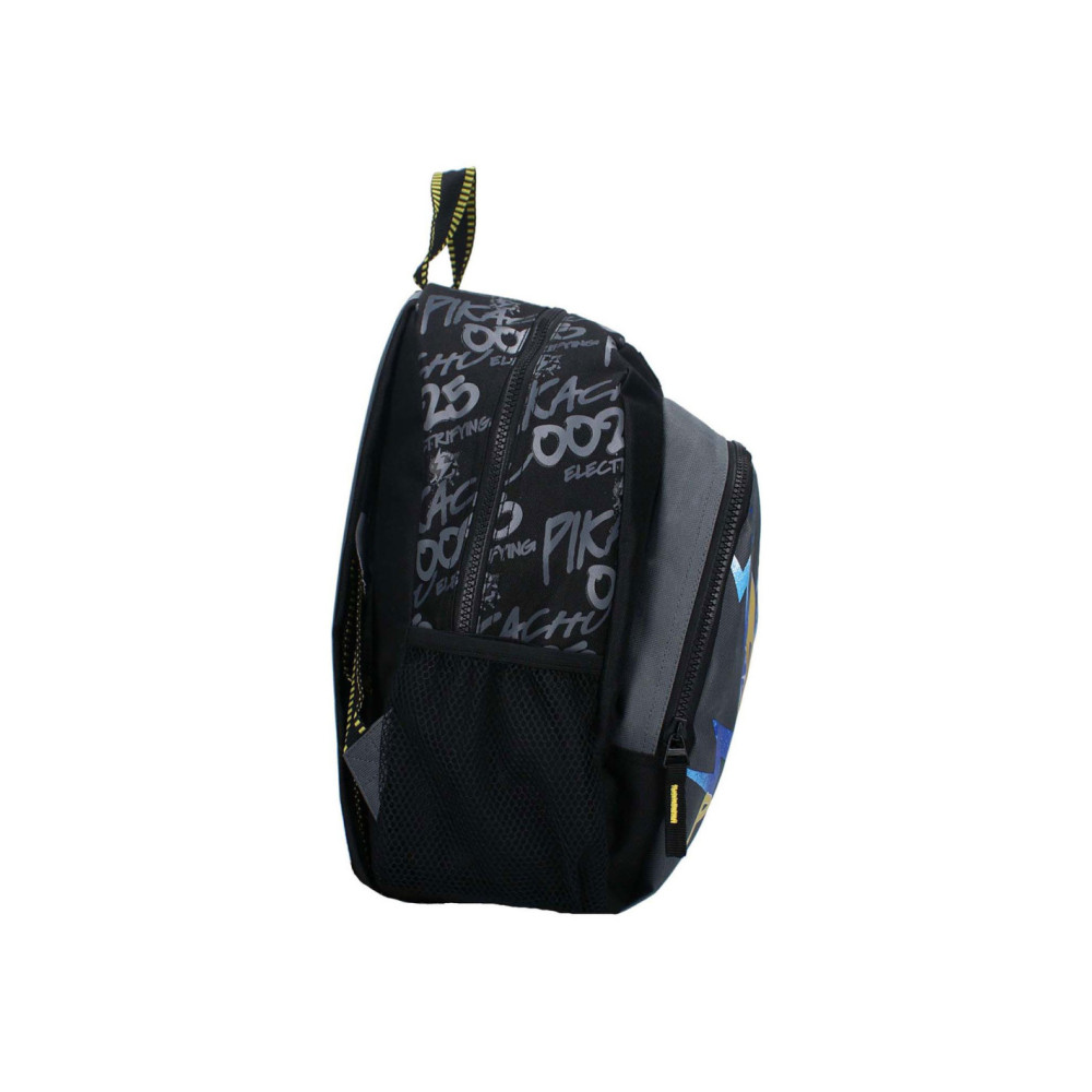Stap in de wereld van Pokémon met deze rugzak uit de Gotta Catch �??Em All collectie! Deze zwarte rugzak, geïnspireerd door de iconische Pokémon-serie, is voorzien van een all-over print in Pokémon stijl met een grote afbeelding van Pikachu. De rugzak is gemaakt van polyester en biedt zowel stijl als functionaliteit. Het hoofdcompartiment met ritssluiting biedt voldoende ruimte voor boeken, lunch items of Pokémon-merchandise. Het praktische voorvak met ritssluiting is ideaal voor kleine items zoals pennen, sleutels of een telefoon. De verstelbare schouderbanden en achterzijde zijn gewatteerd, wat zorgt voor een optimaal draagcomfort, zelfs bij langdurig dragen. Het opvallende artwork van Pikachu en de coole print, maken deze rugzak helemaal af.